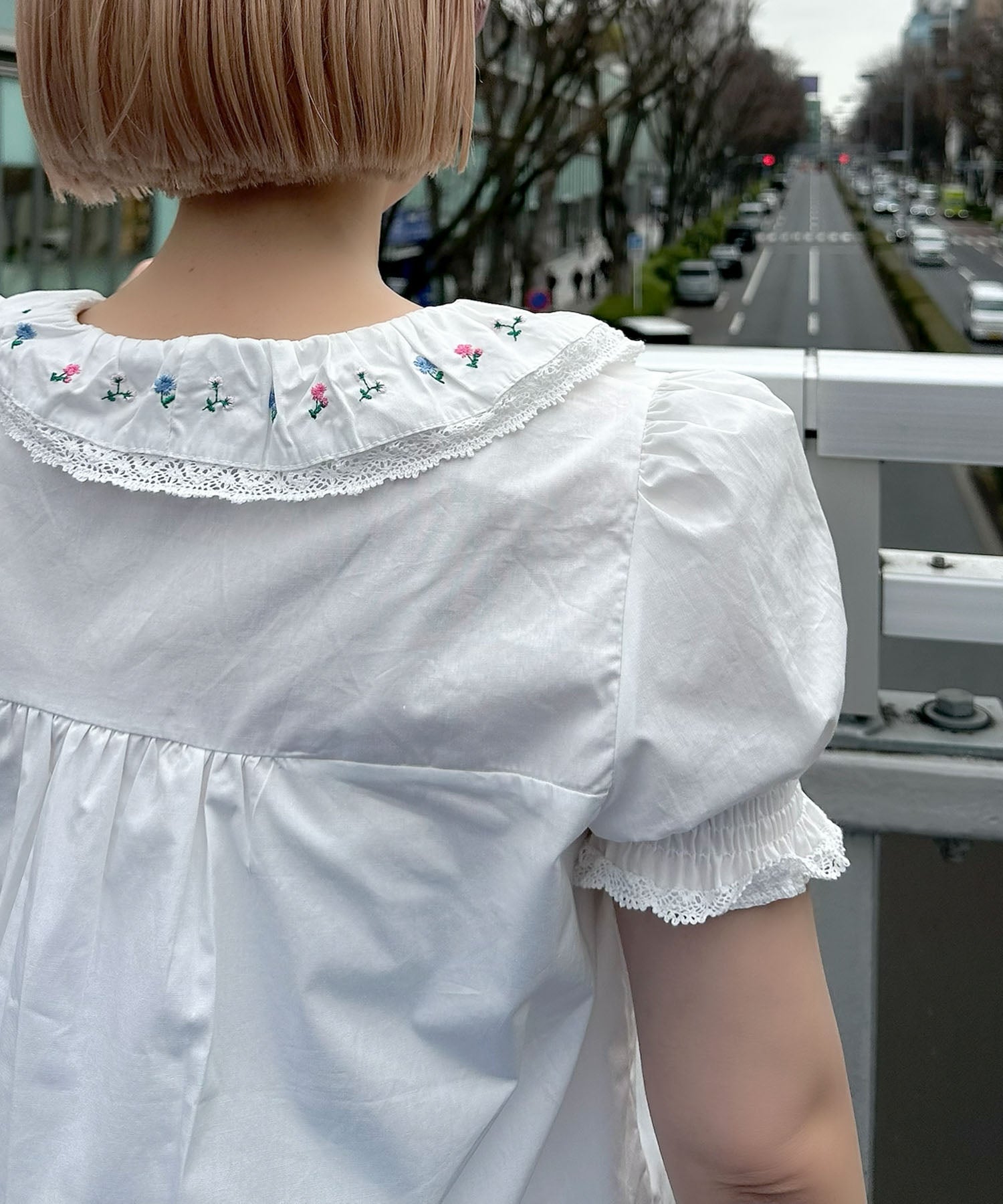 ・すっきりとしたシルエットで大人っぽく着られる刺繍ブラウスはこの春大活躍の予感♩