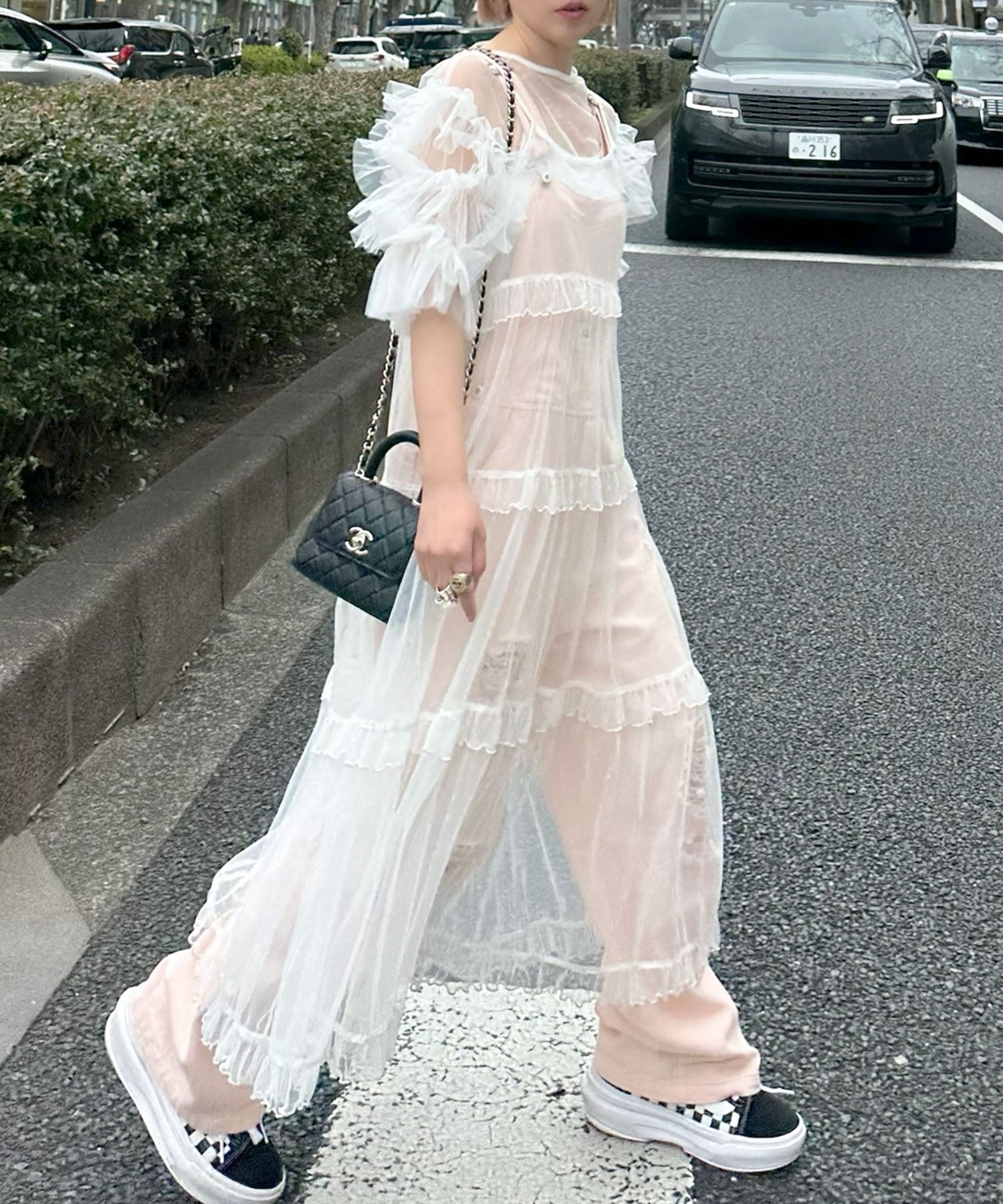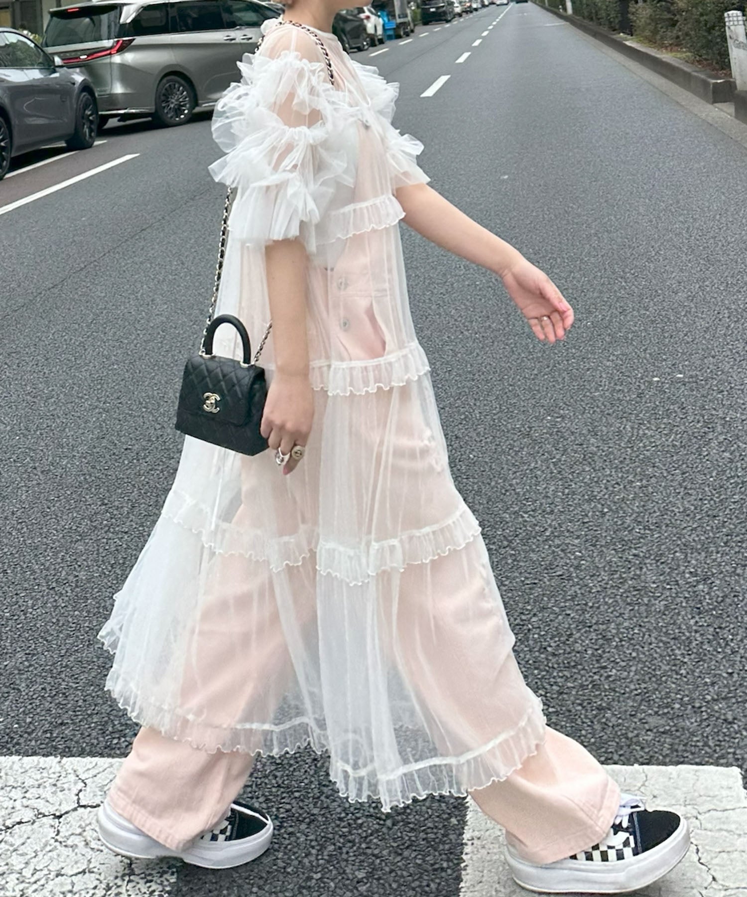 ・ワンピースの上からカポッとレイヤードすると足長効果がUP