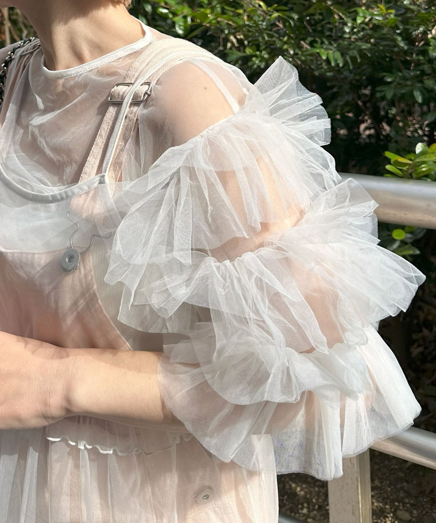 ・袖の大胆なフリルがかわいい、シアーブラウスが数量限定で登場♩