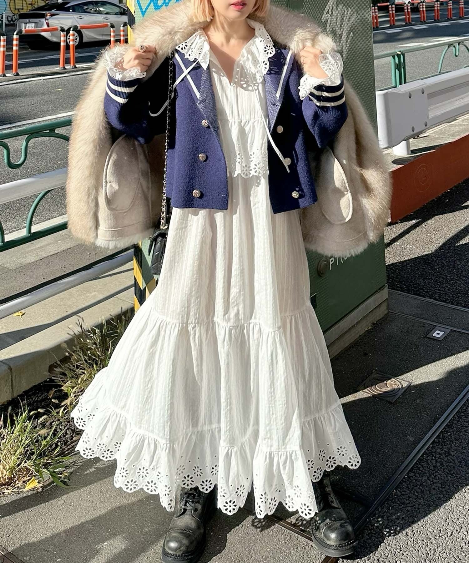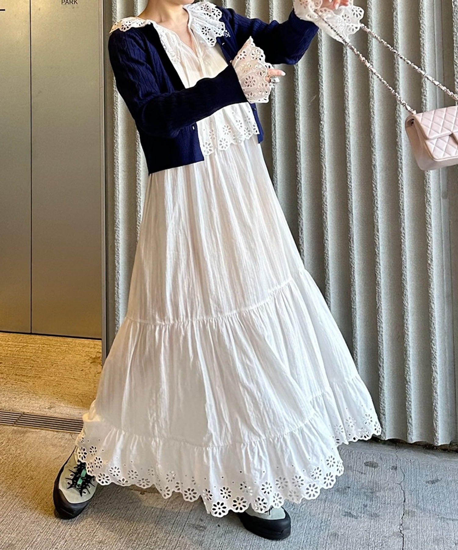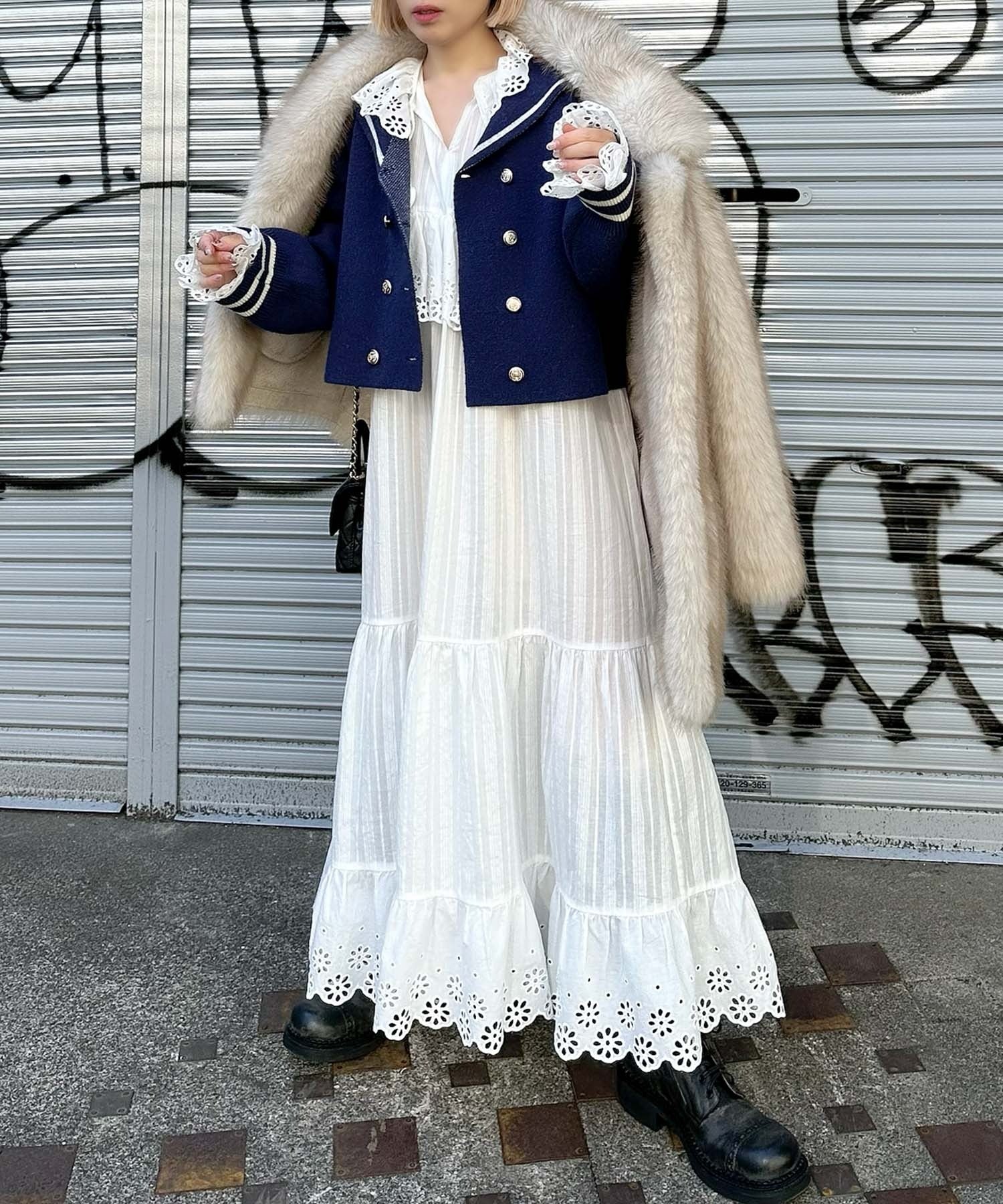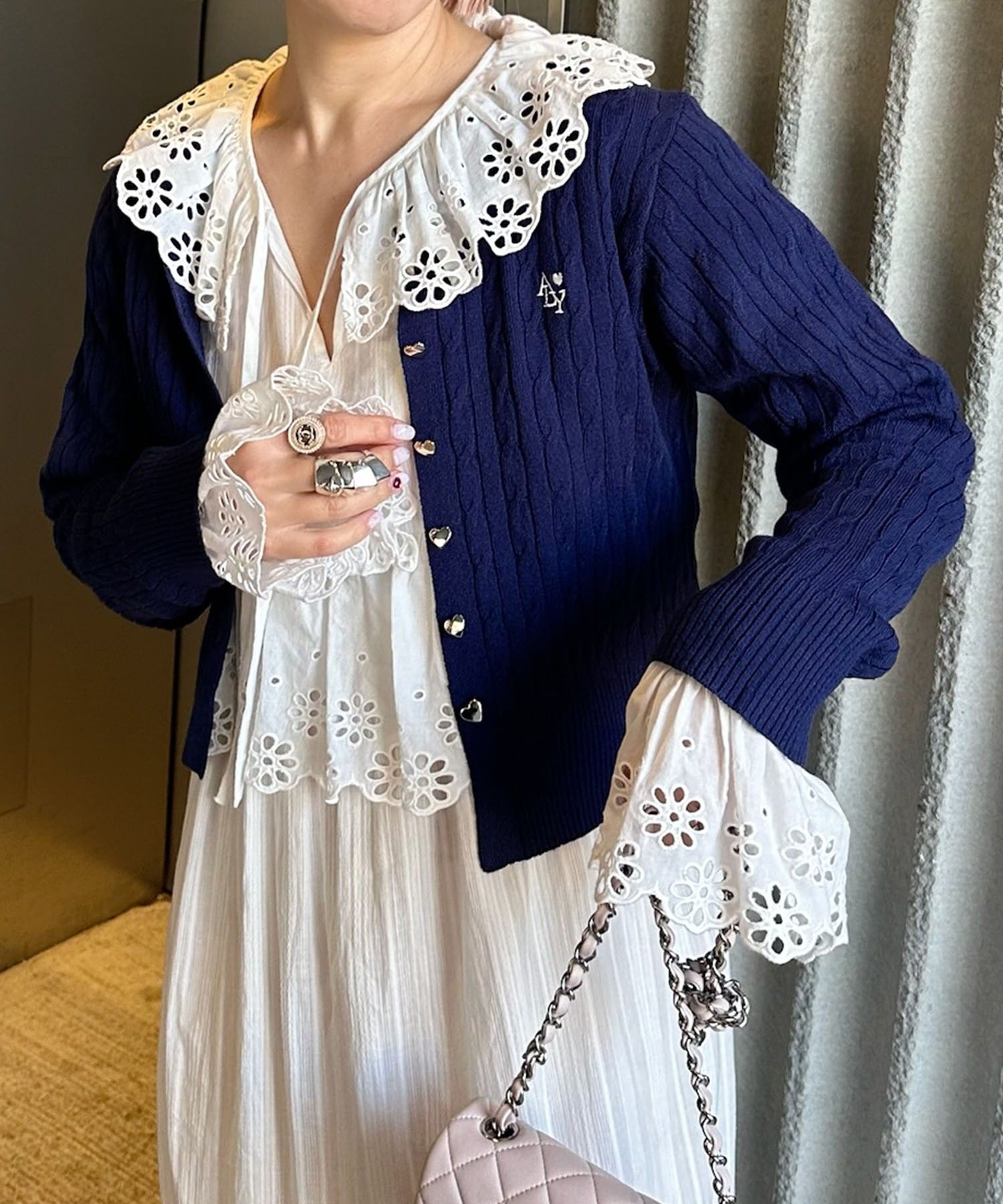 ・レイヤードした時に、衿元のレースを見せるとスタイリングのワンポイントとして◎