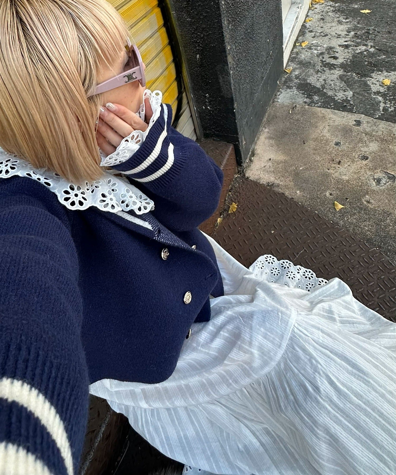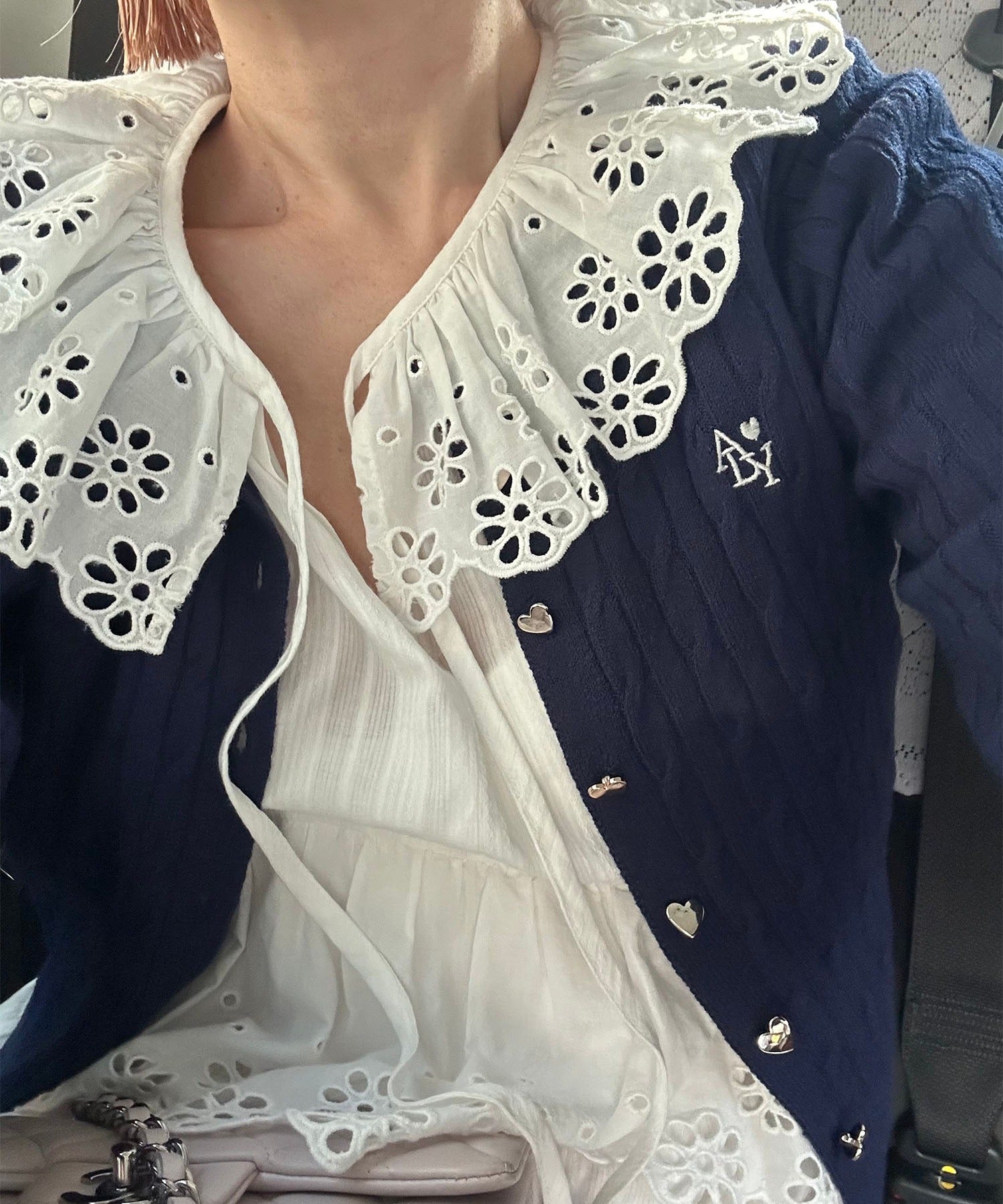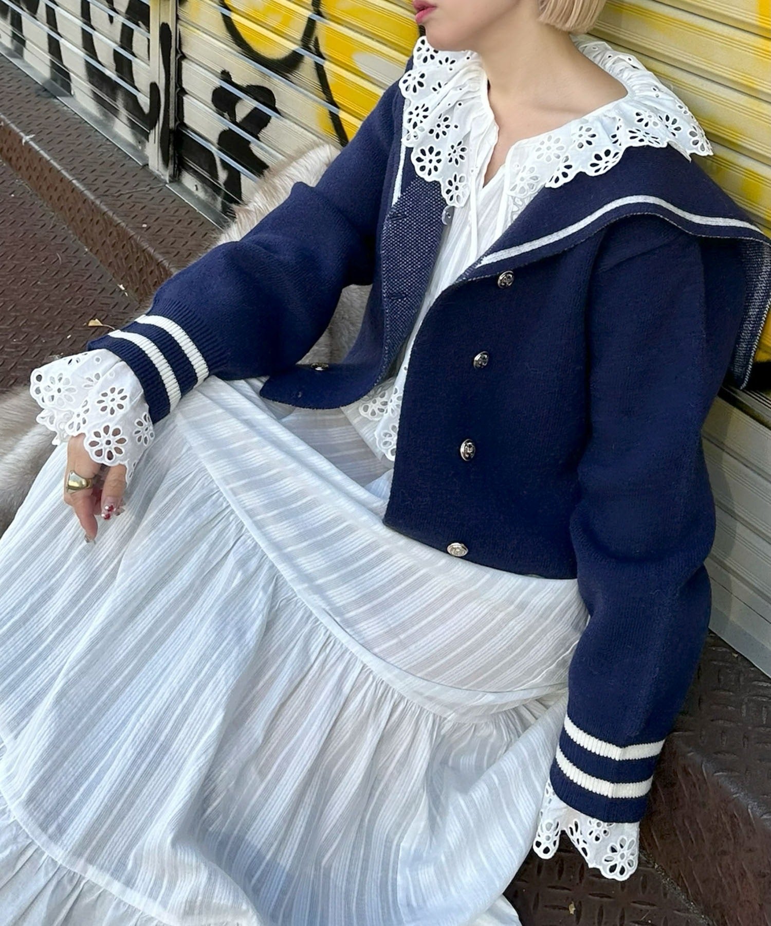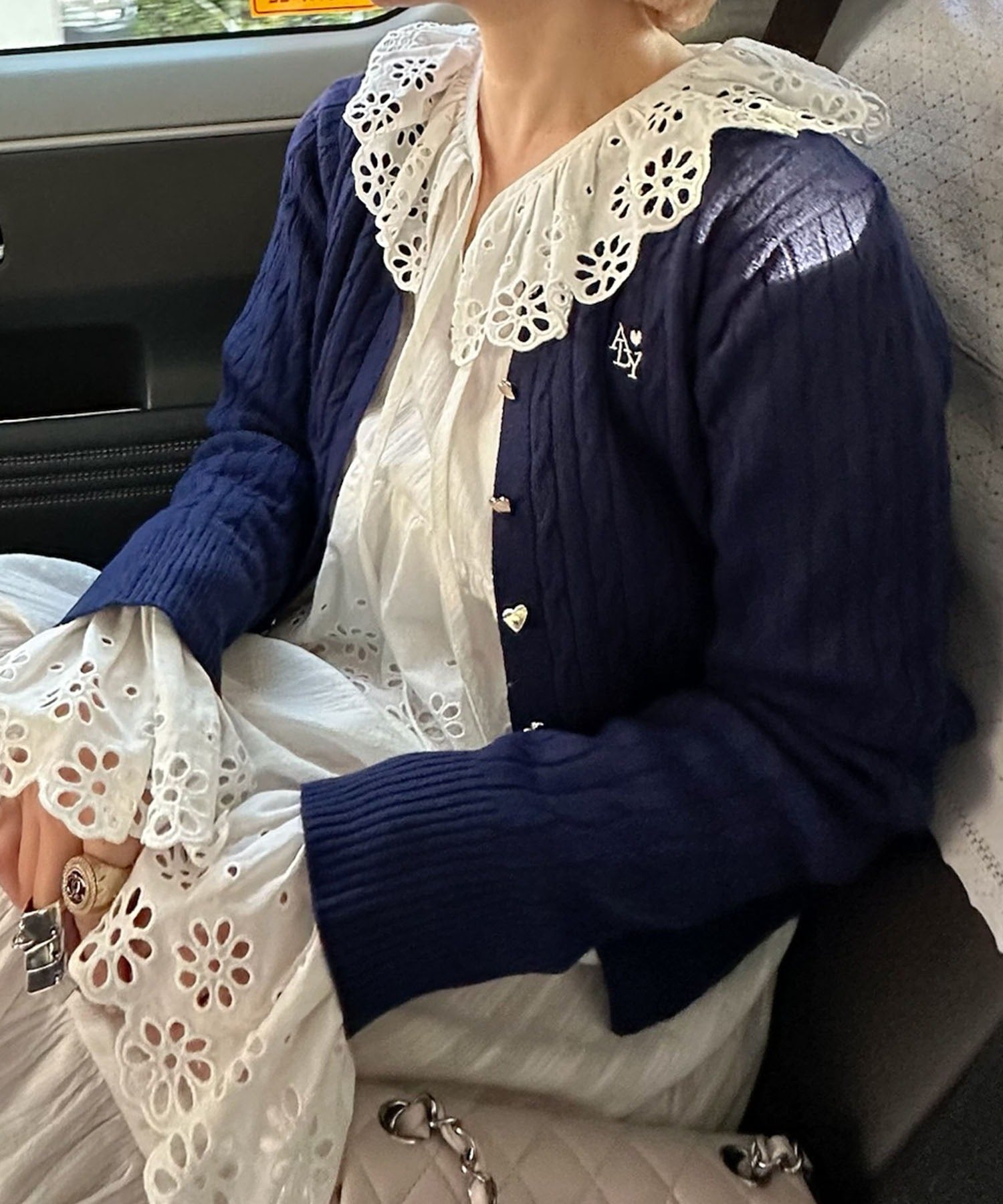 ・レイヤードした時に、衿元のレースを見せるとスタイリングのワンポイントとして◎