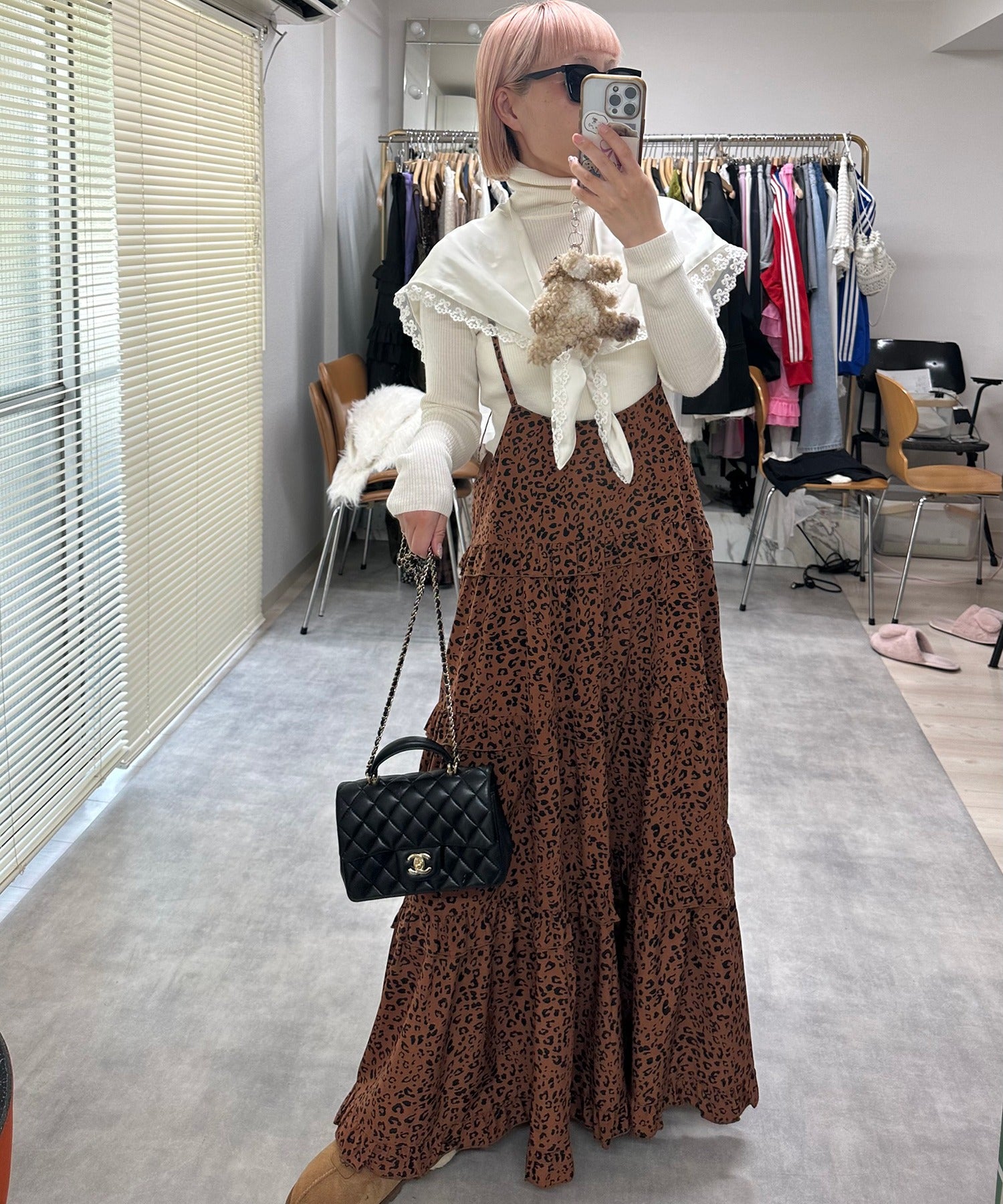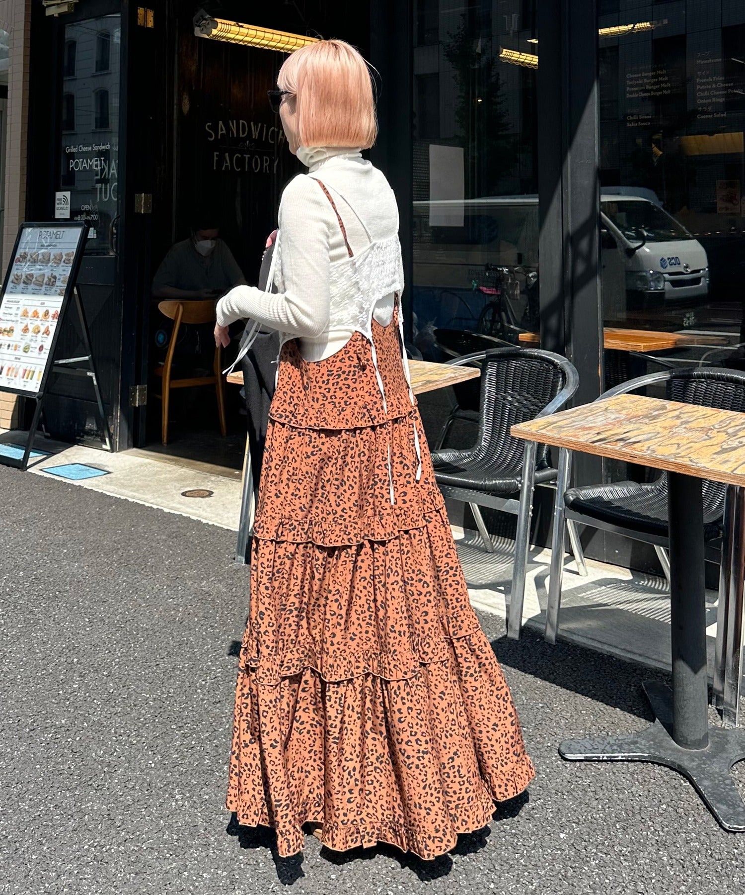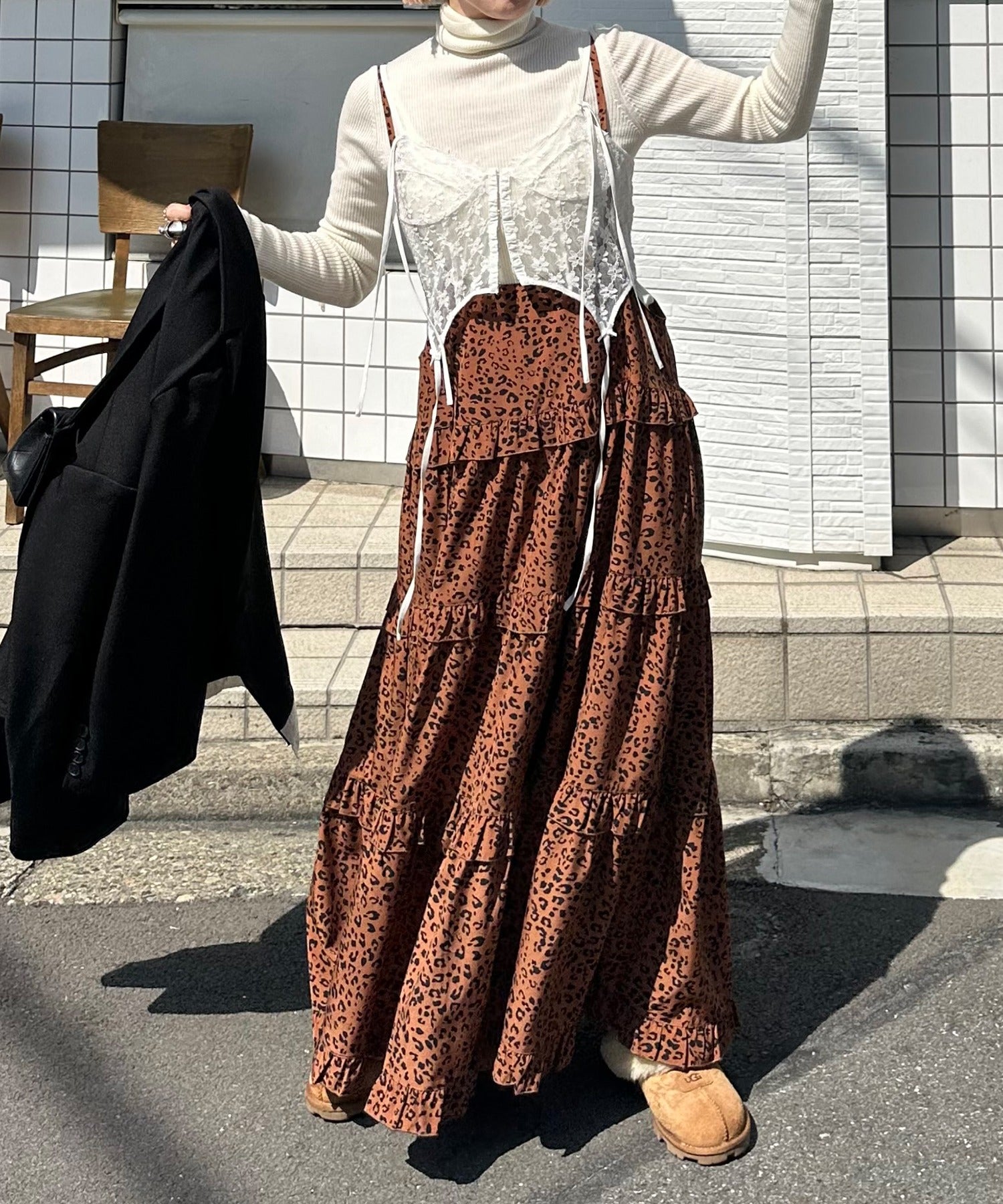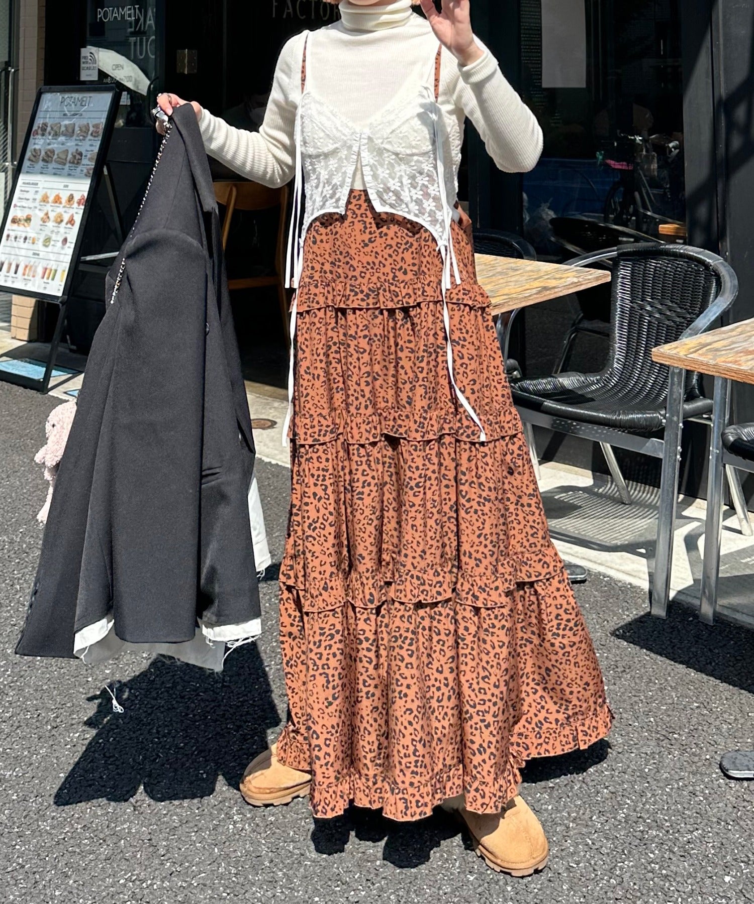 ・大きめのスウェットやニットをレイヤードして、スカートとしても◎