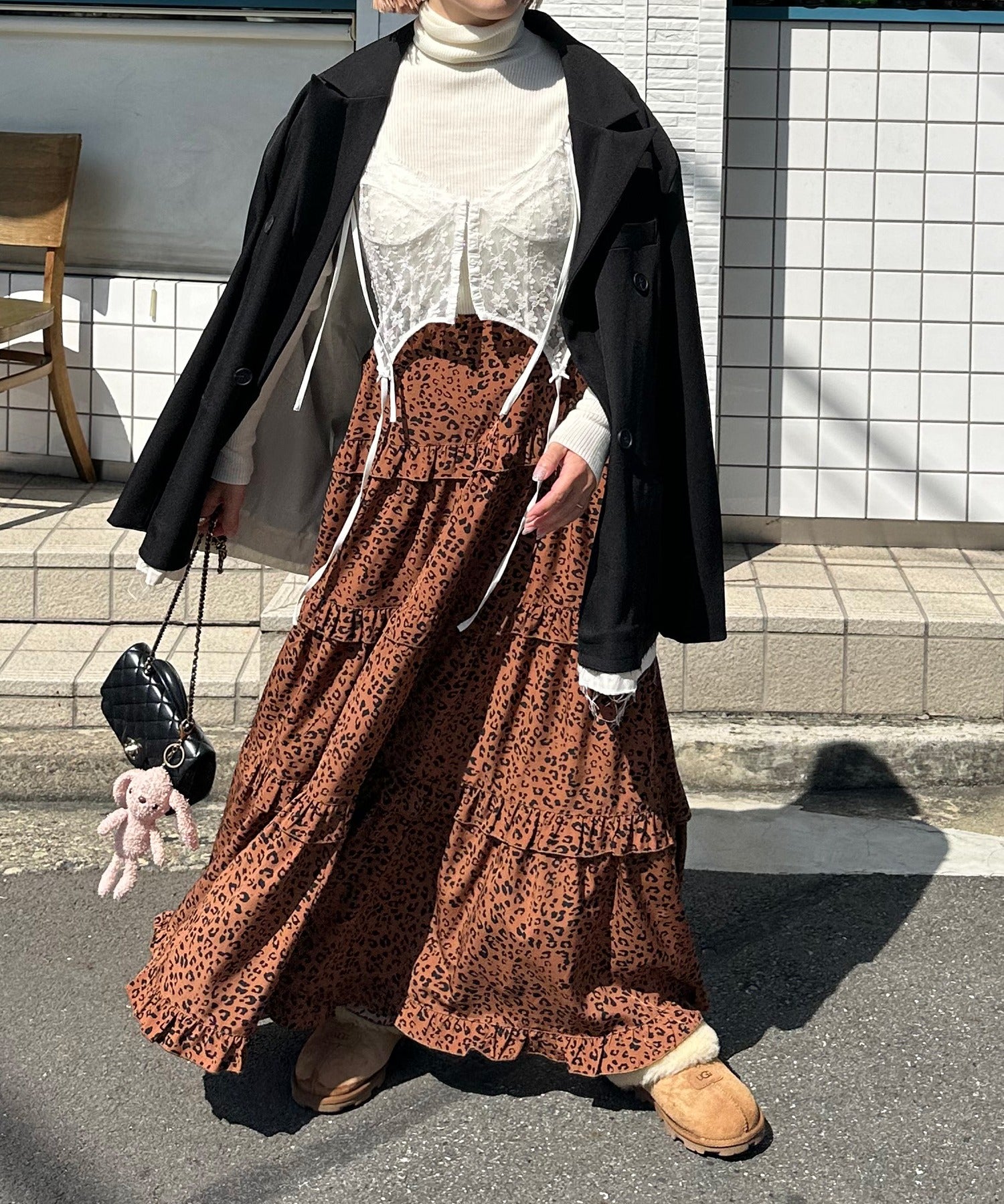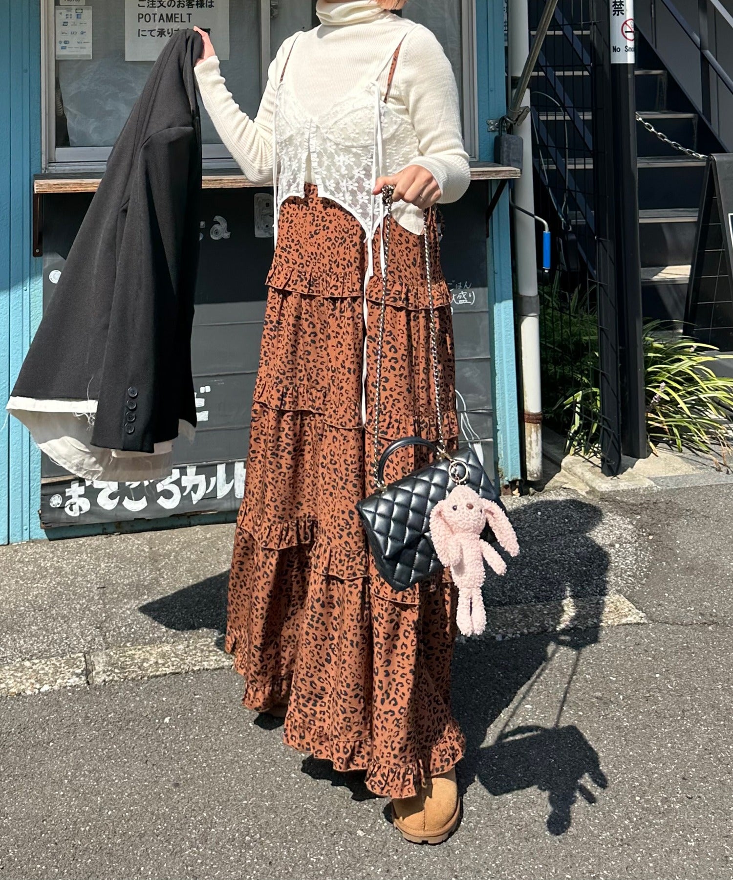 ・足元はスニーカ―やブーツで合わせてカジュアルダウンするのがおすすめ