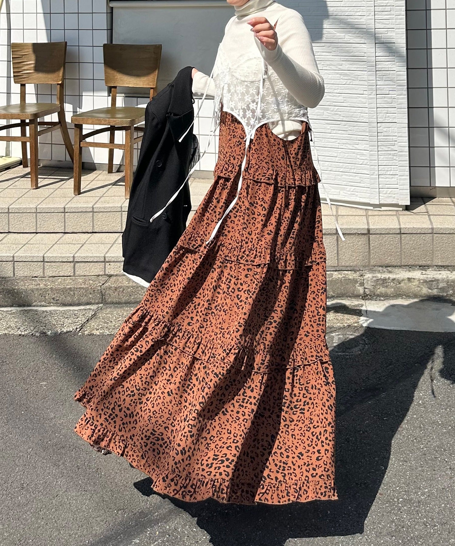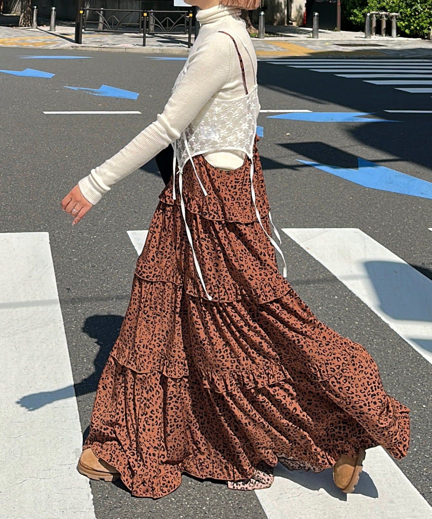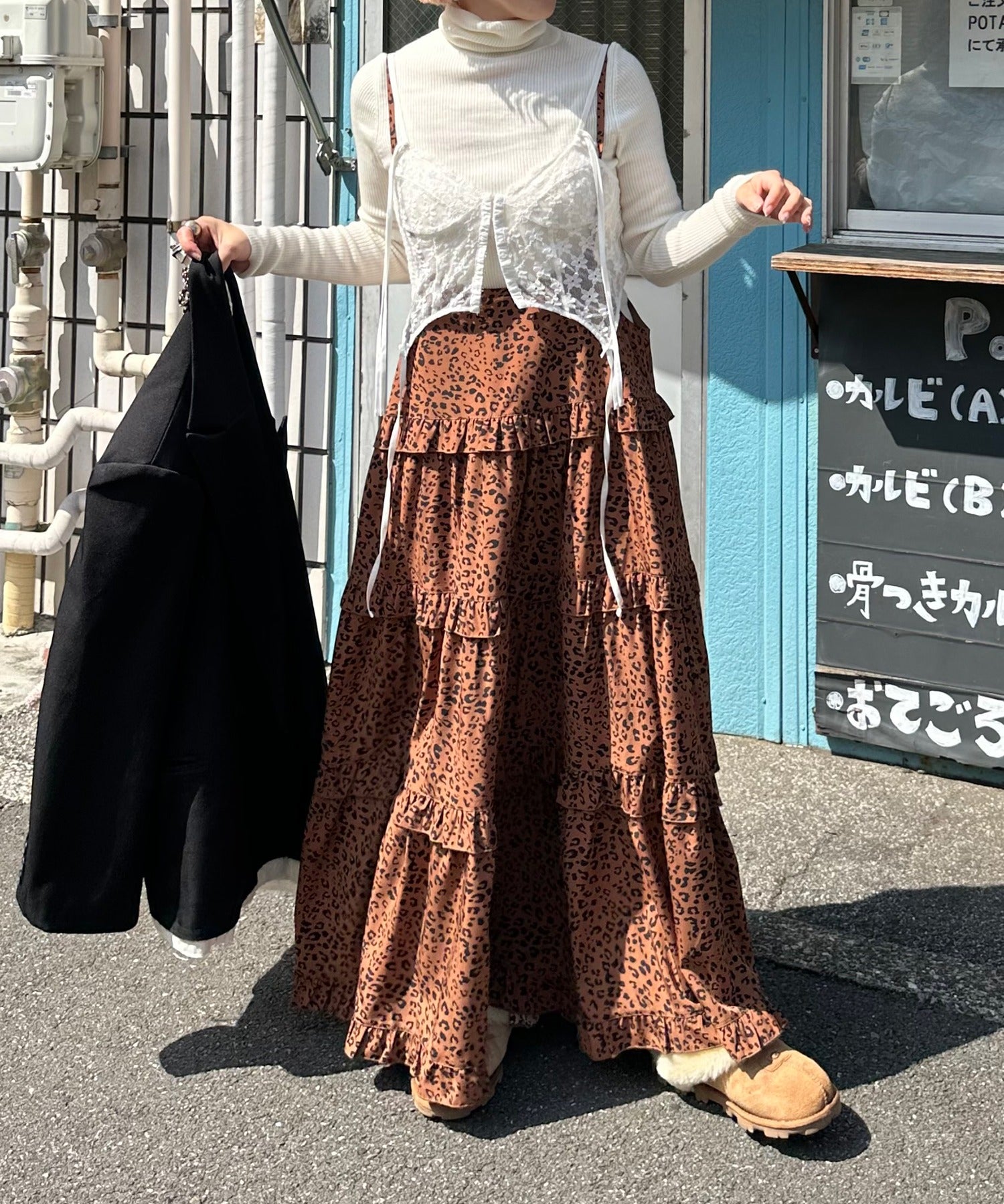 フリルティアードキャミワンピ【ブラウン系】