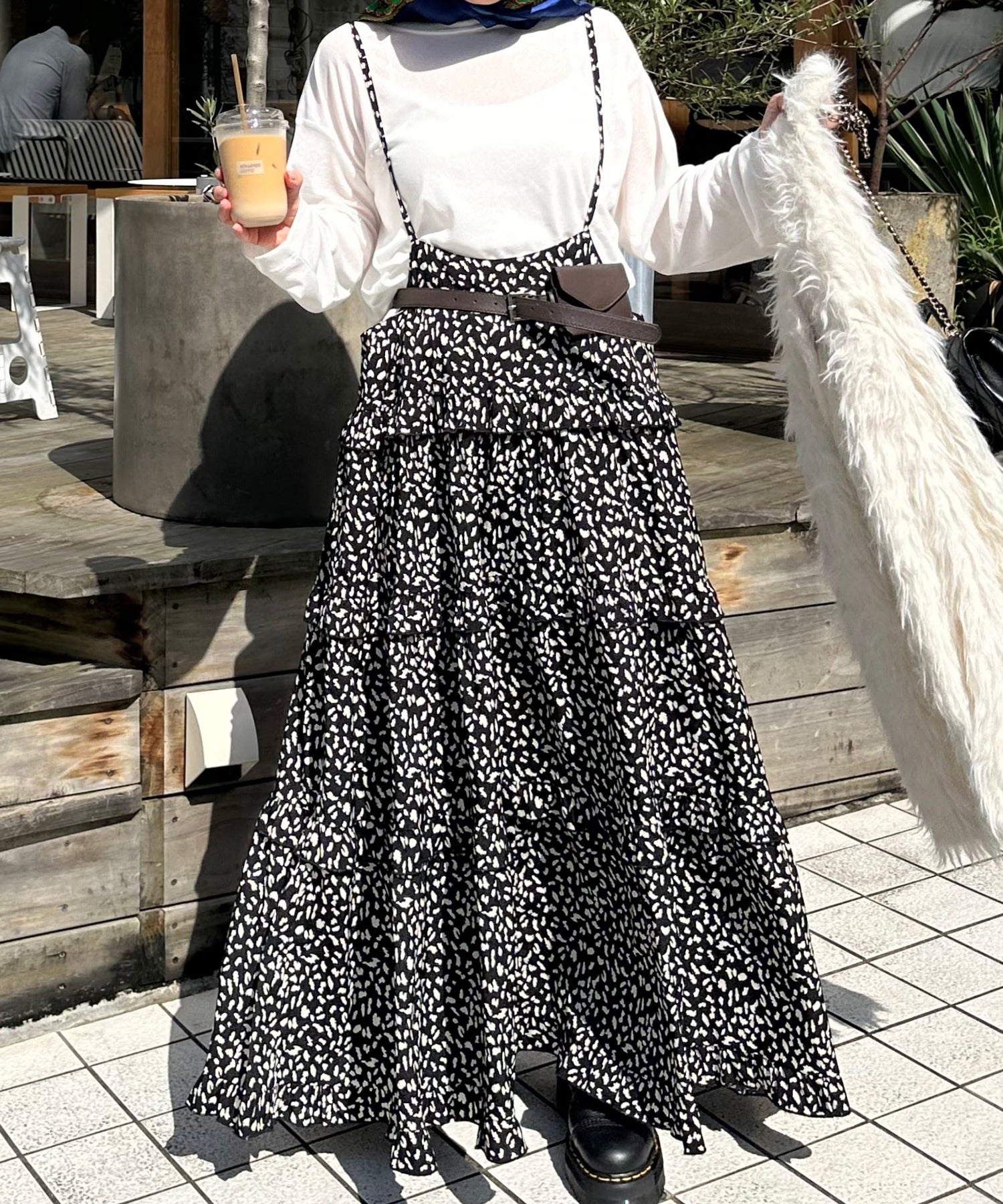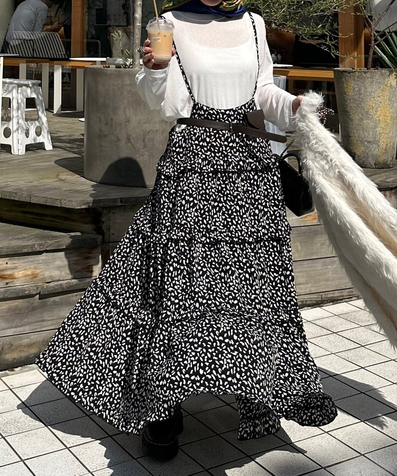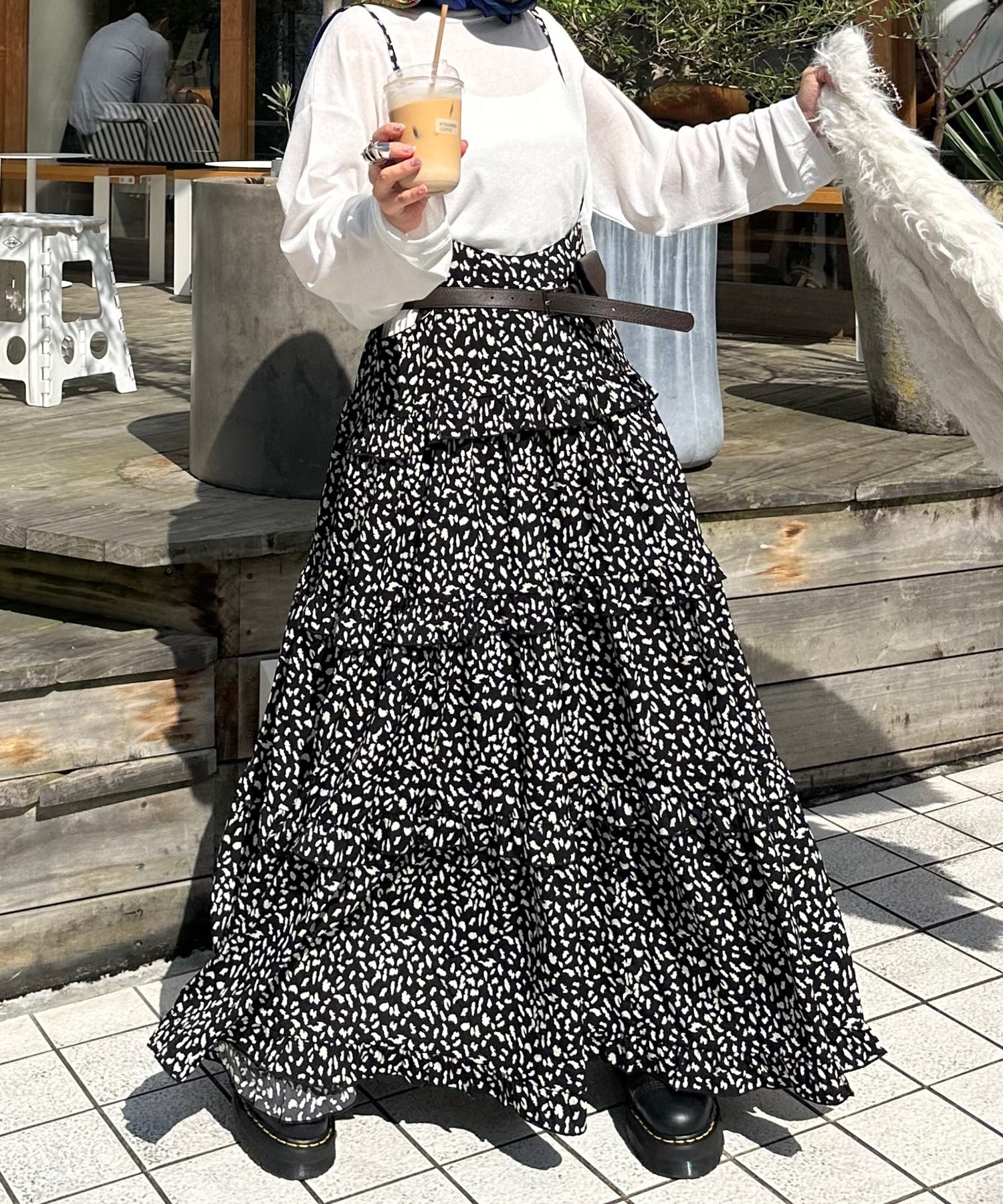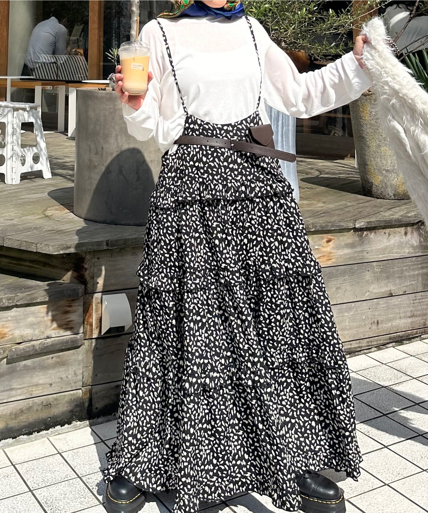 ・大きめのスウェットやニットをレイヤードして、スカートとしても◎