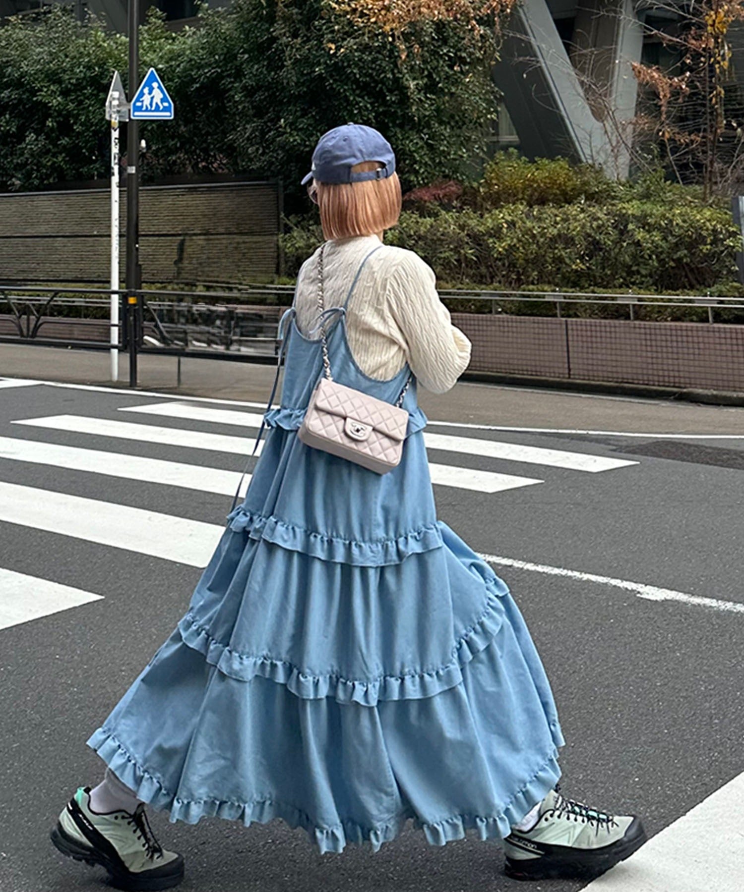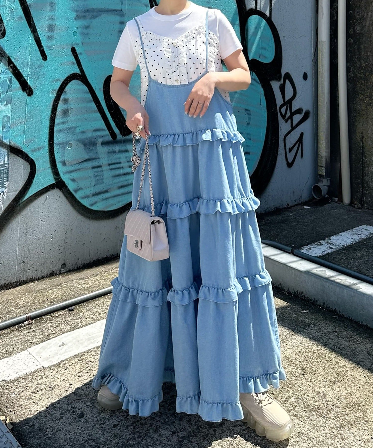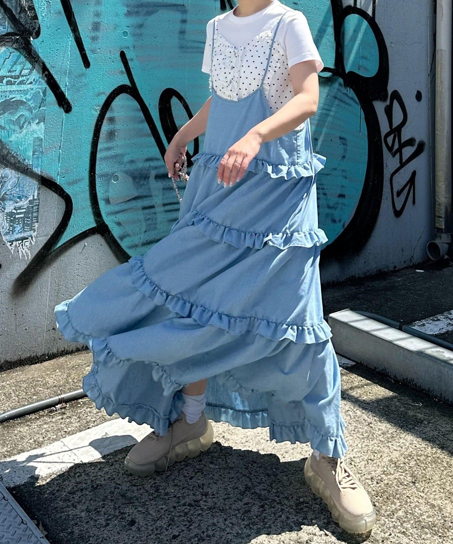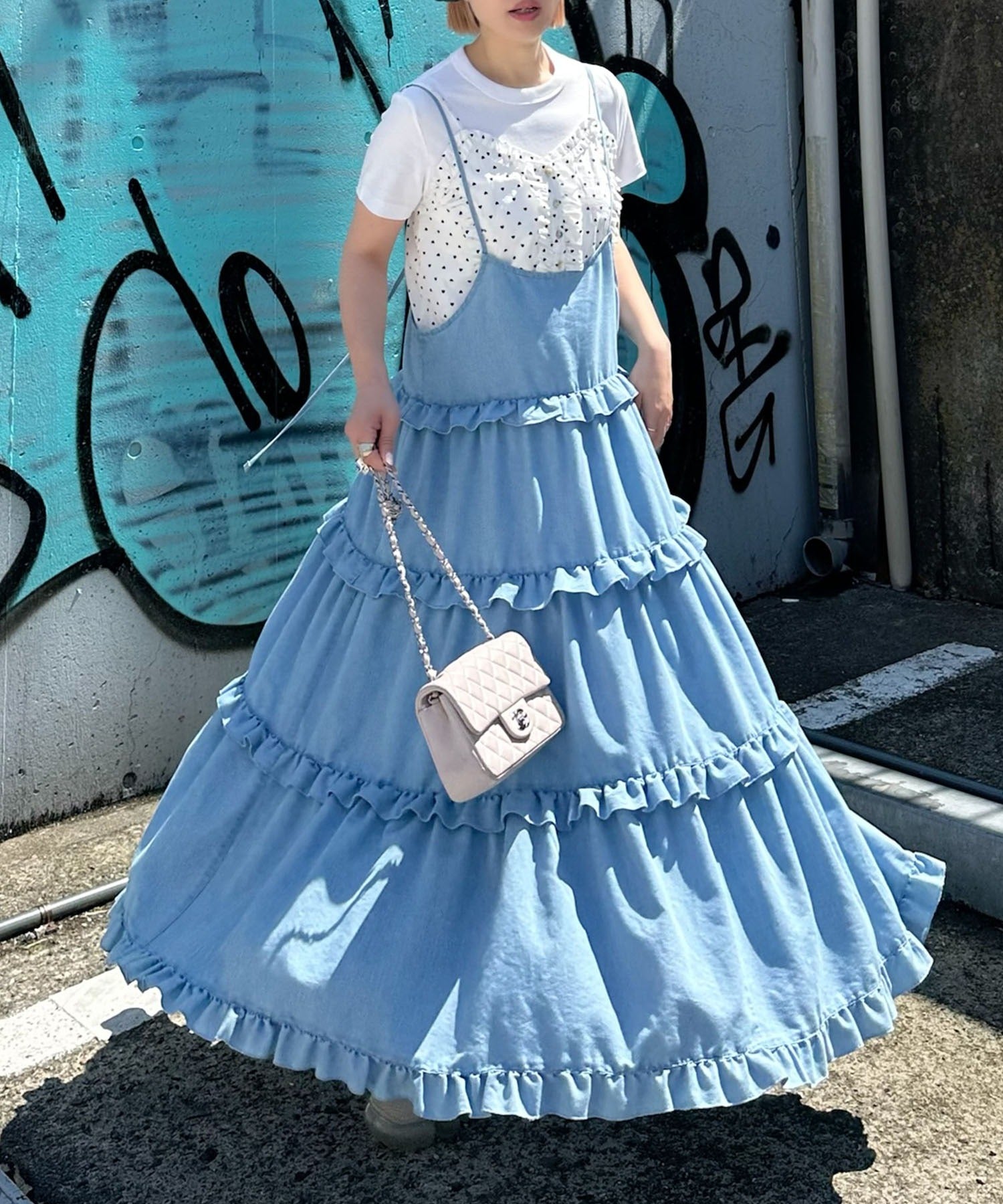 フリルティアードキャミワンピ【サックスブルー】