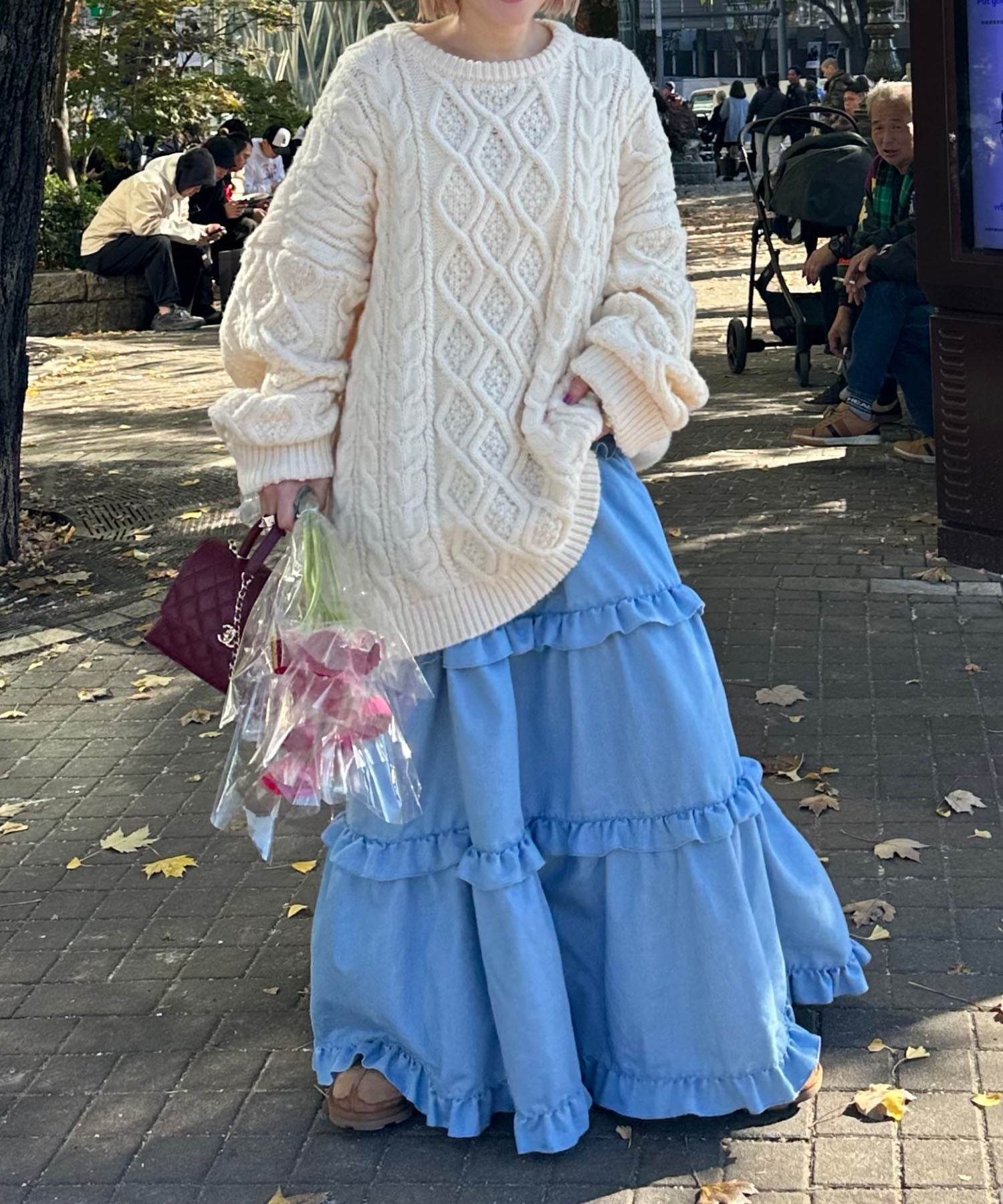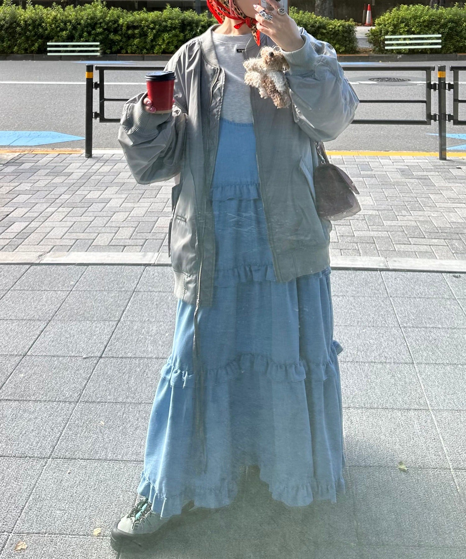 ・大きめのスウェットやニットをレイヤードして、スカートとしても◎