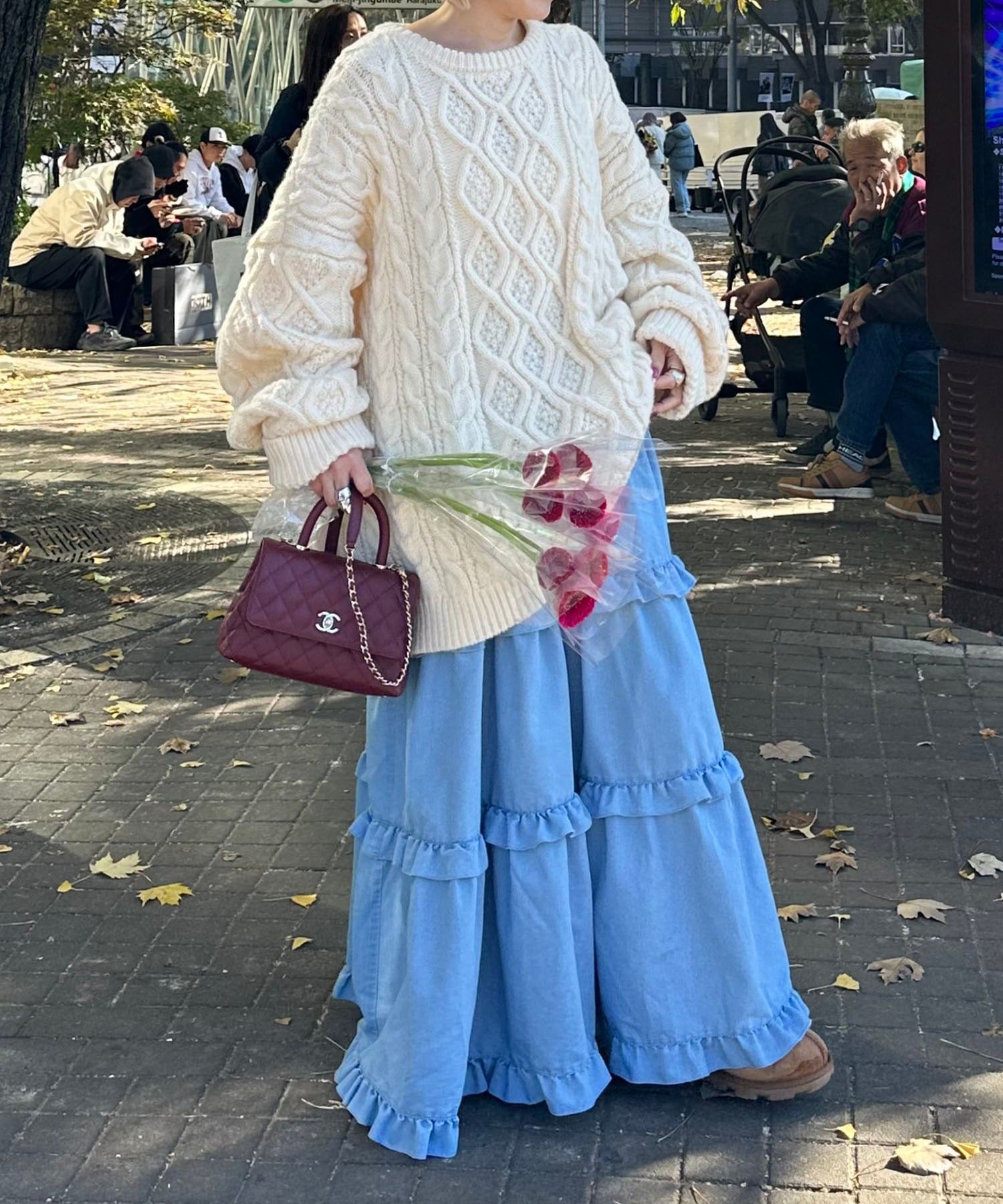 ・足元はスニーカ―やブーツで合わせてカジュアルダウンするのがおすすめ