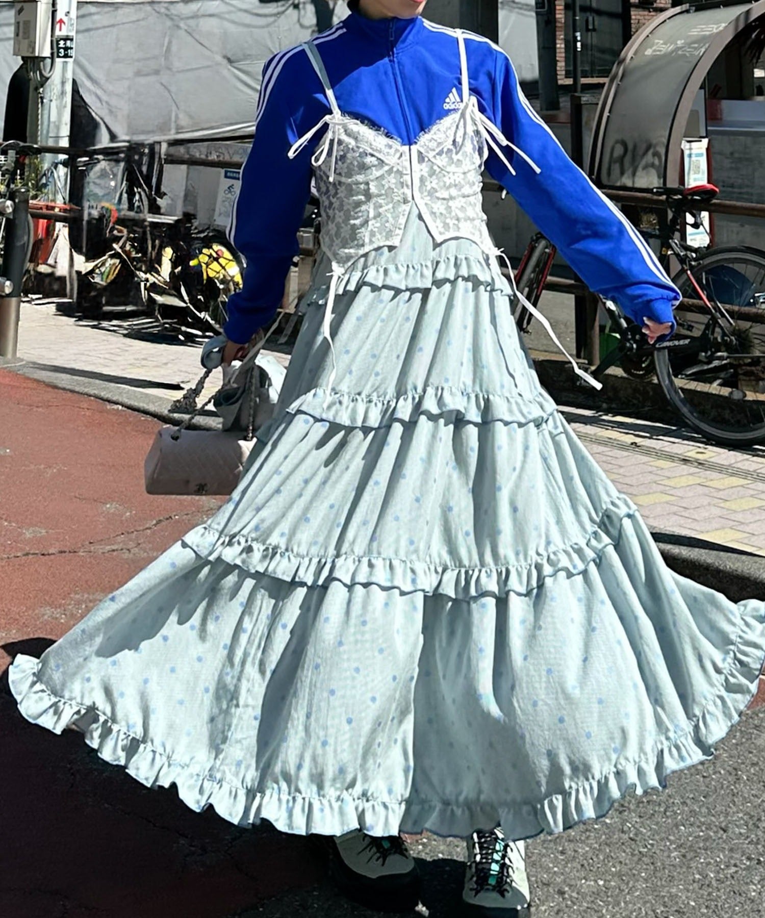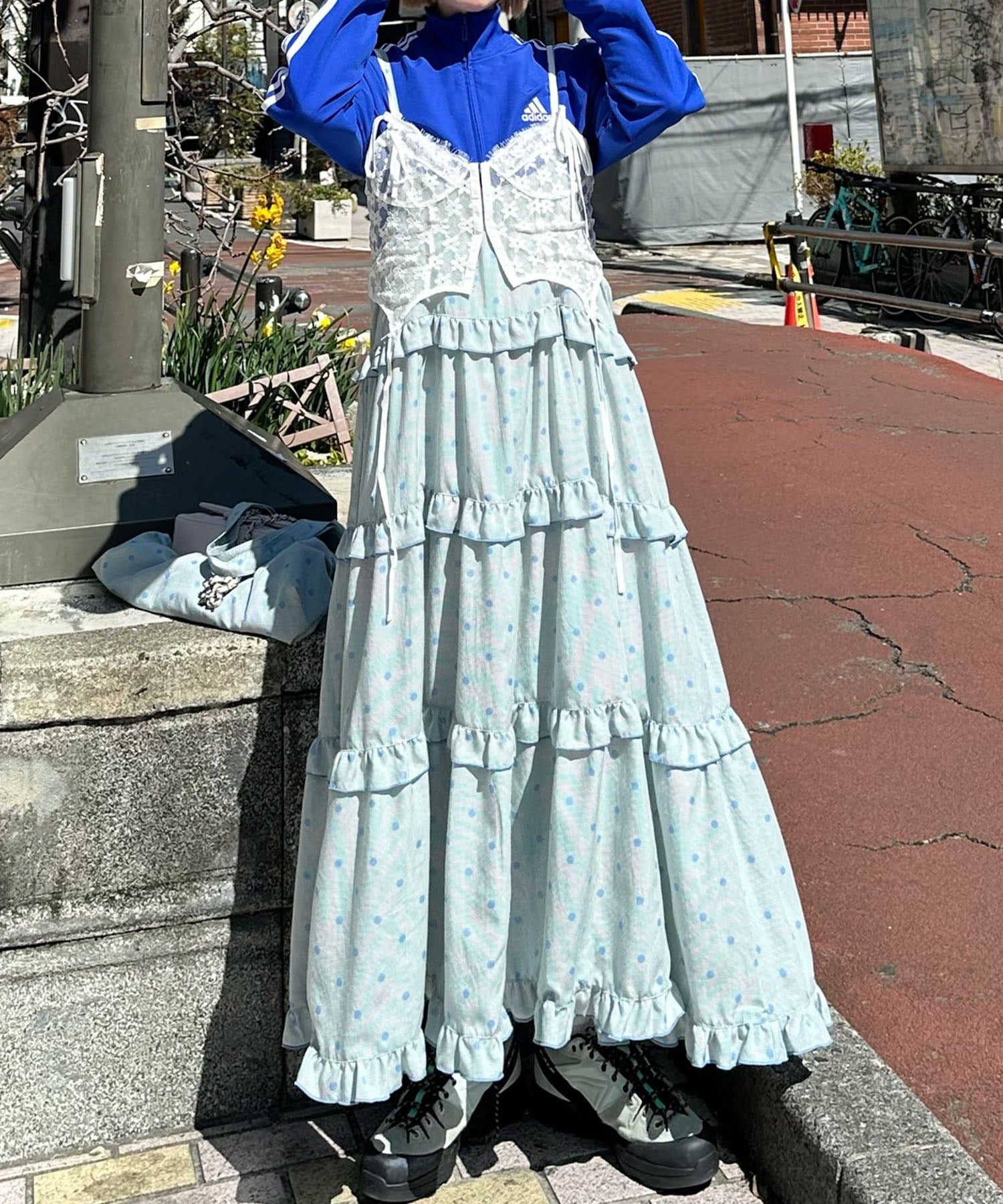 フリルティアードキャミワンピ【サックスブルー系】
