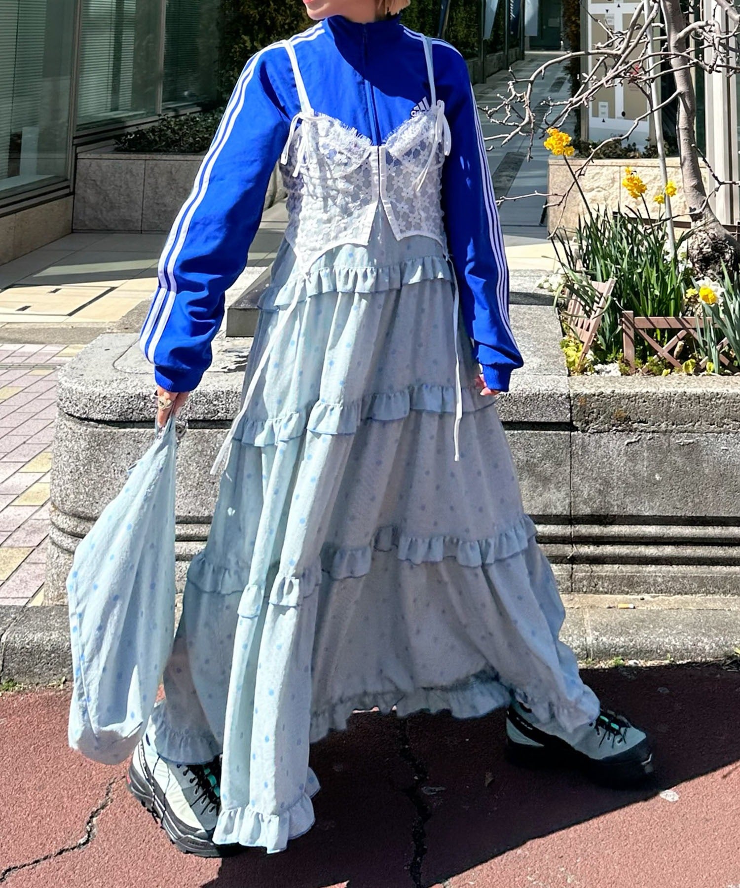・大きめのスウェットやニットをレイヤードして、スカートとしても◎