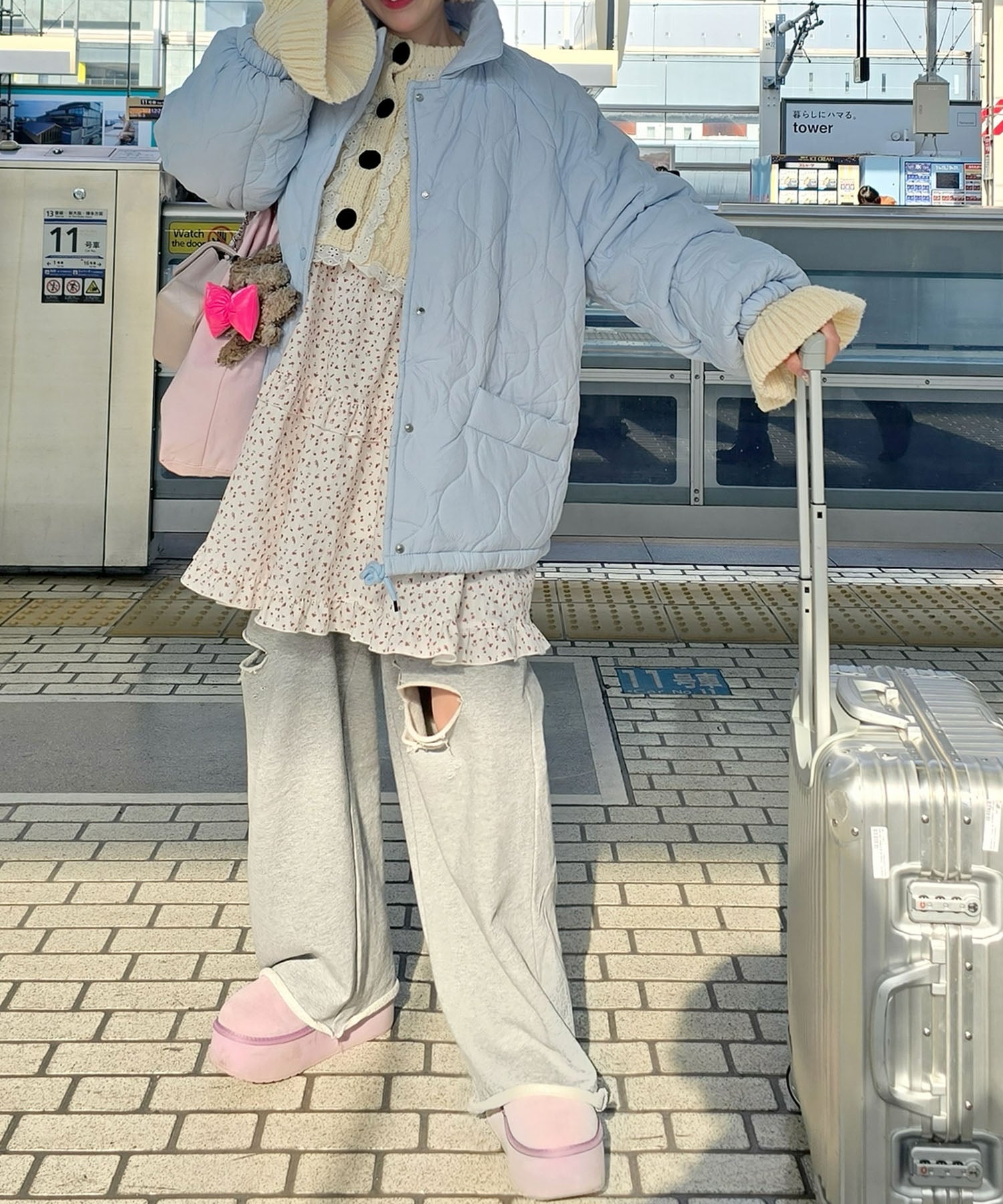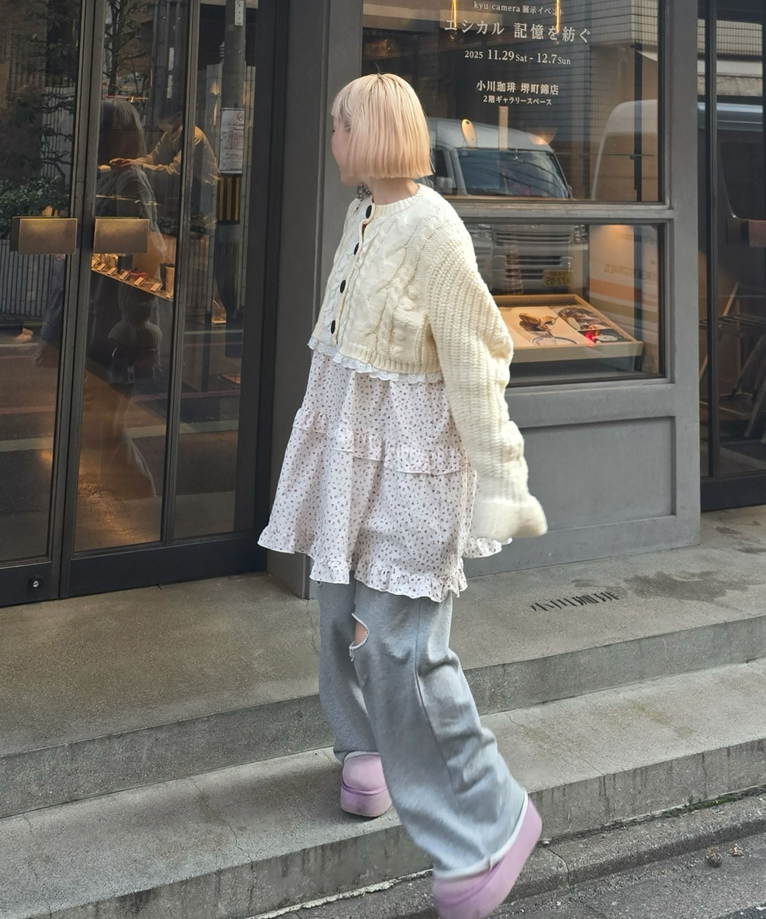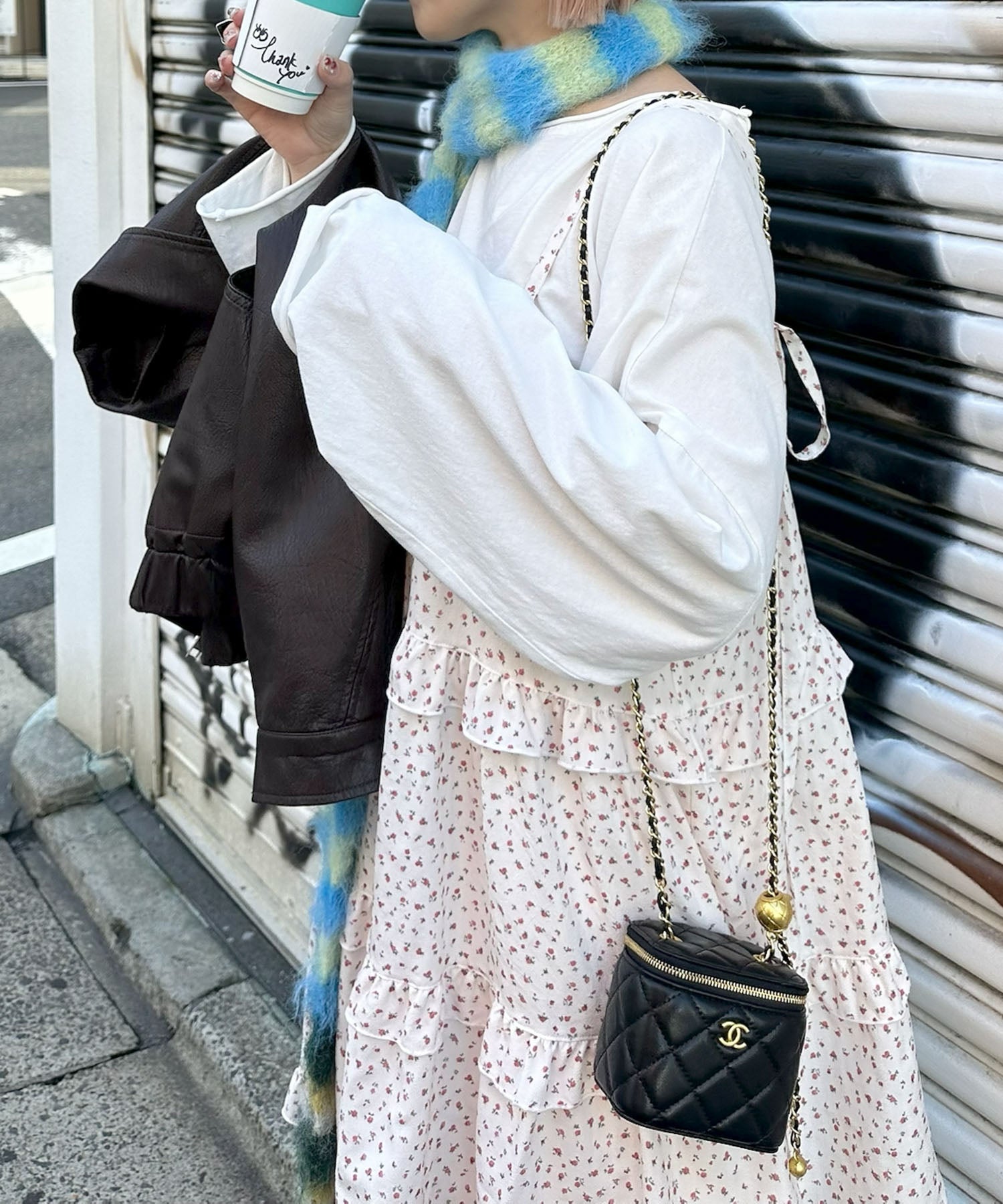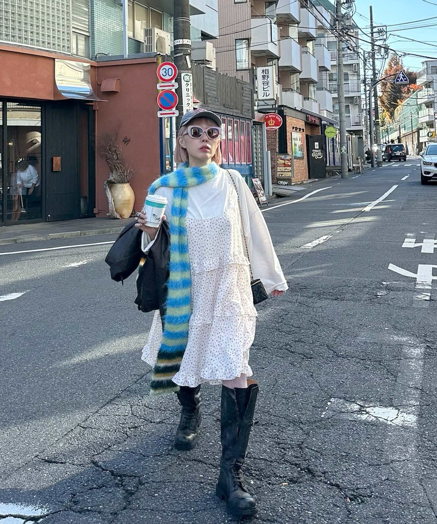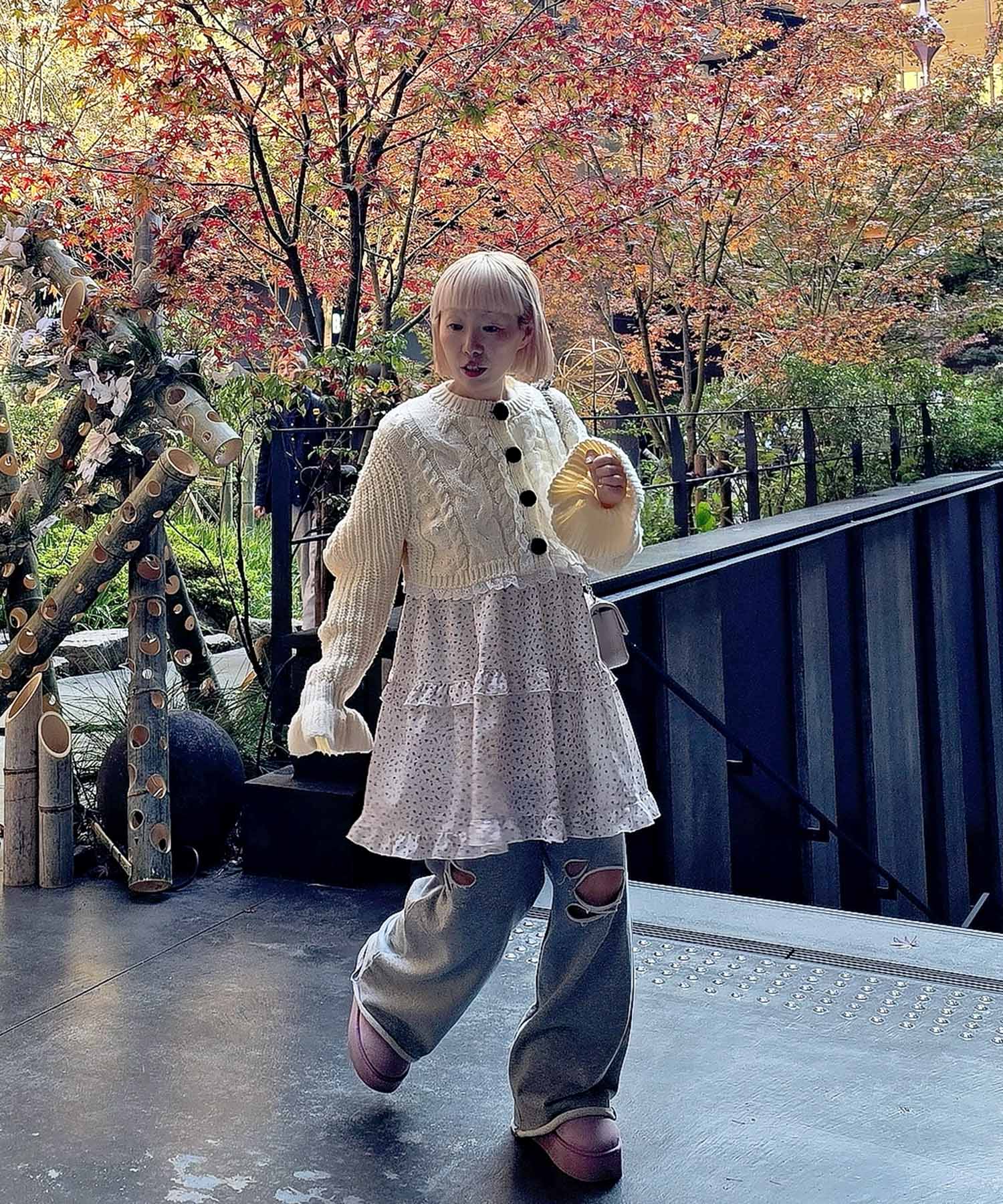 ・上からニットをレイヤードして裾からチラ見せさせるのもかわいい
