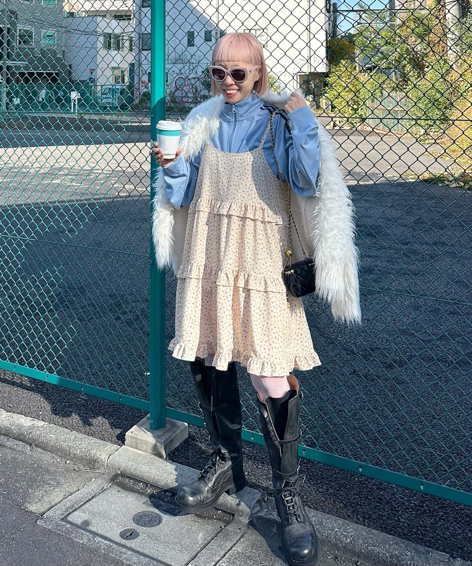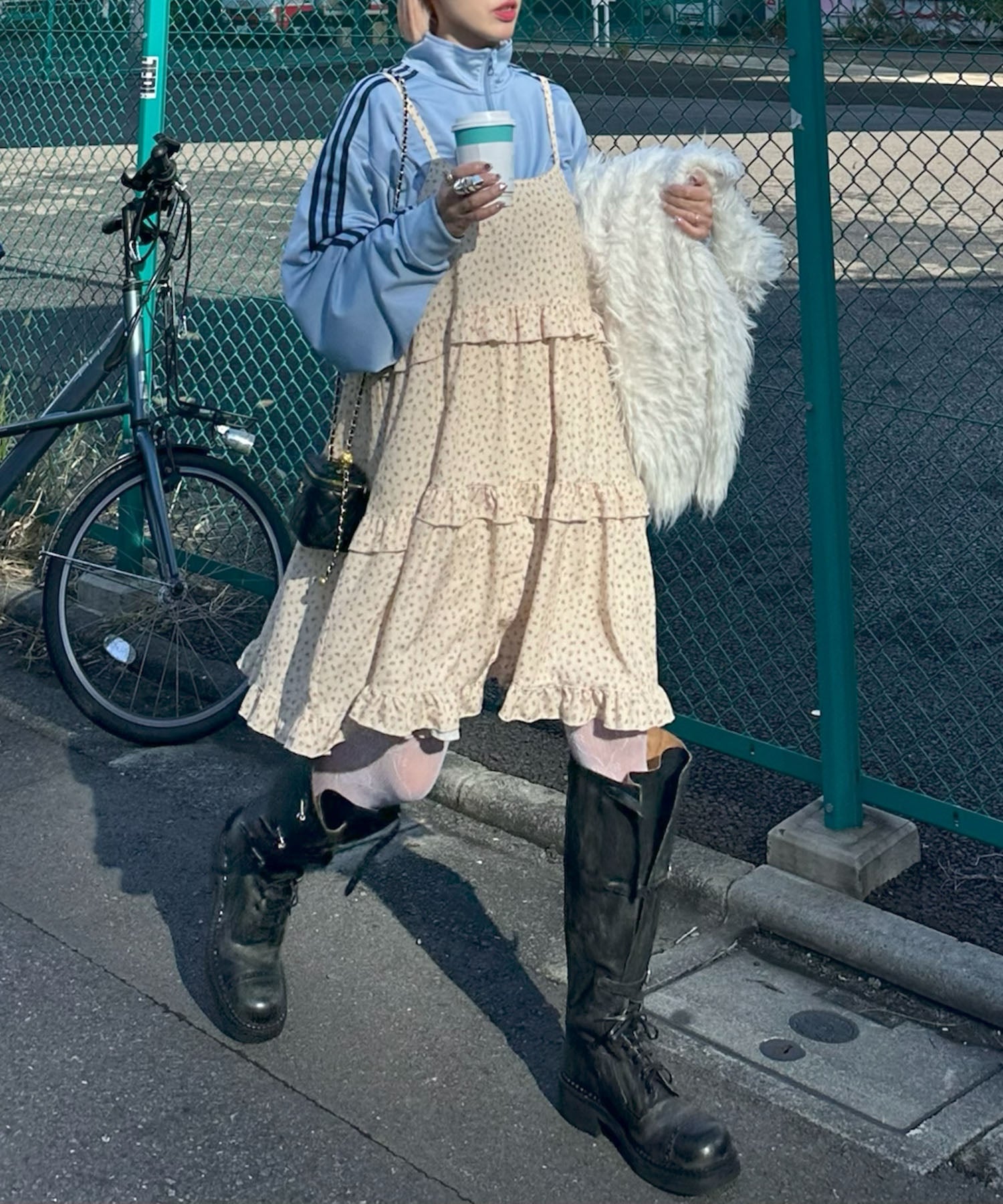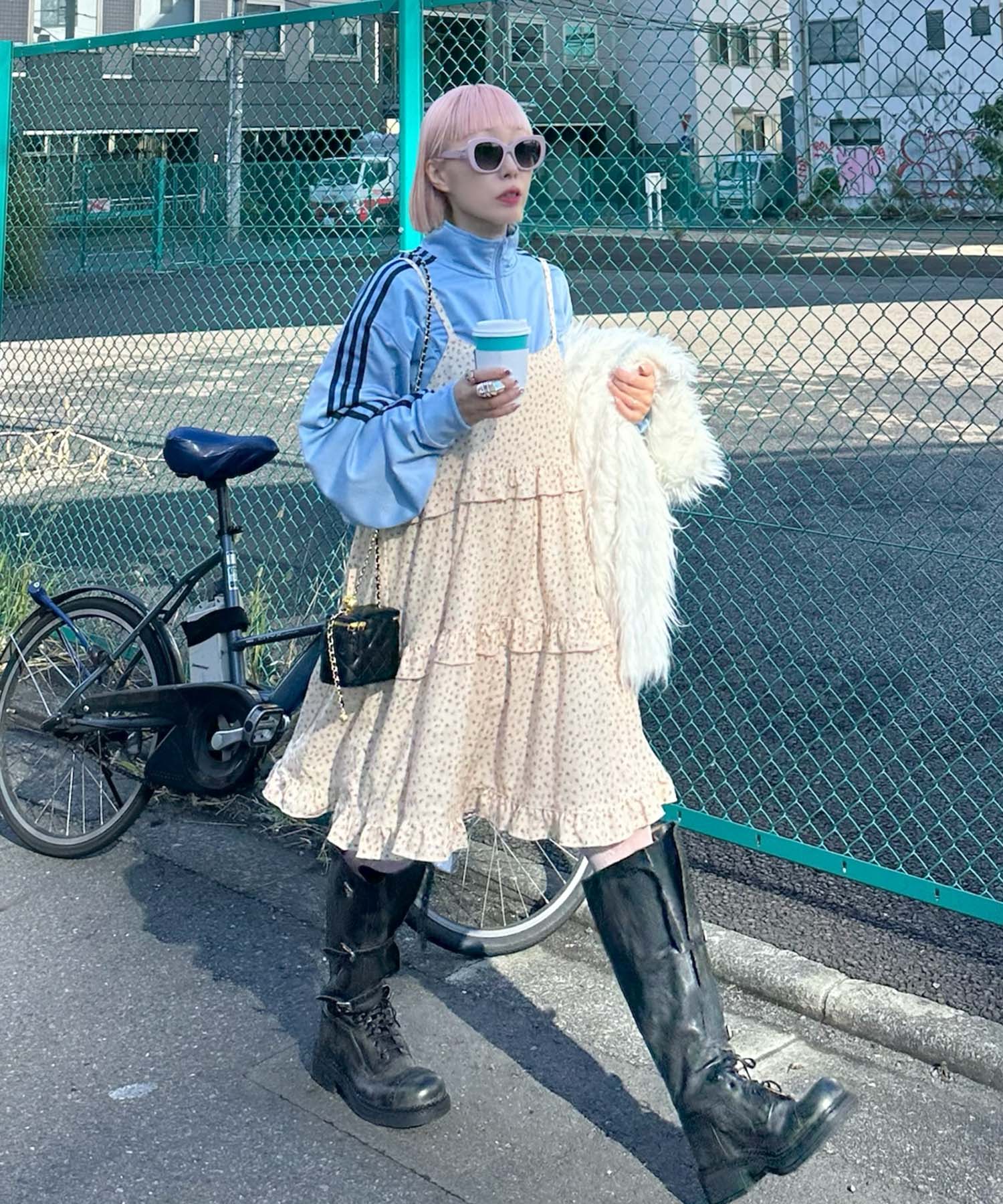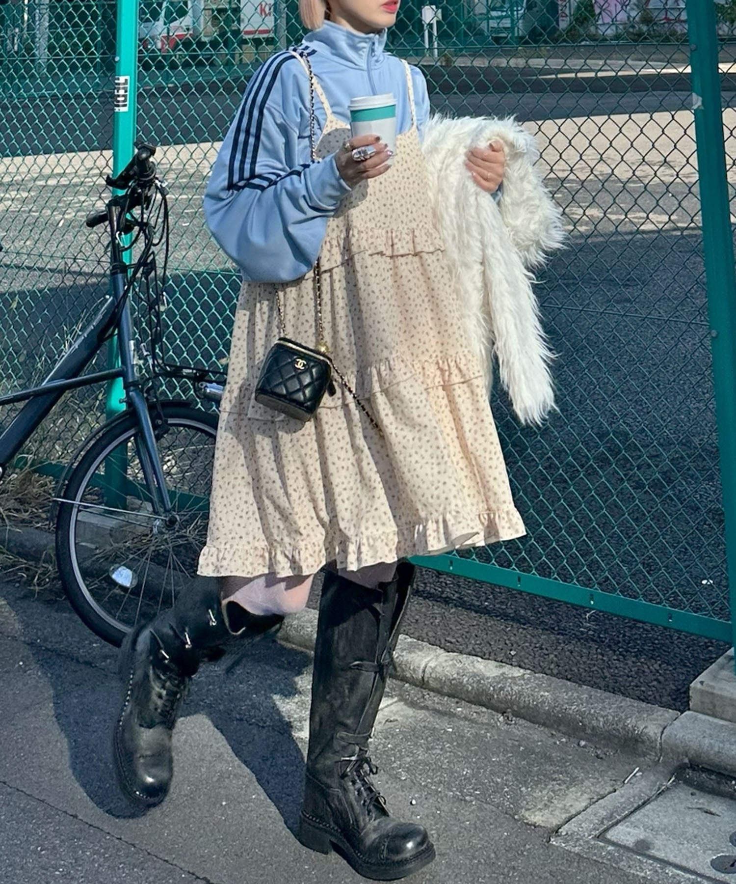 ・ジャージをレイヤードしてミニワンピとして合わせるのが鉄板