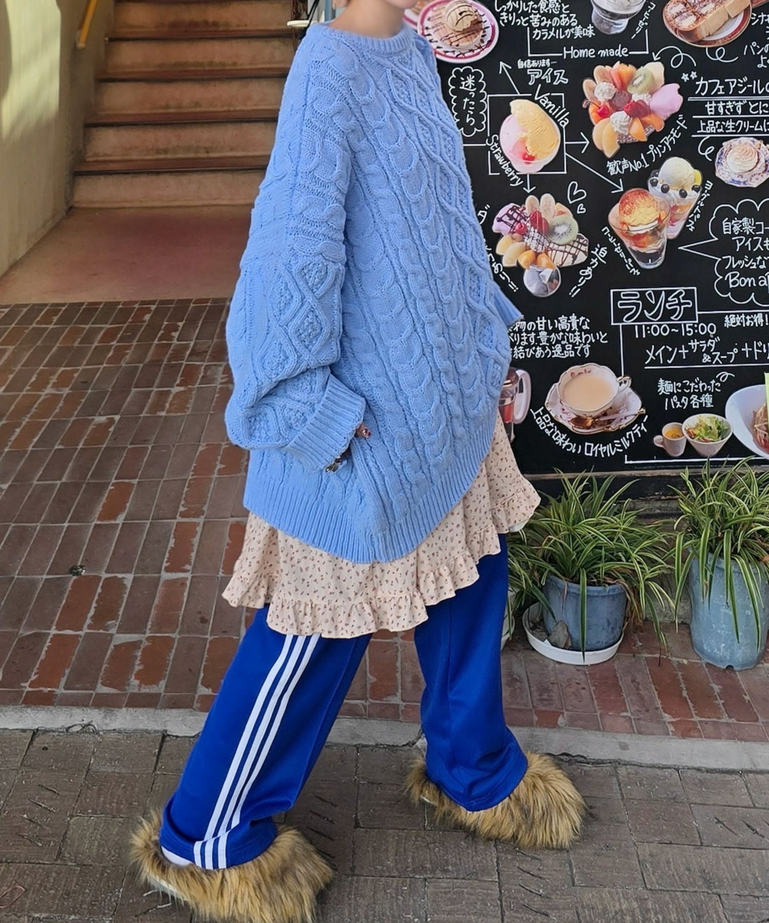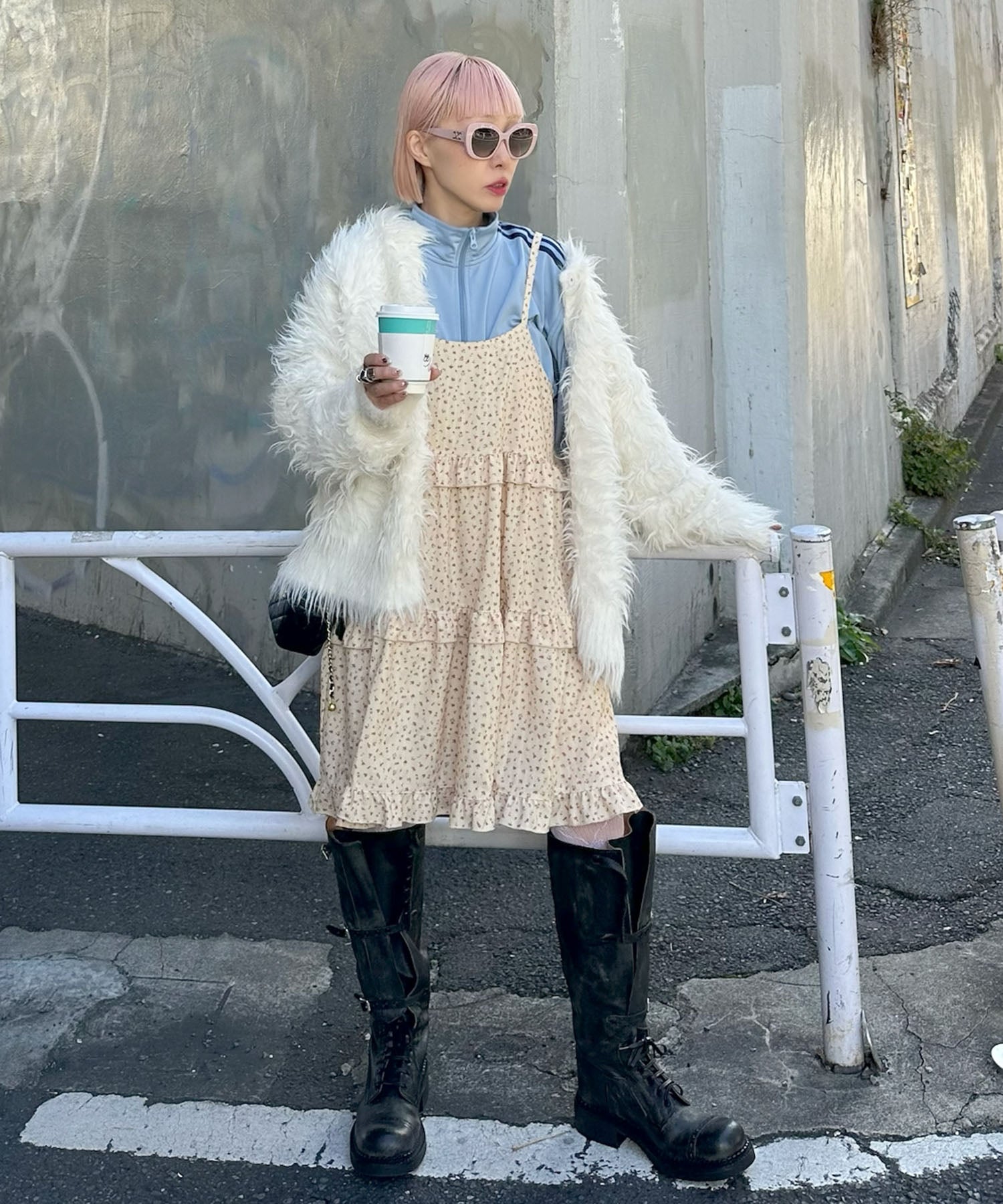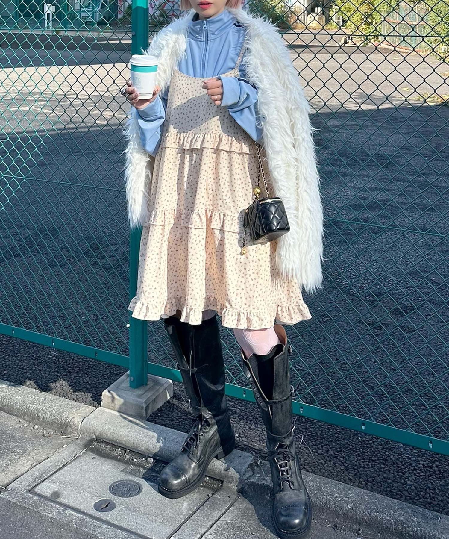 ・上からニットをレイヤードして裾からチラ見せさせるのもかわいい