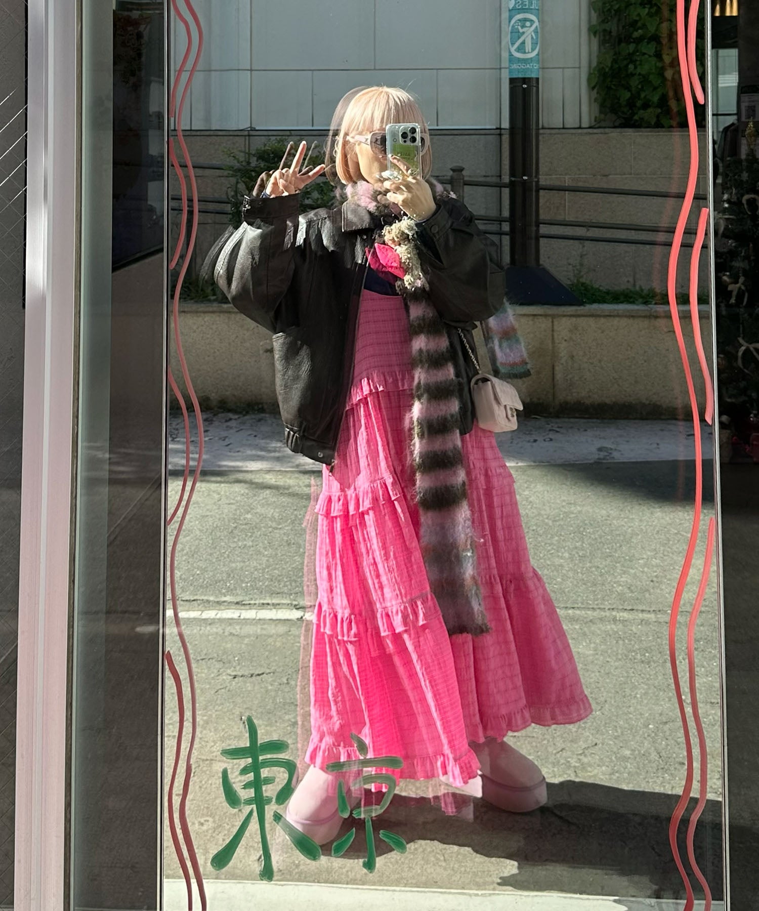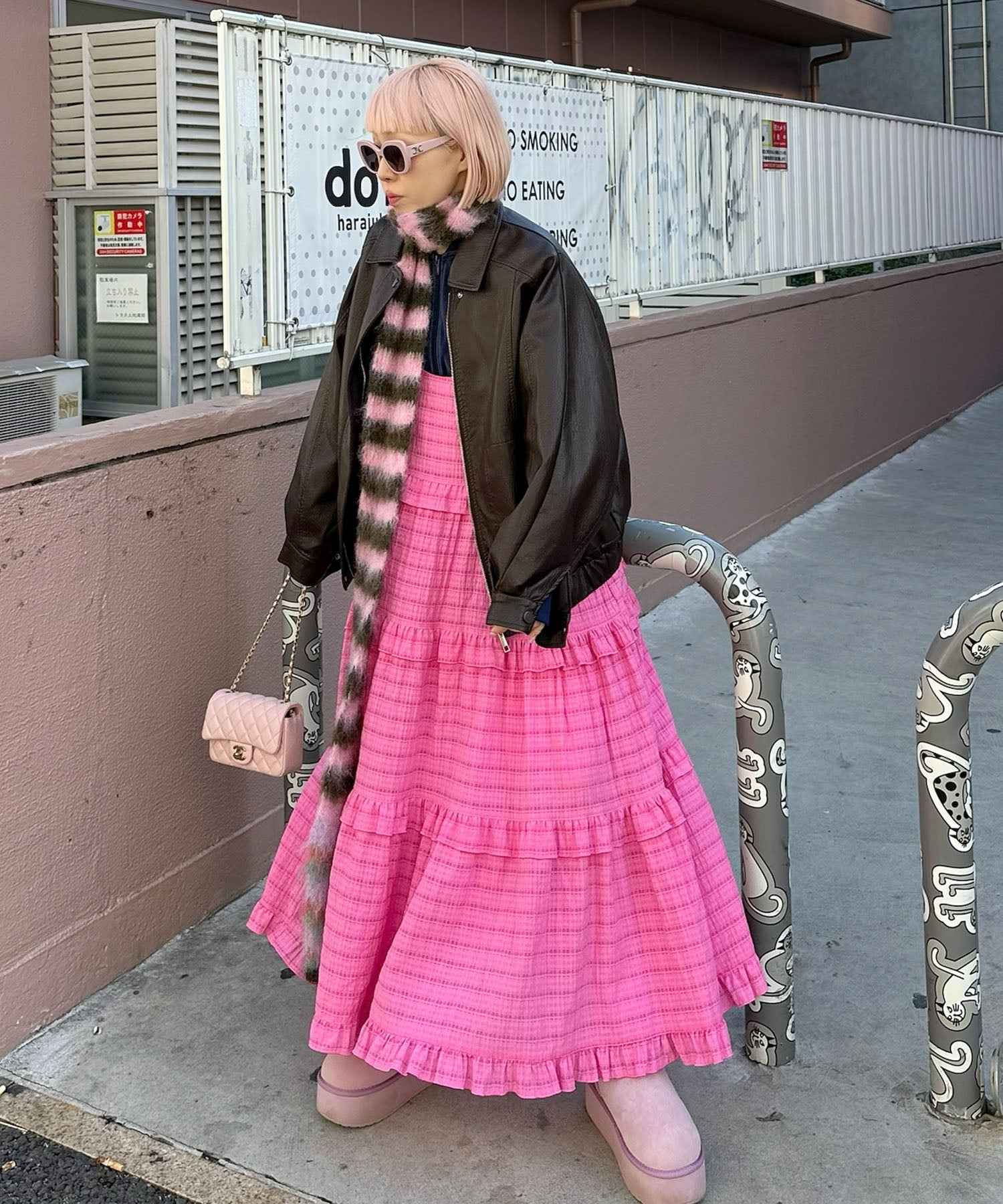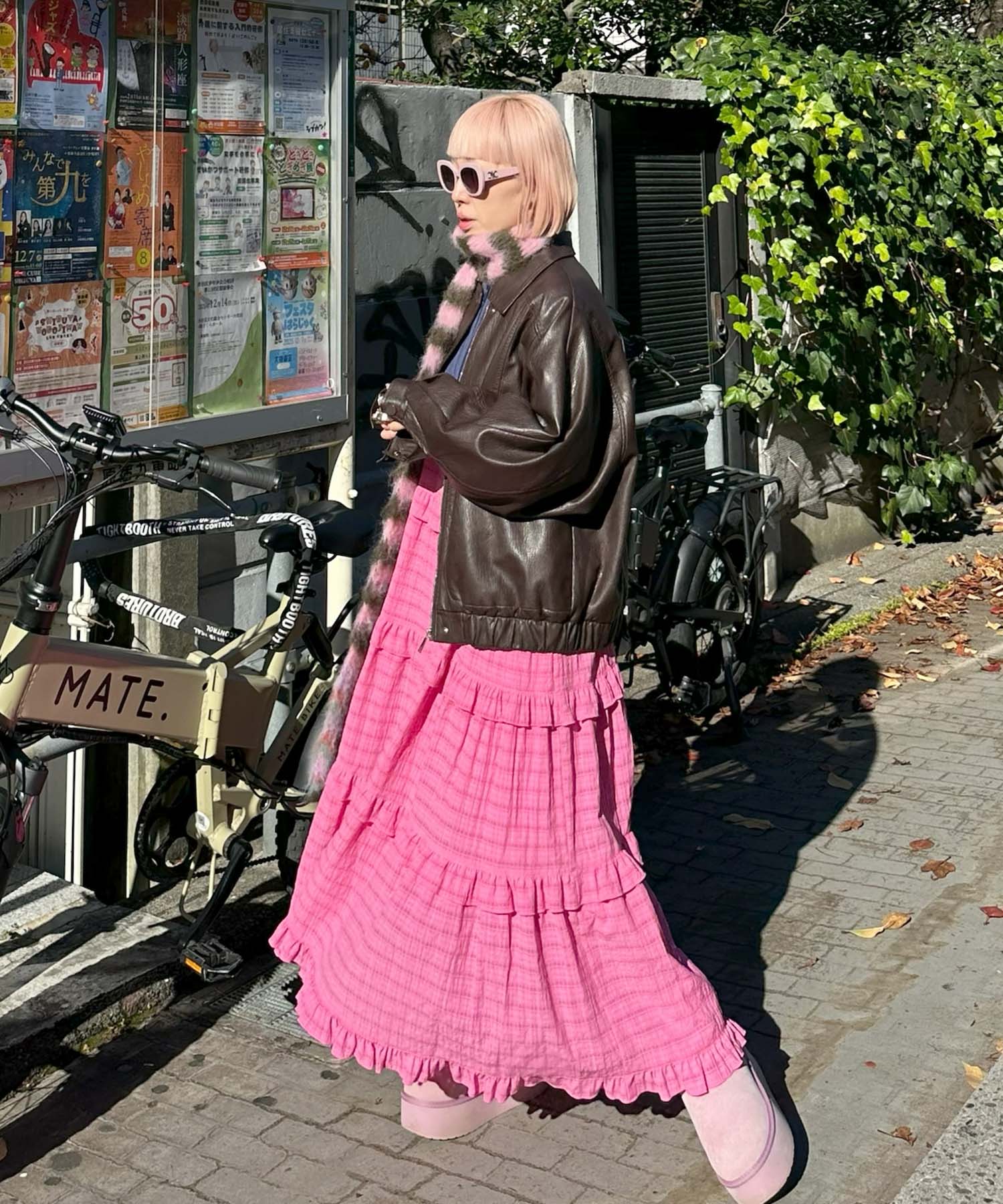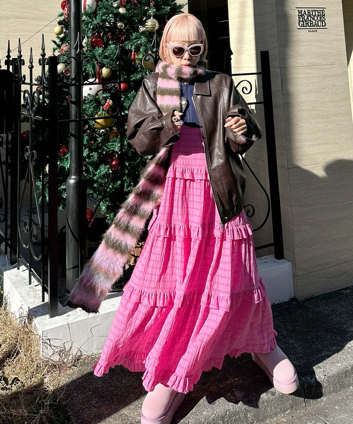 ・大きめのスウェットやニットをレイヤードして、スカートとしても◎