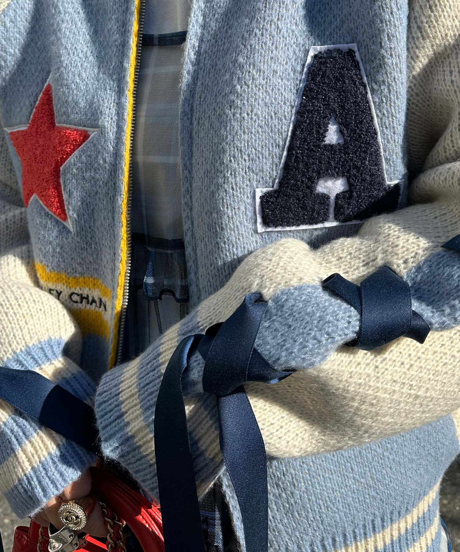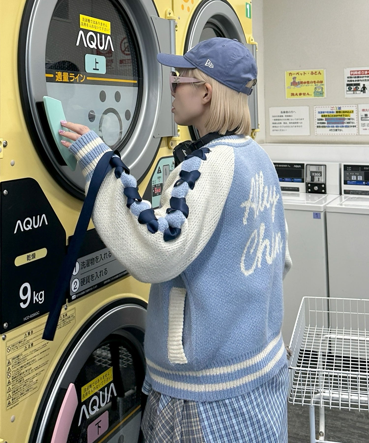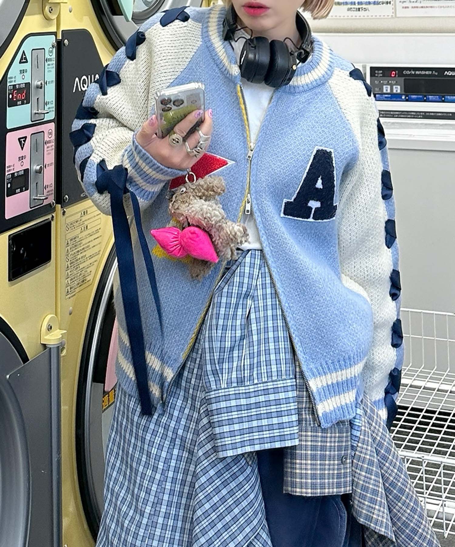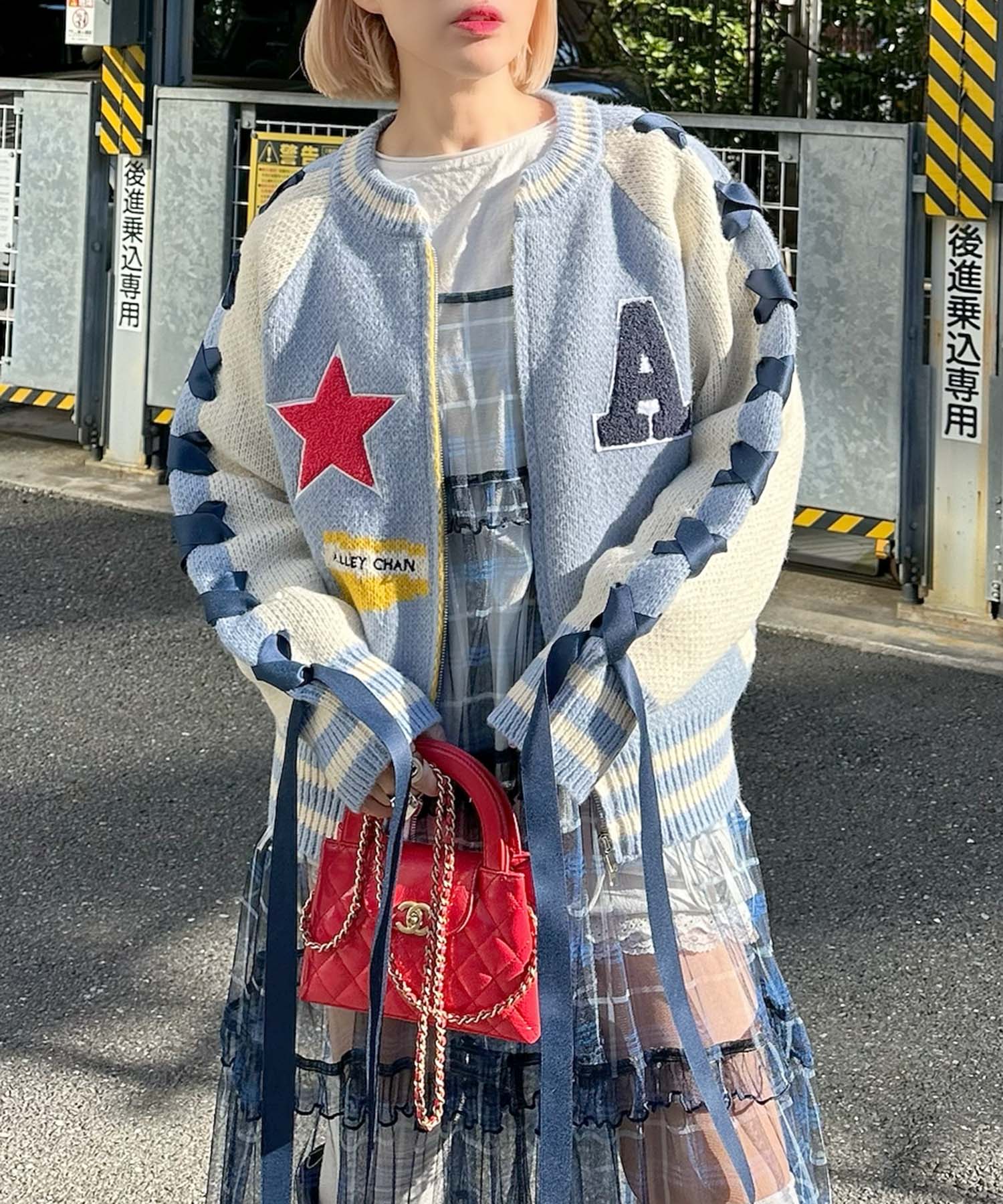 袖リボンALLEYニットスタジャン【サックスブルー】