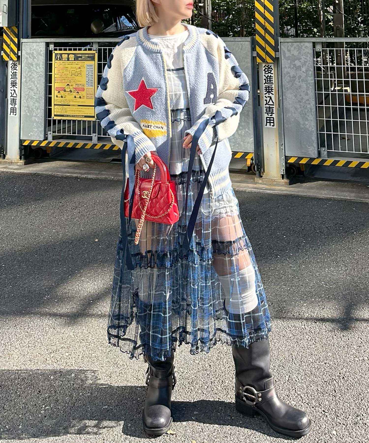 ・ワンピースと合わせるとバランスが取りやすくすっきりとした印象に