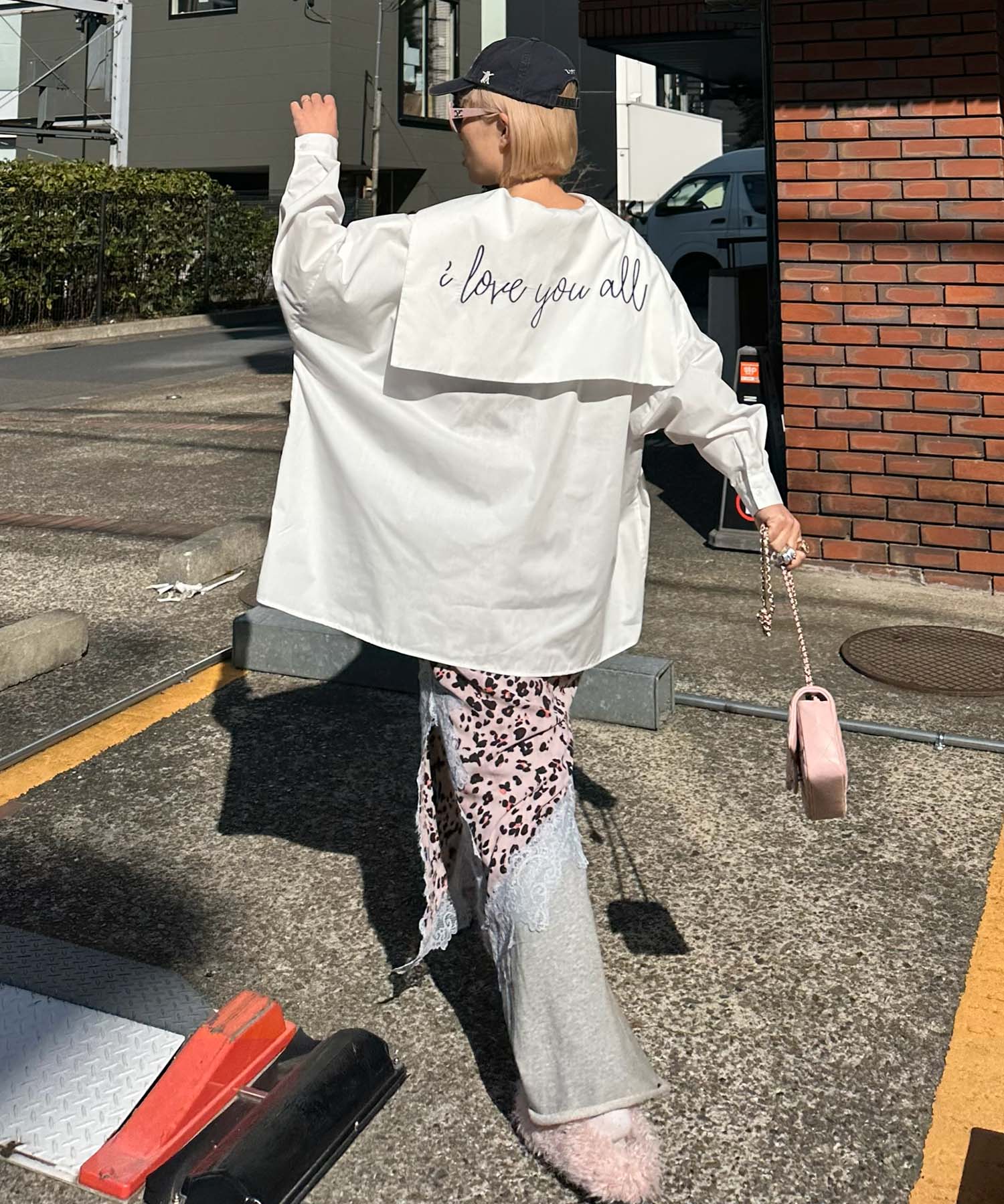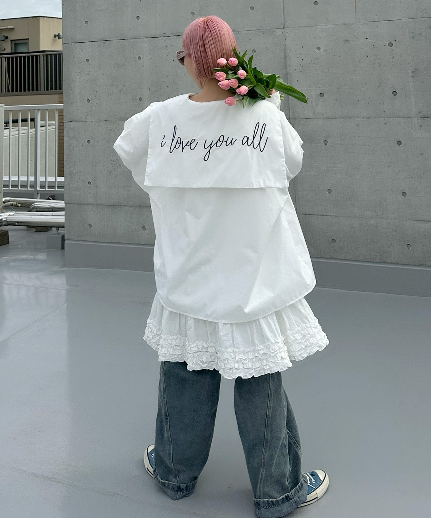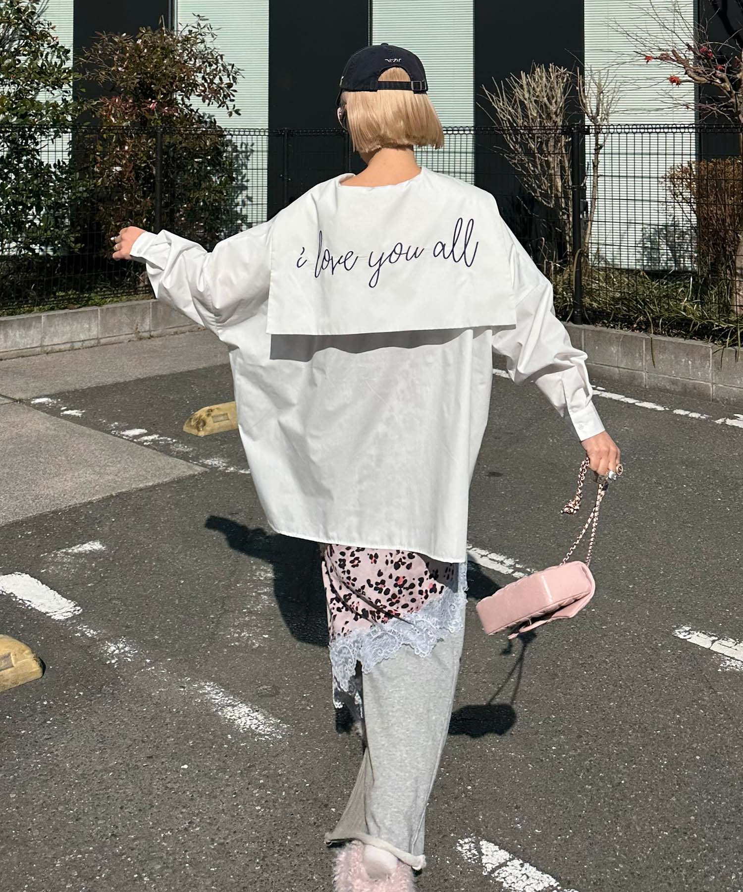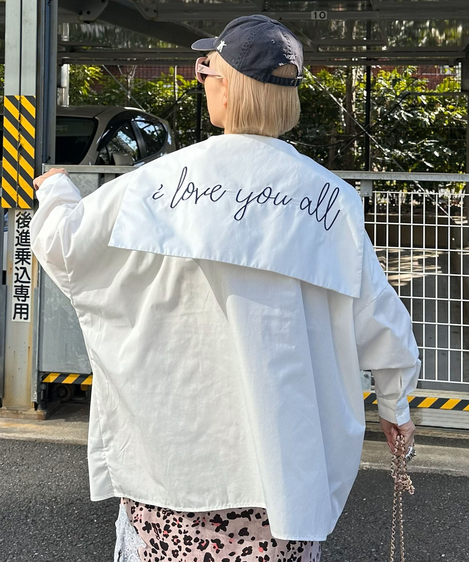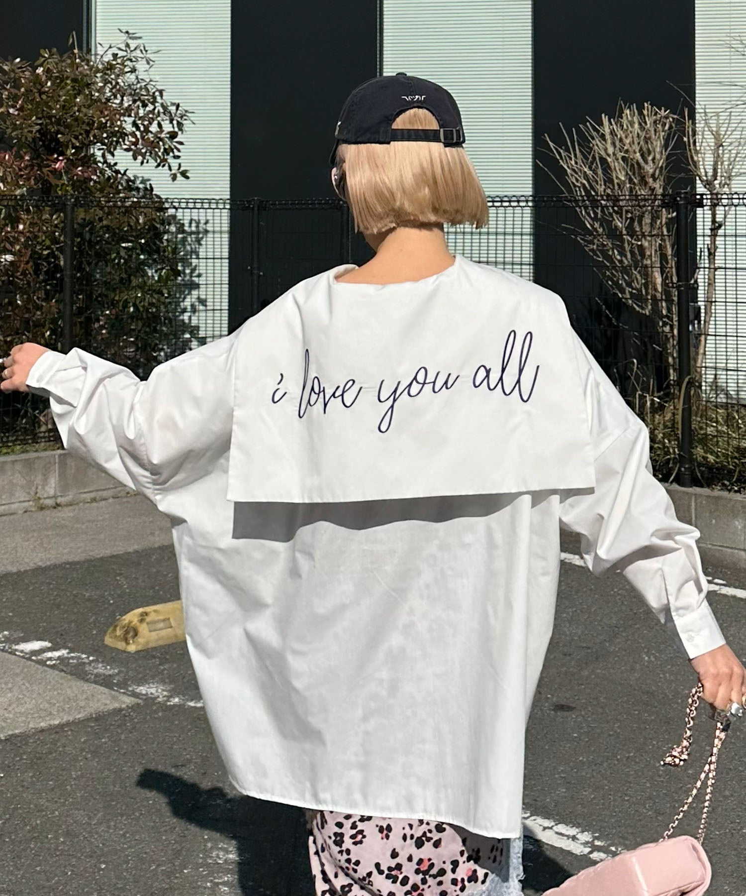 ・大きめのセーラー衿に施されたメッセージロゴが可愛く、後ろ姿まで抜かりなし