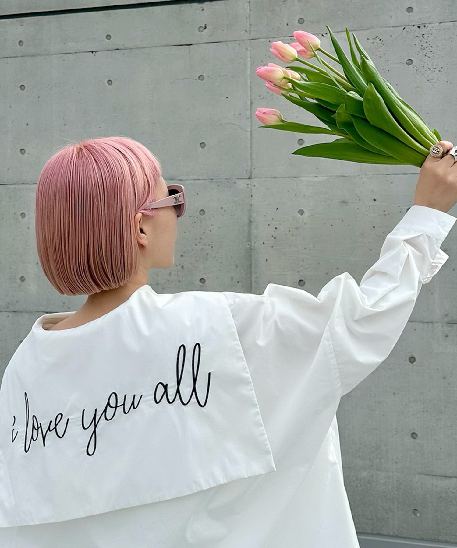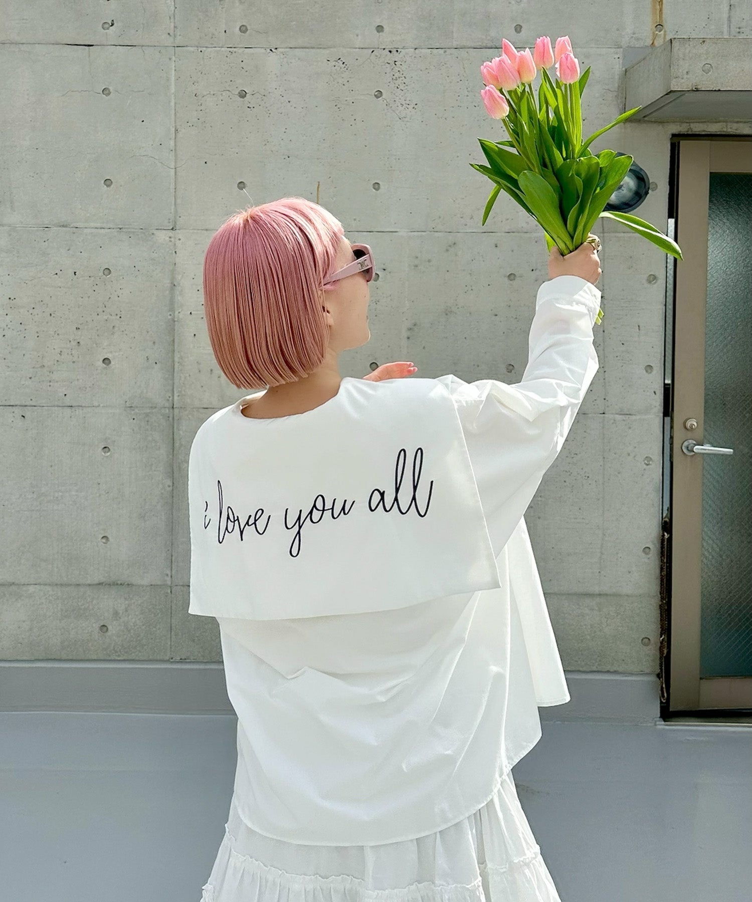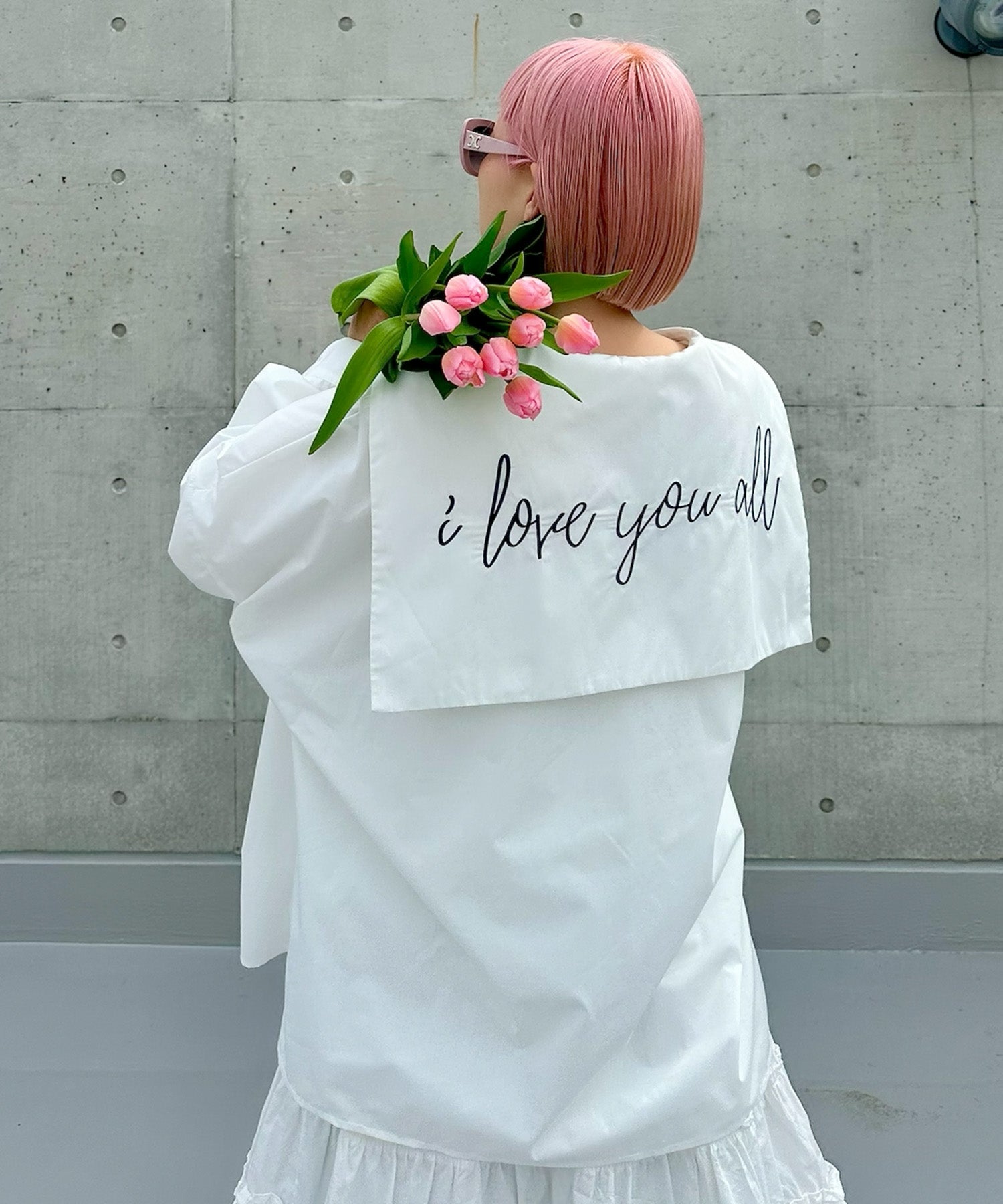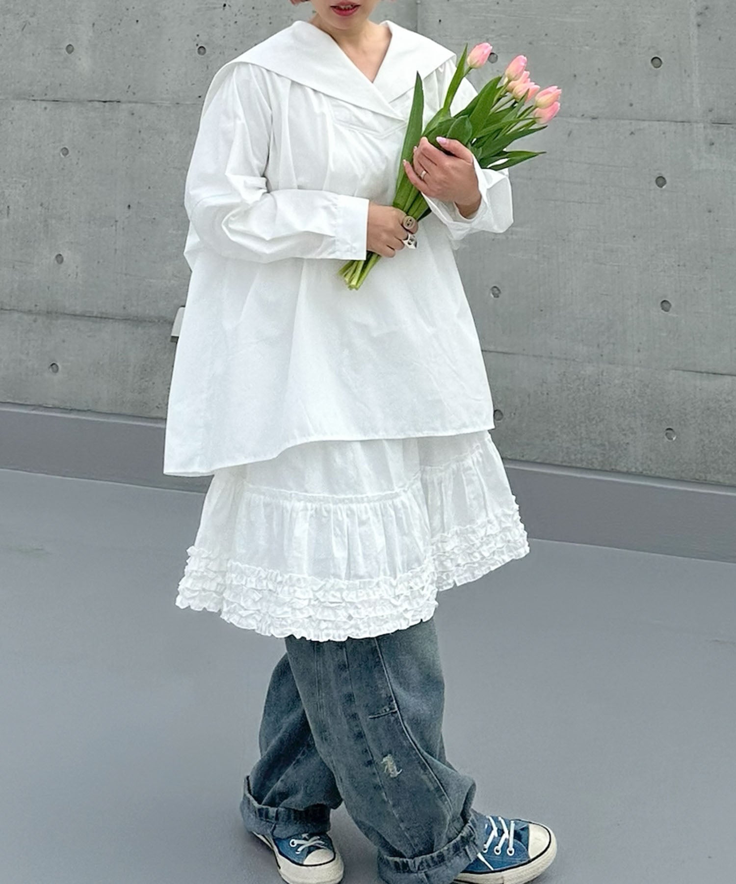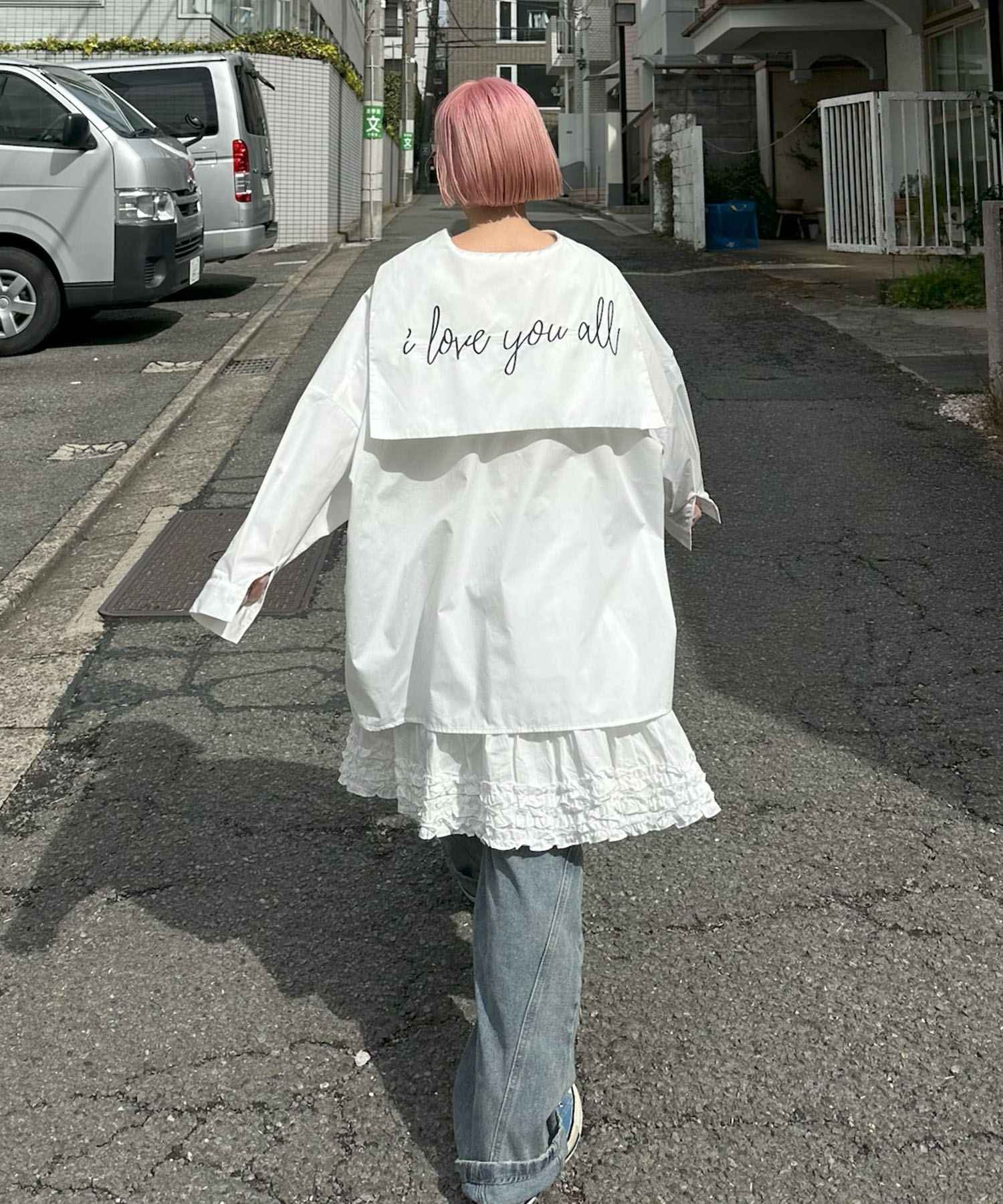 ・大きめのセーラー衿に施されたメッセージロゴが可愛く、後ろ姿まで抜かりなし