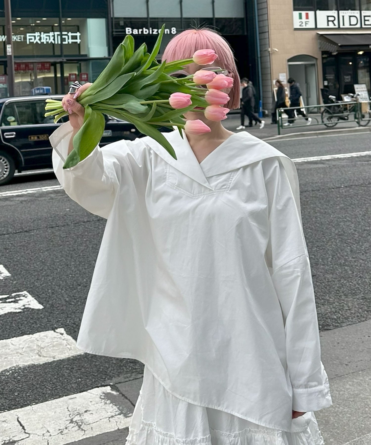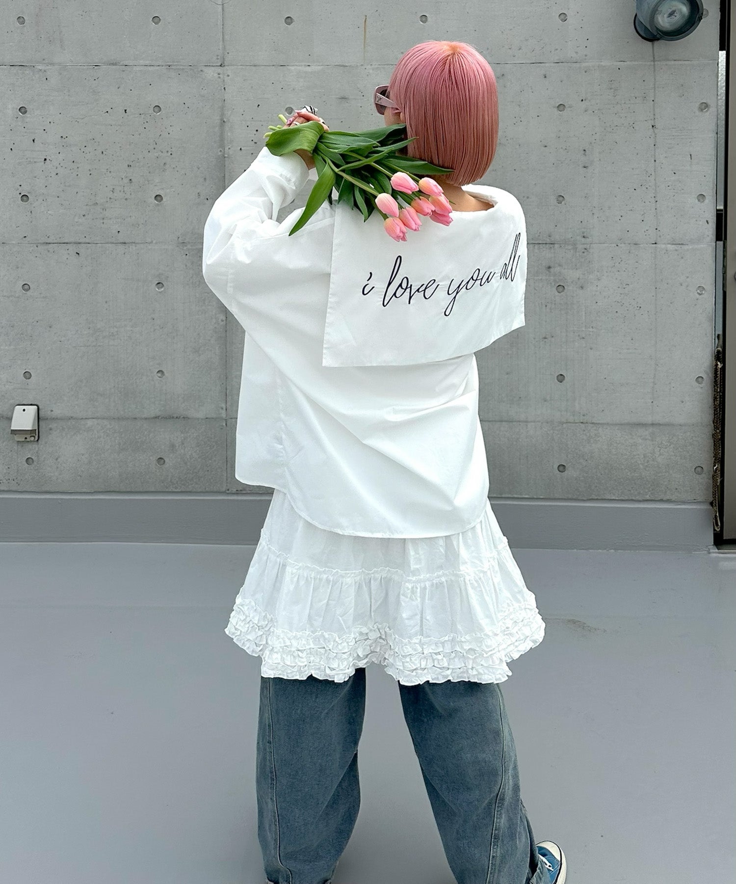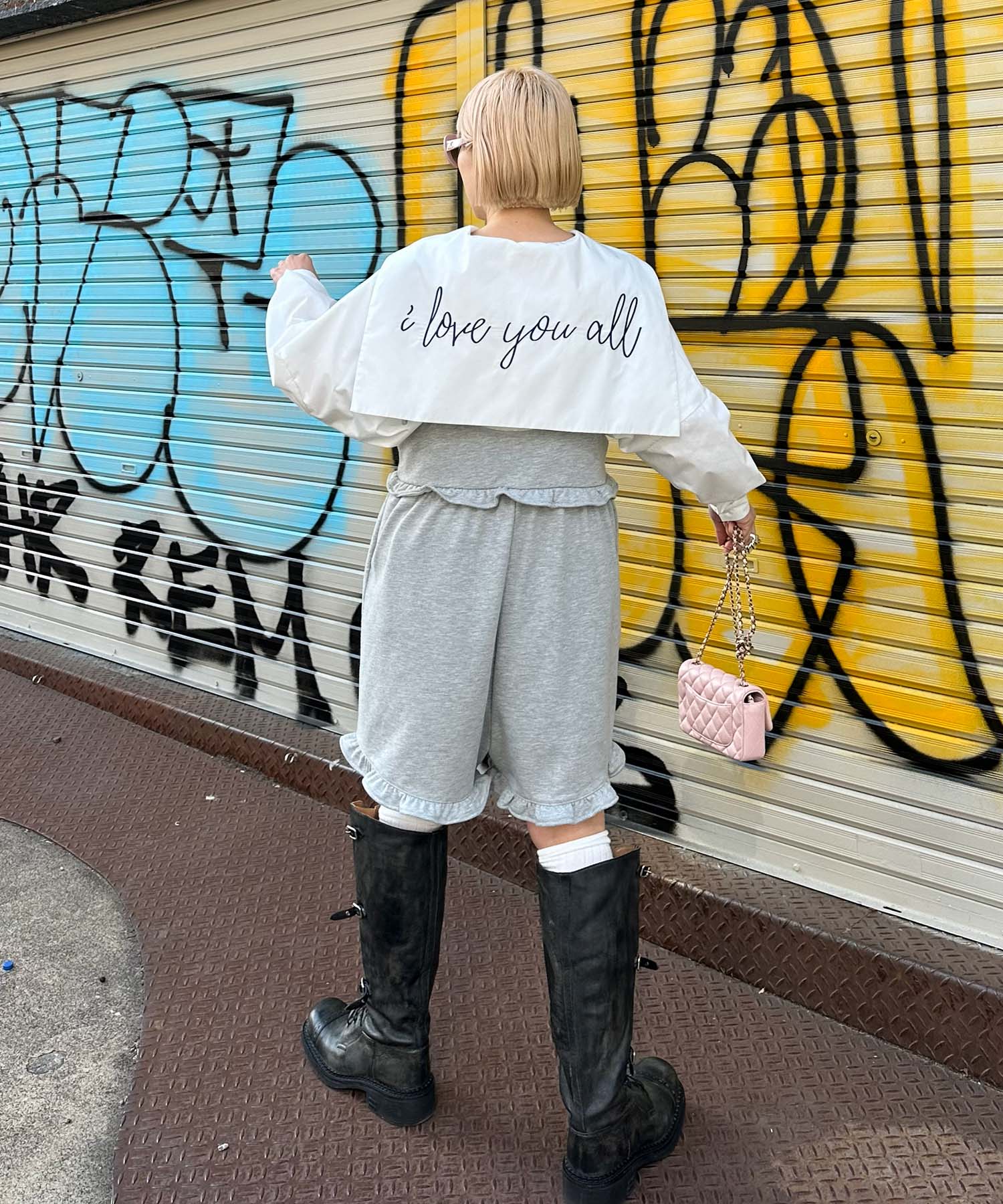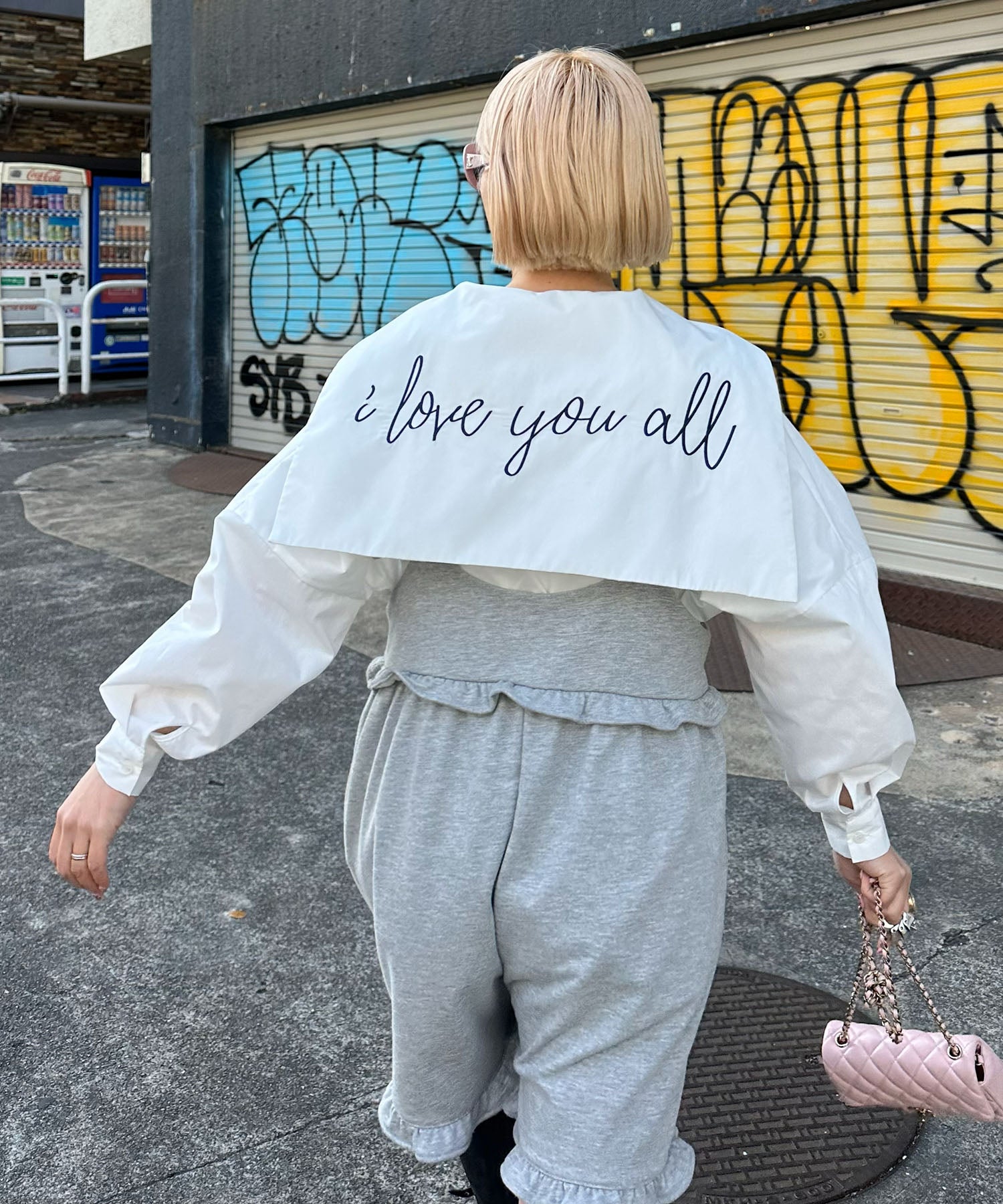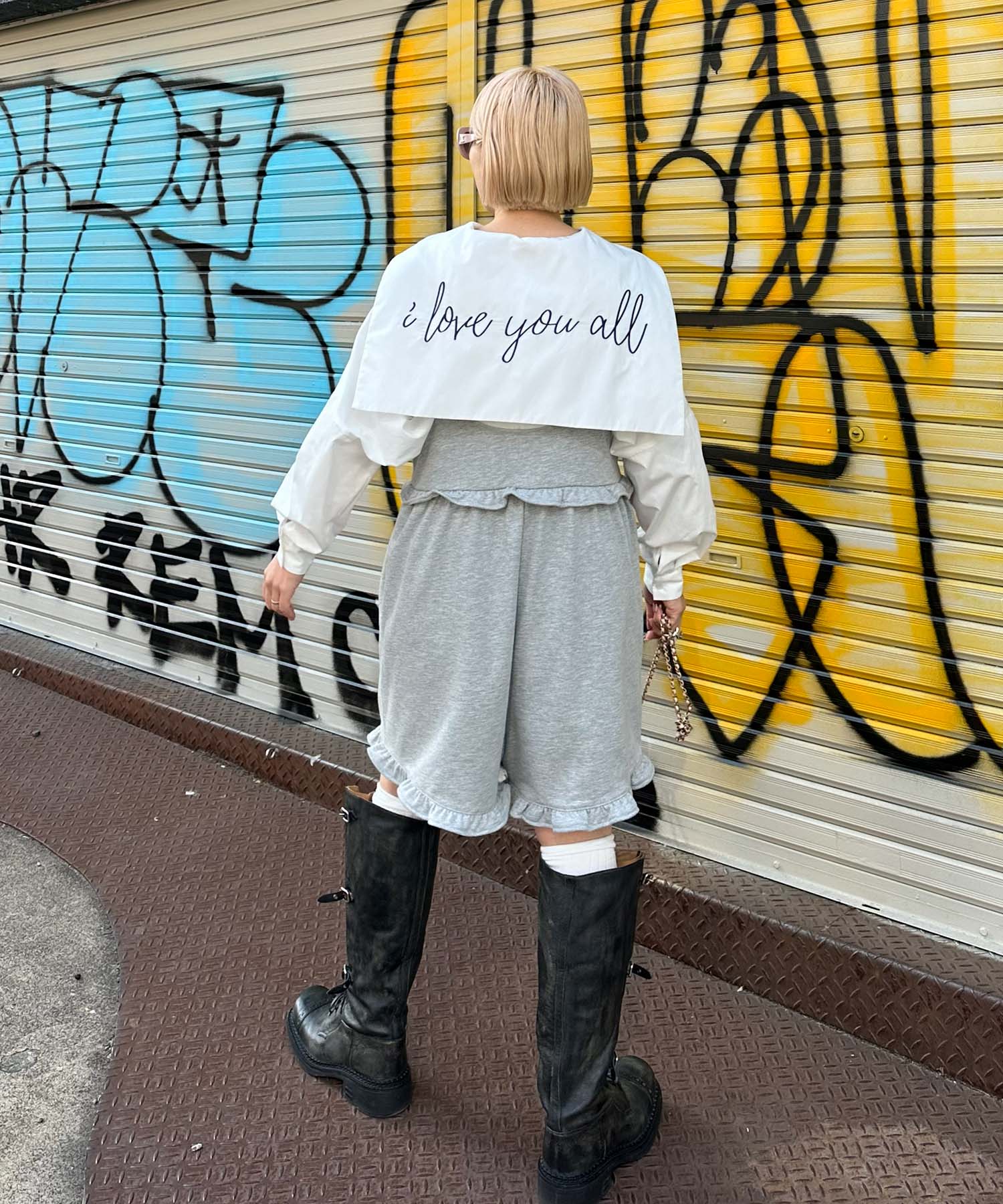 ・大きめのセーラー衿に施されたメッセージロゴが可愛く、後ろ姿まで抜かりなし