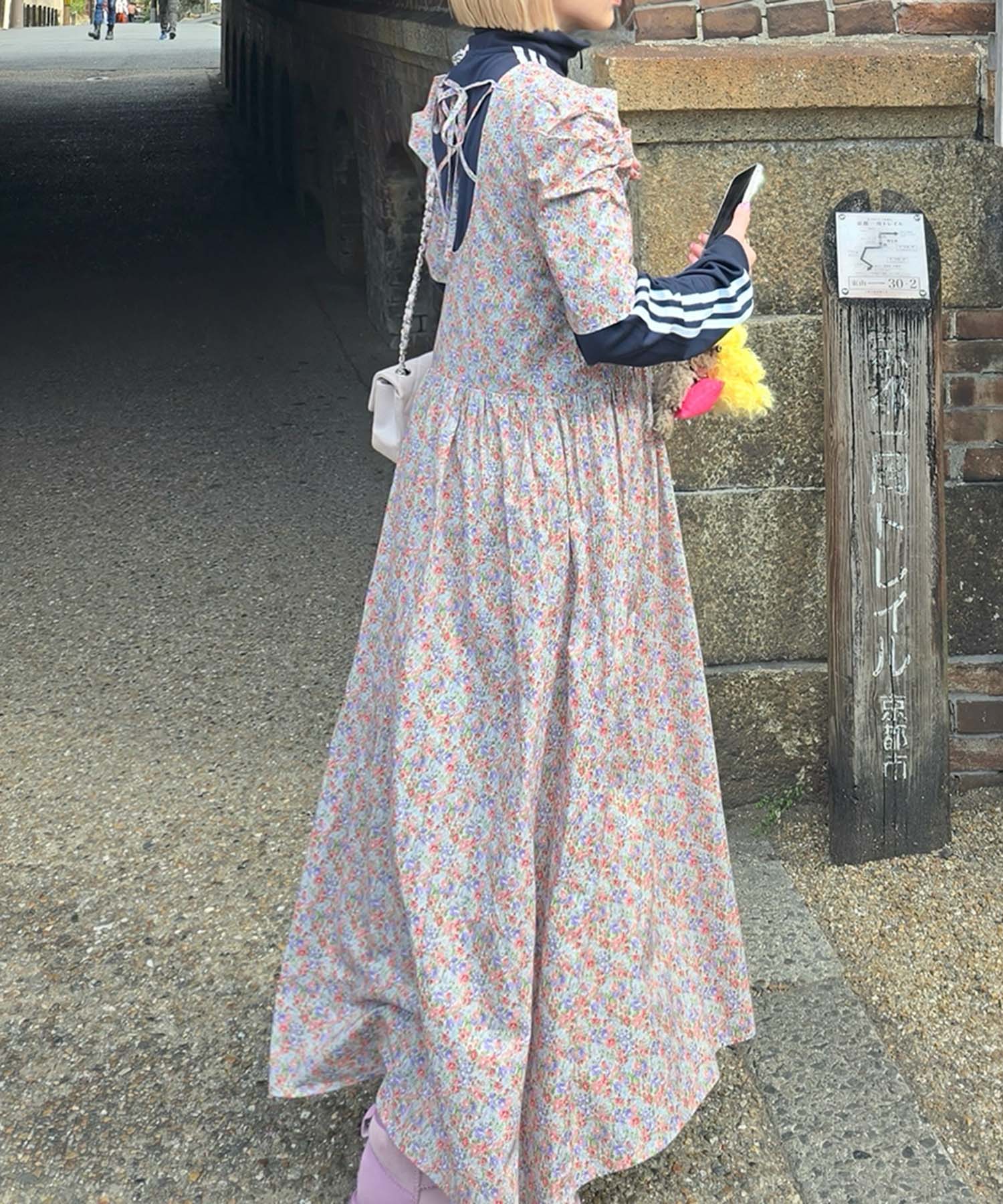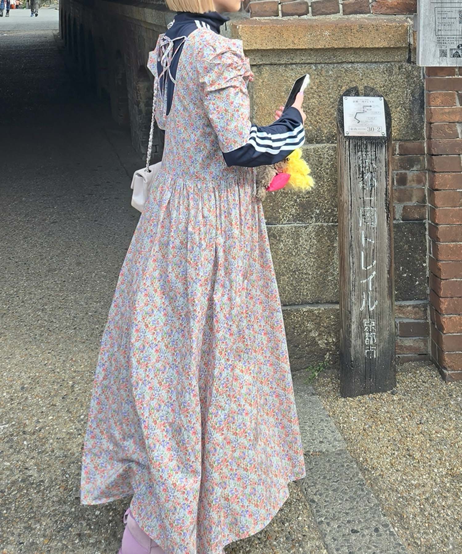 古着っぽワンピ【サックスブルー】