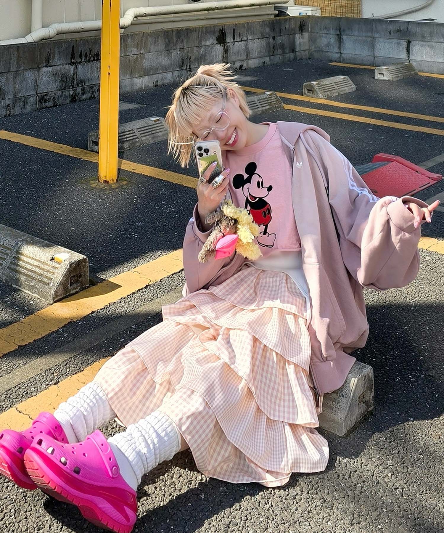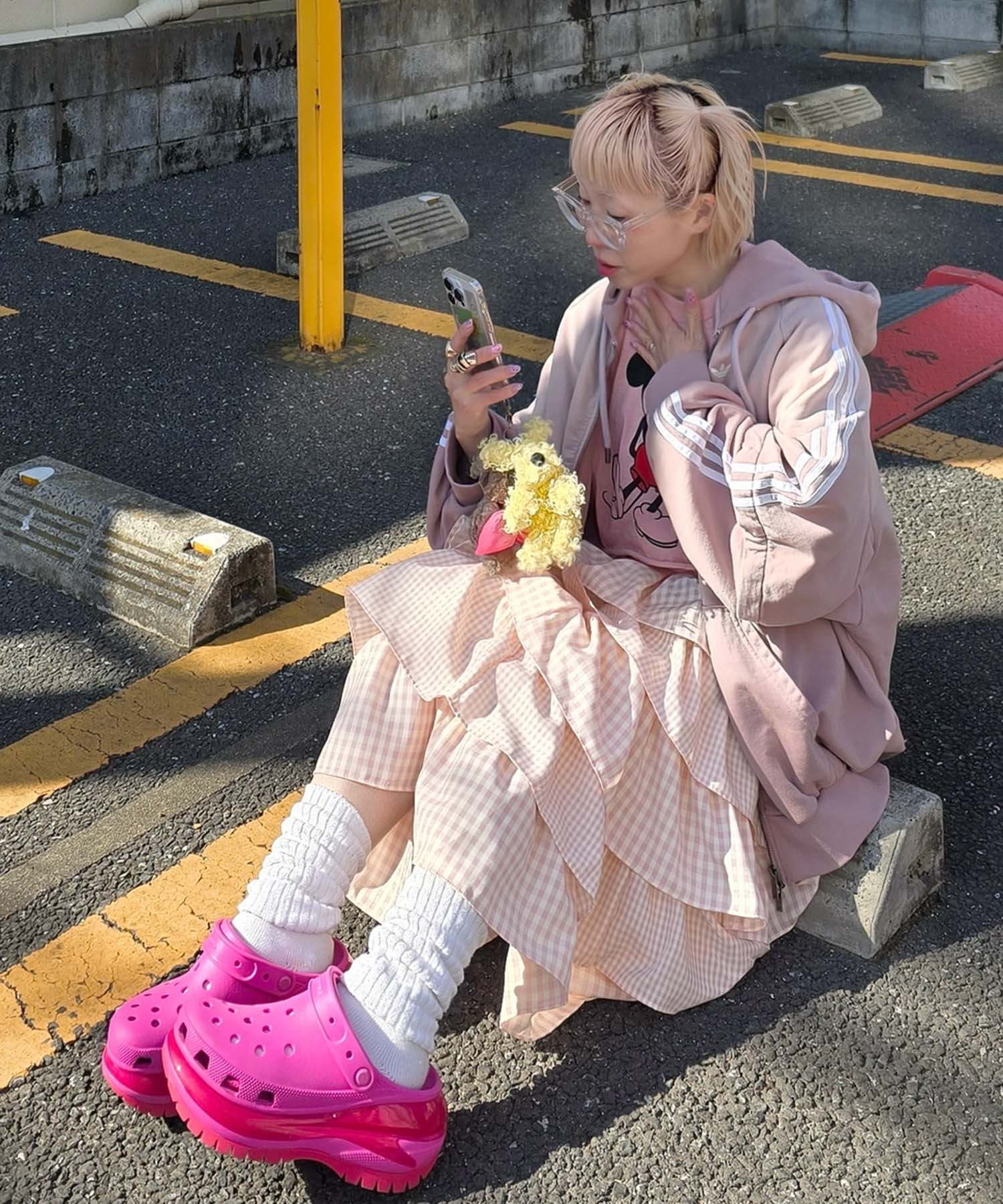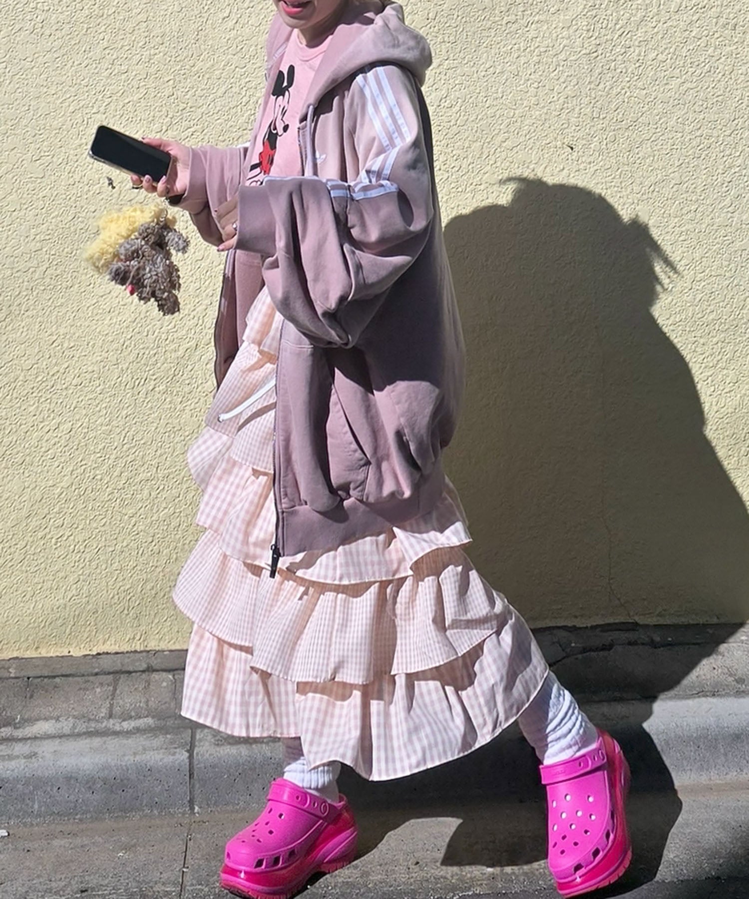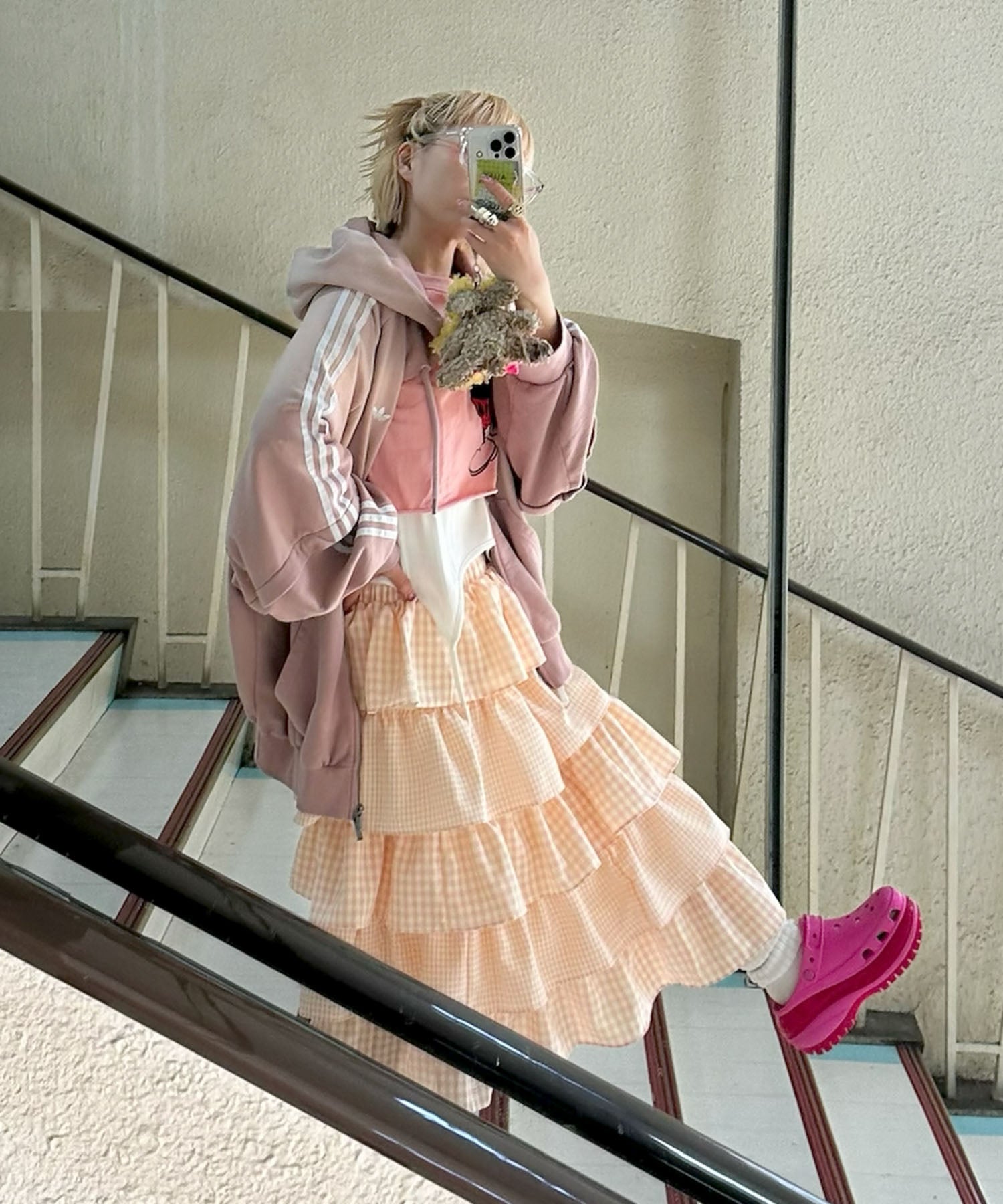 ・女子っぽいスカートは、ジャージやカジュアルなアイテムと合わせるのが鉄板