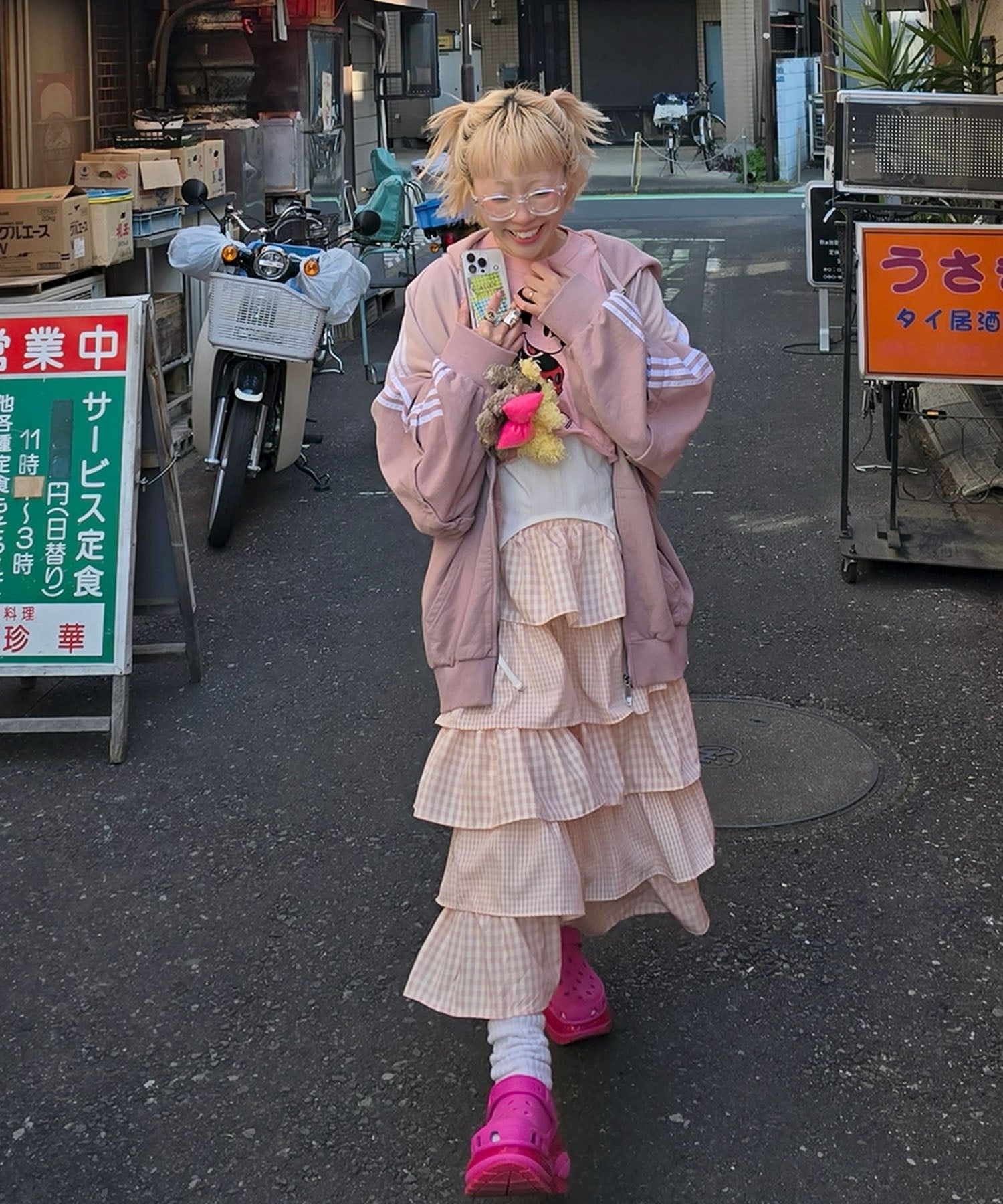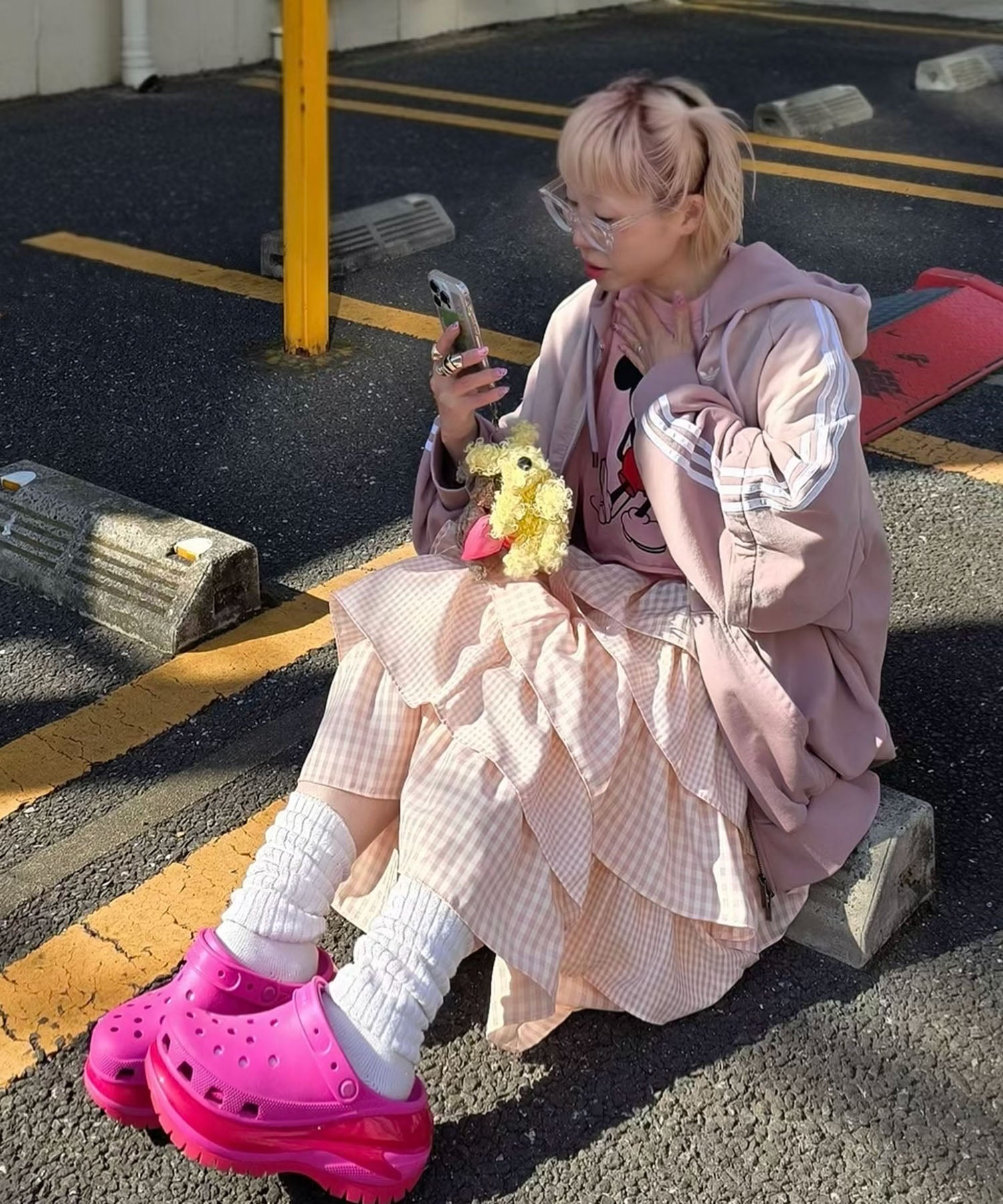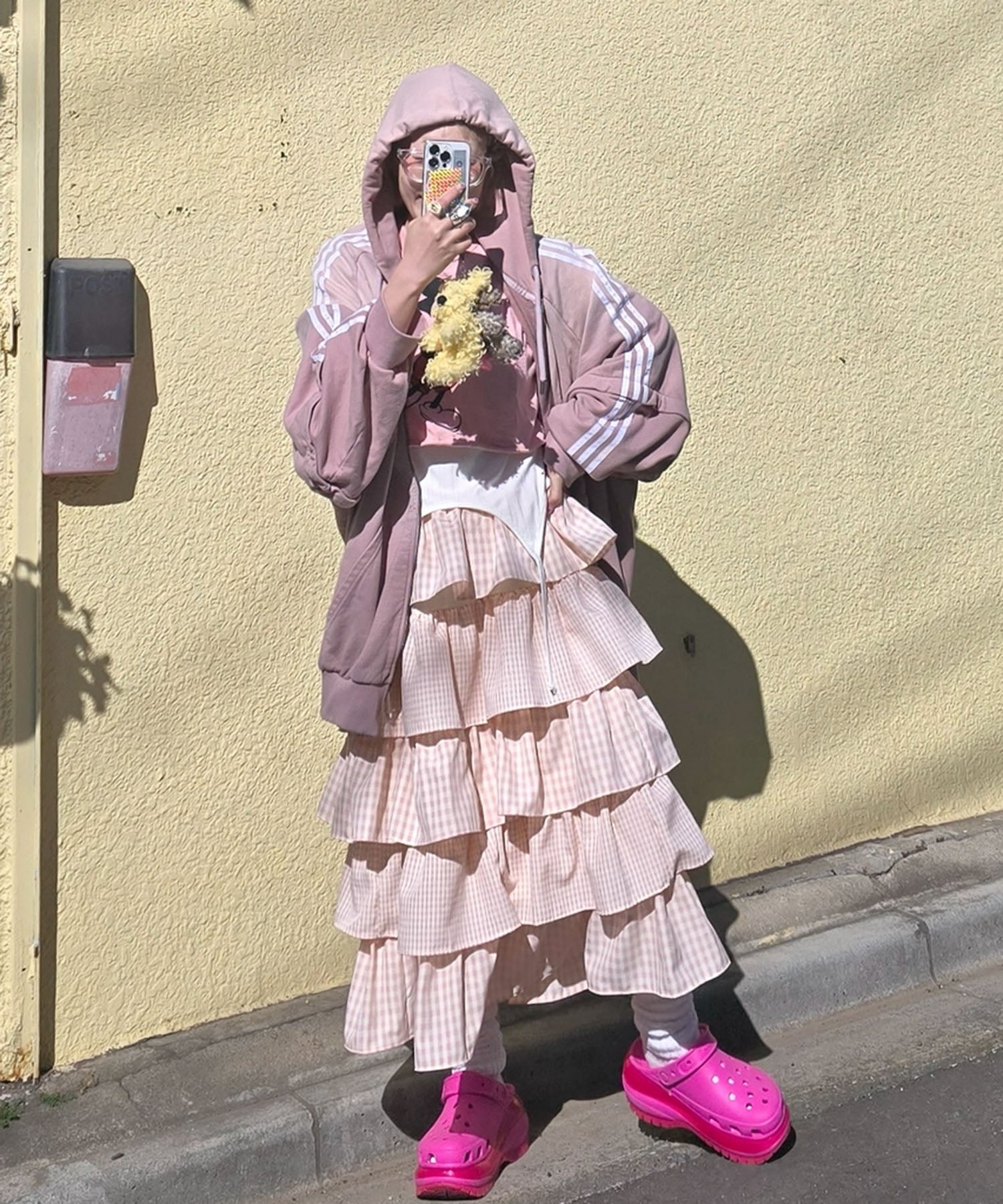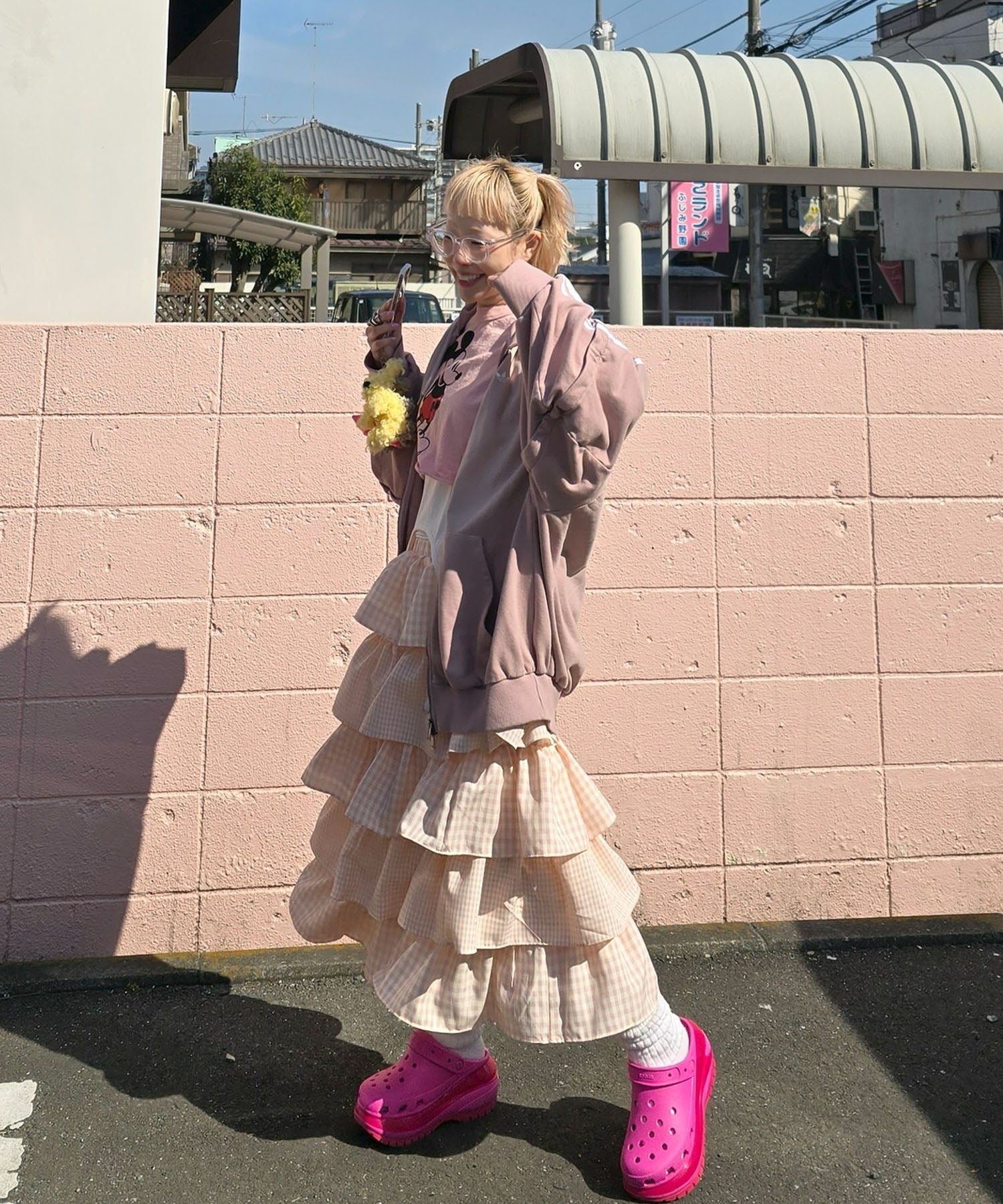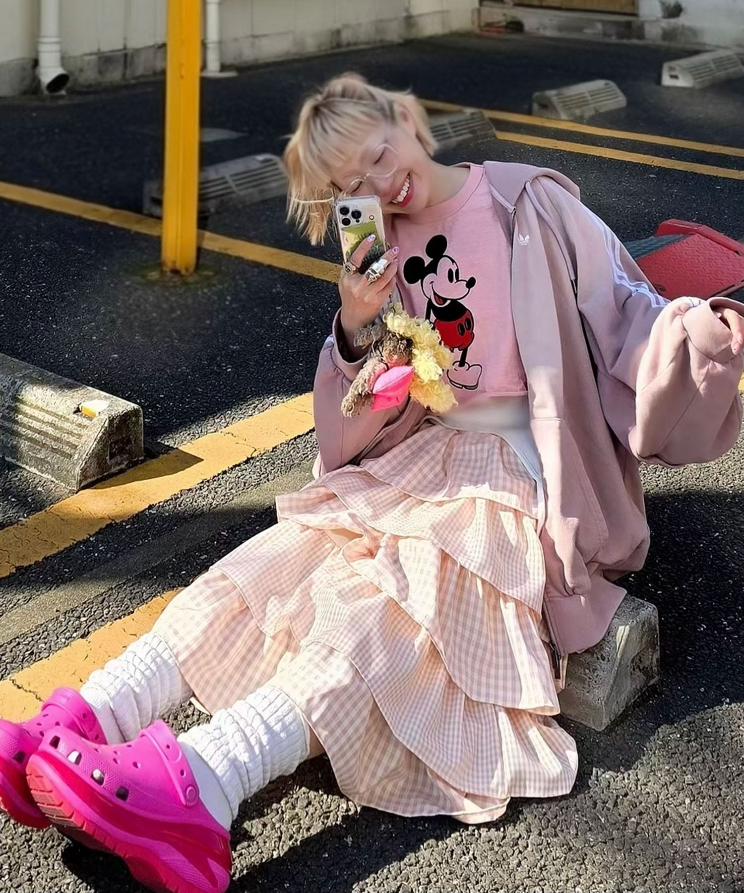 ・女子っぽいスカートは、ジャージやカジュアルなアイテムと合わせるのが鉄板