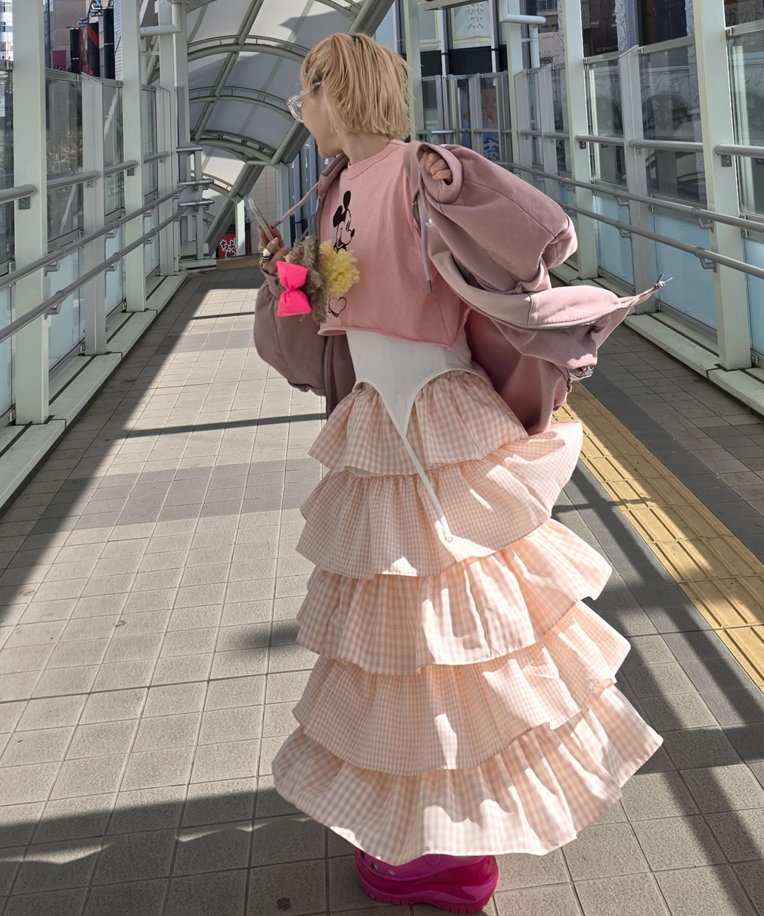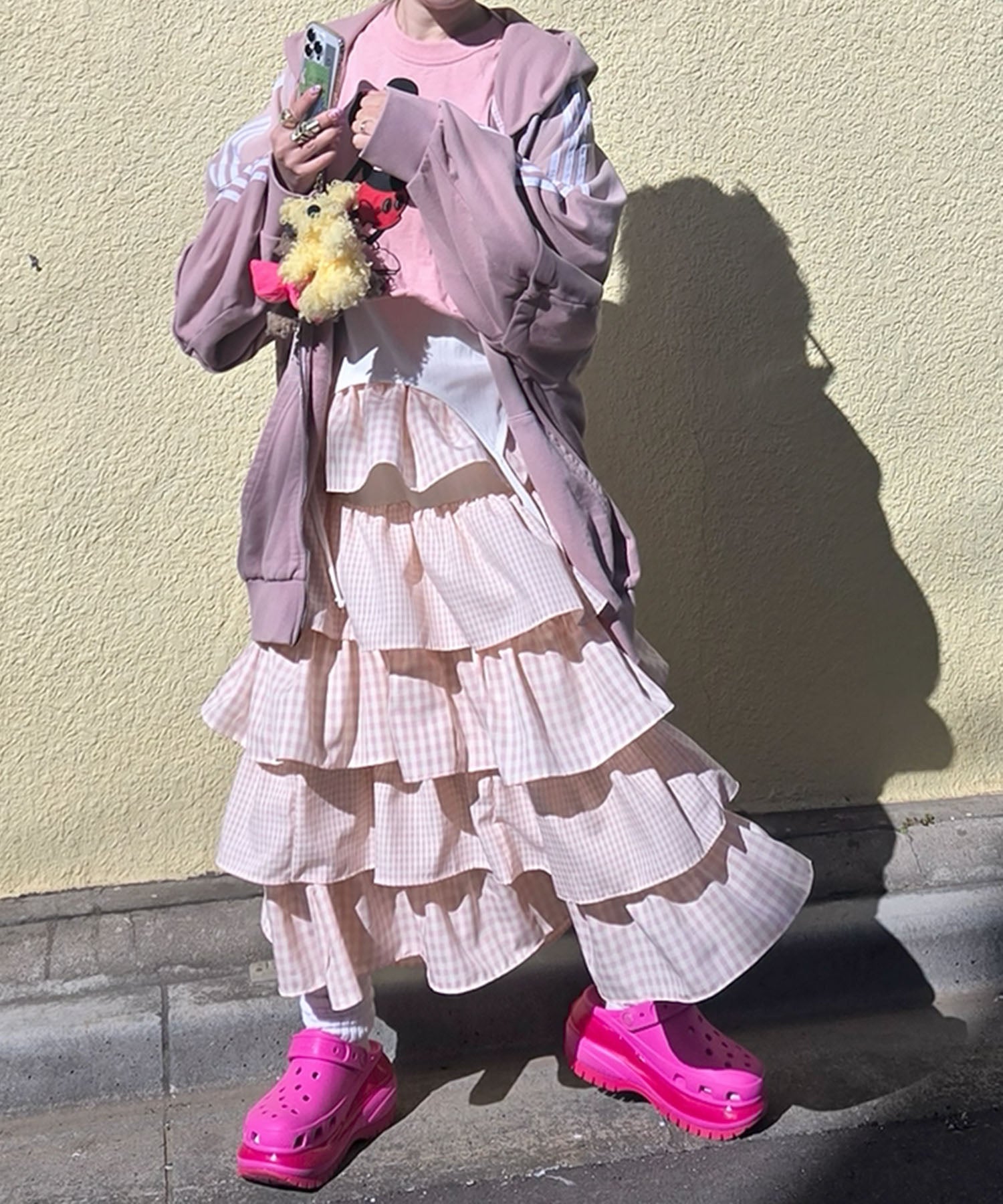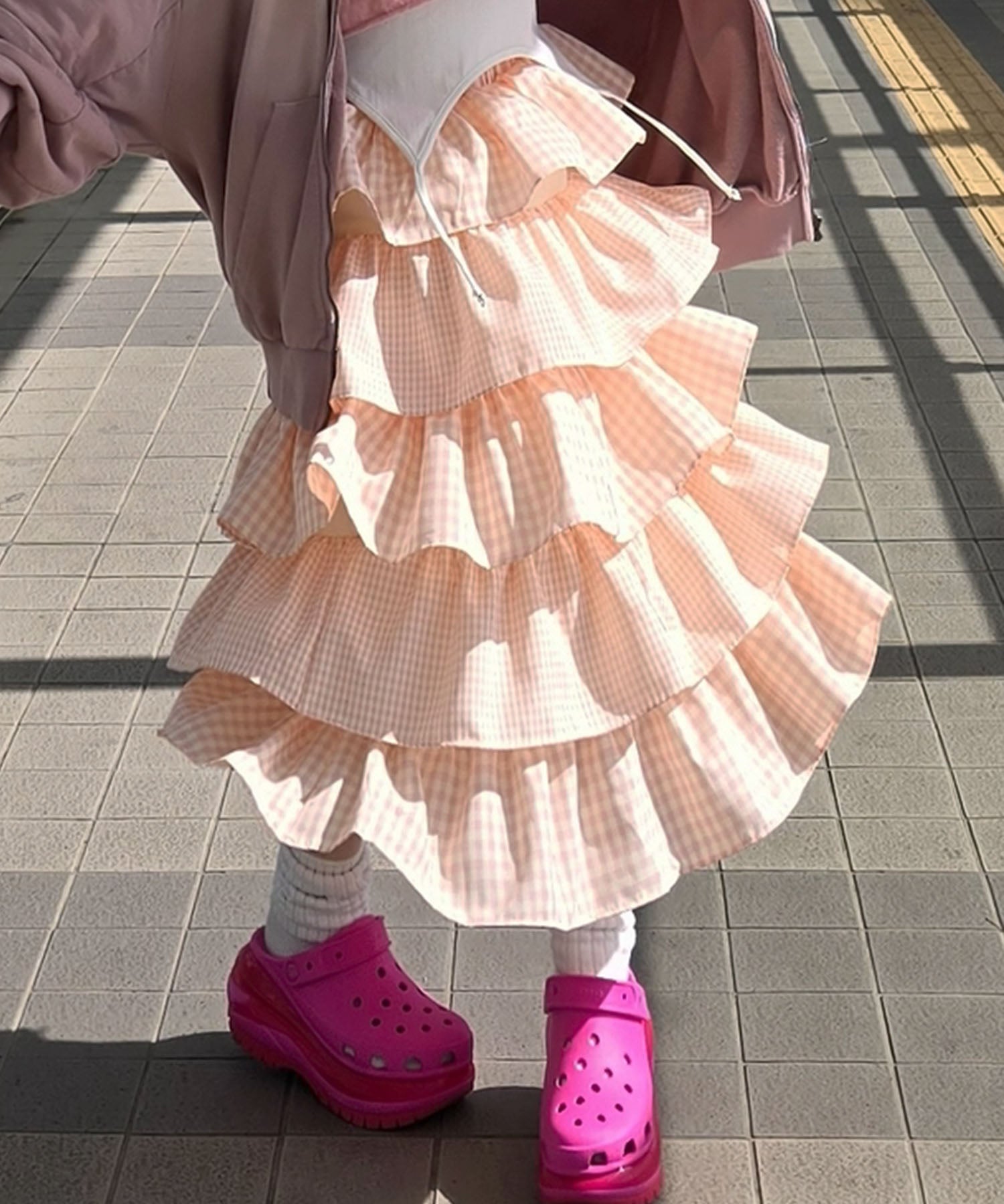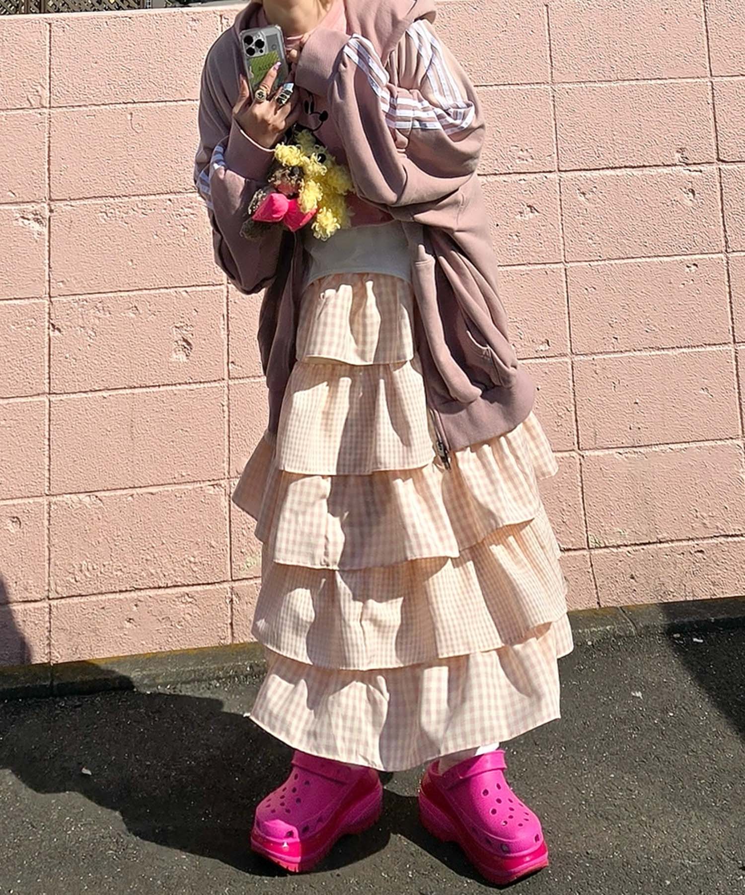ティアードギンガムボリュームスカート【ピンク】