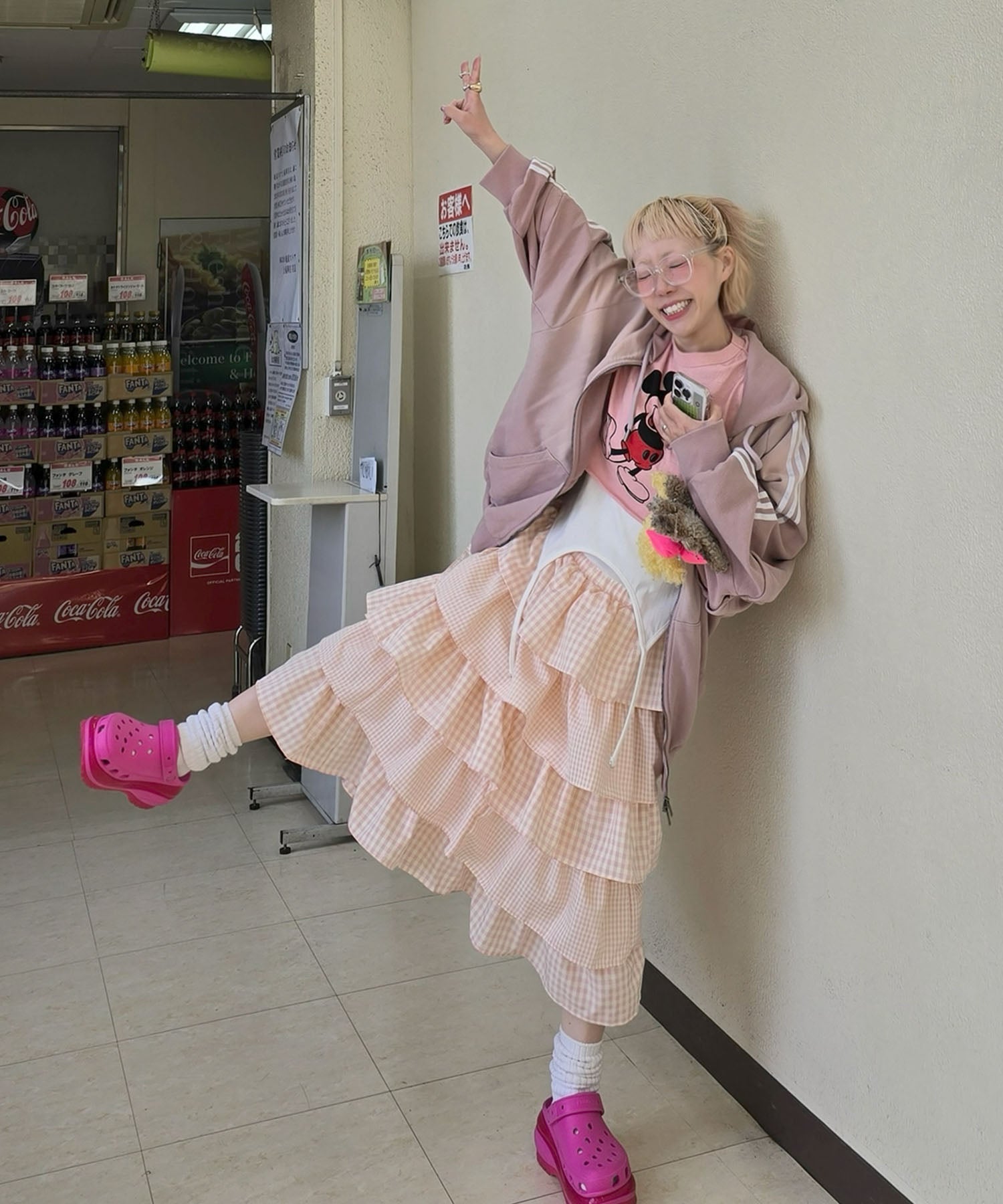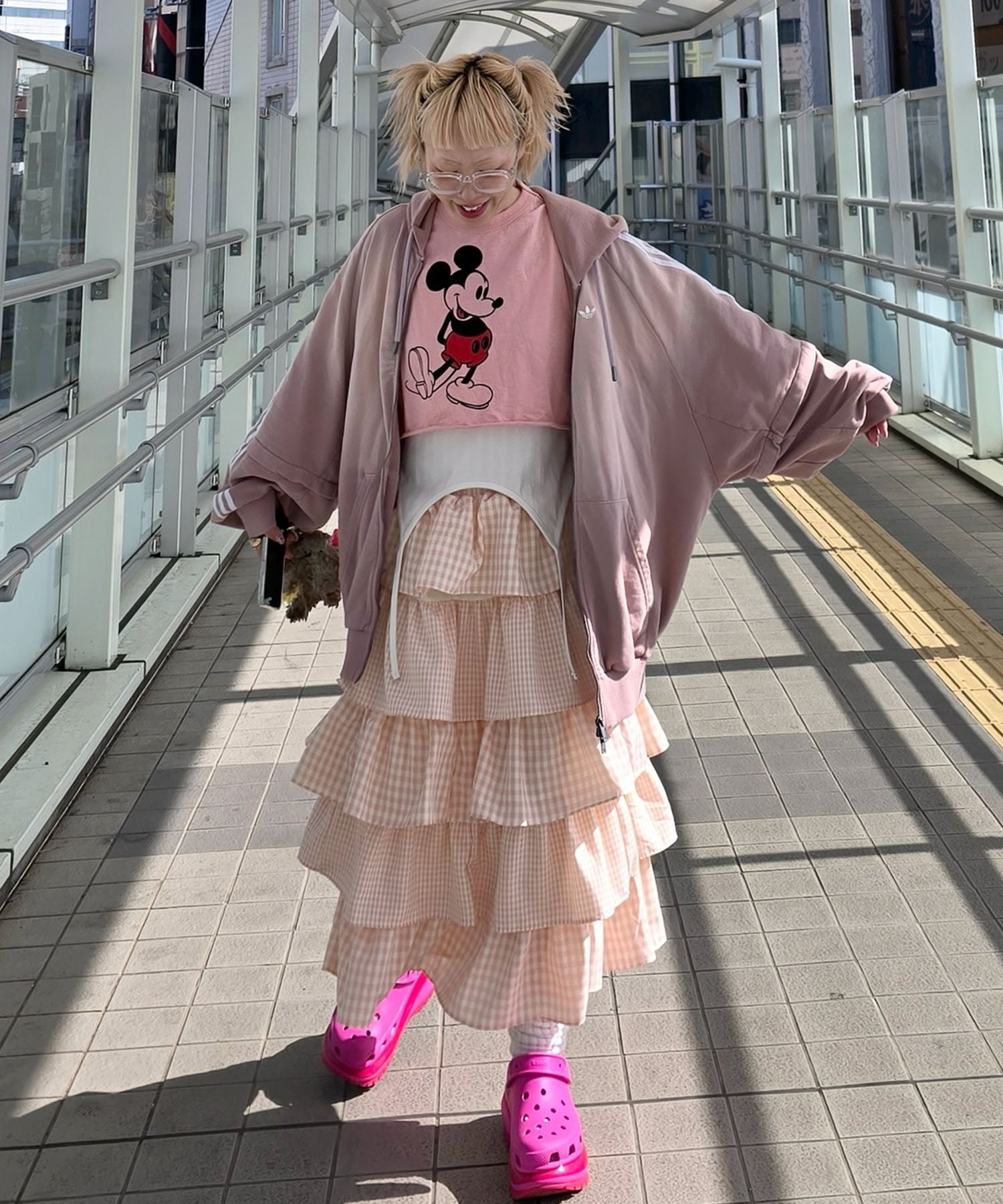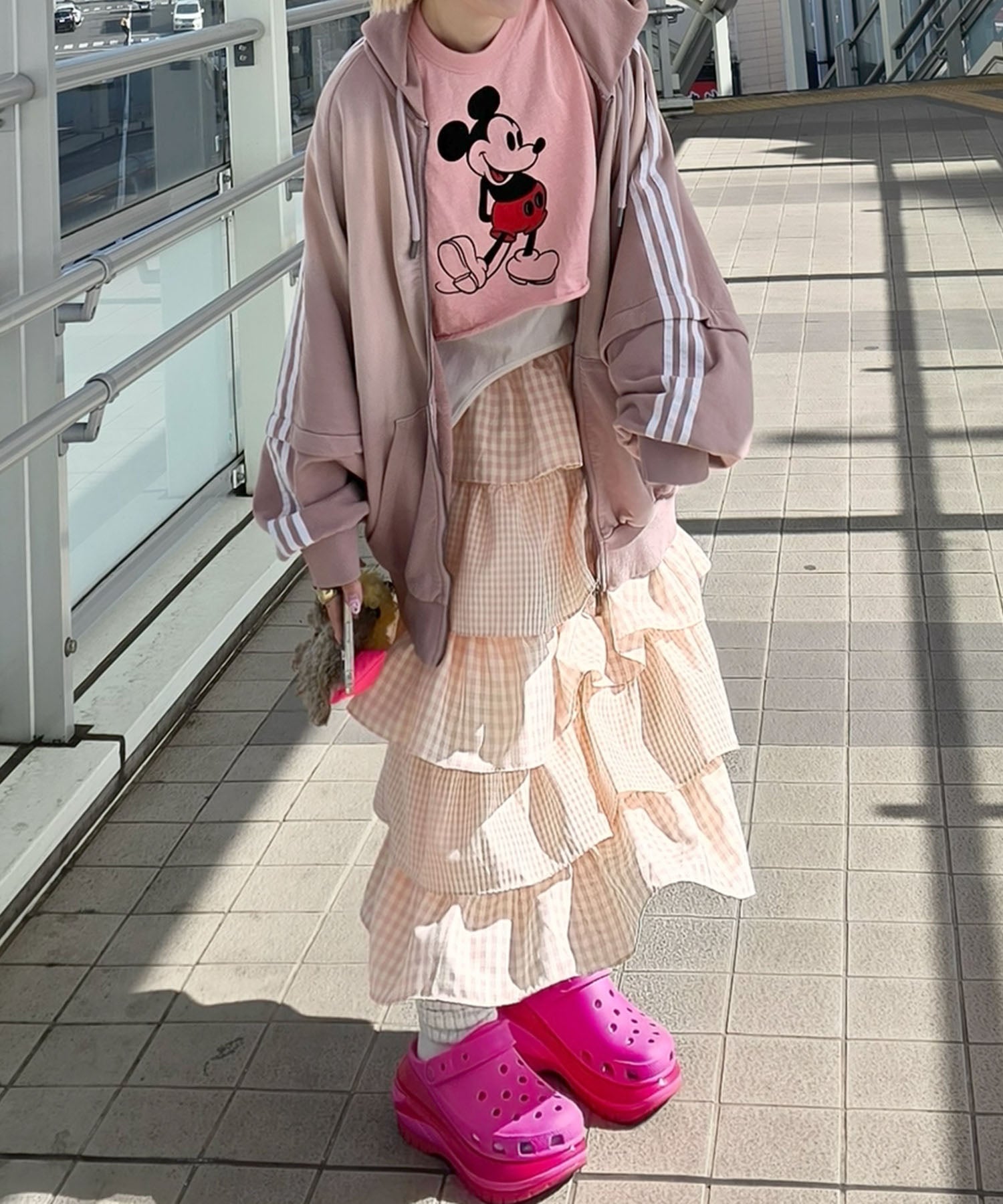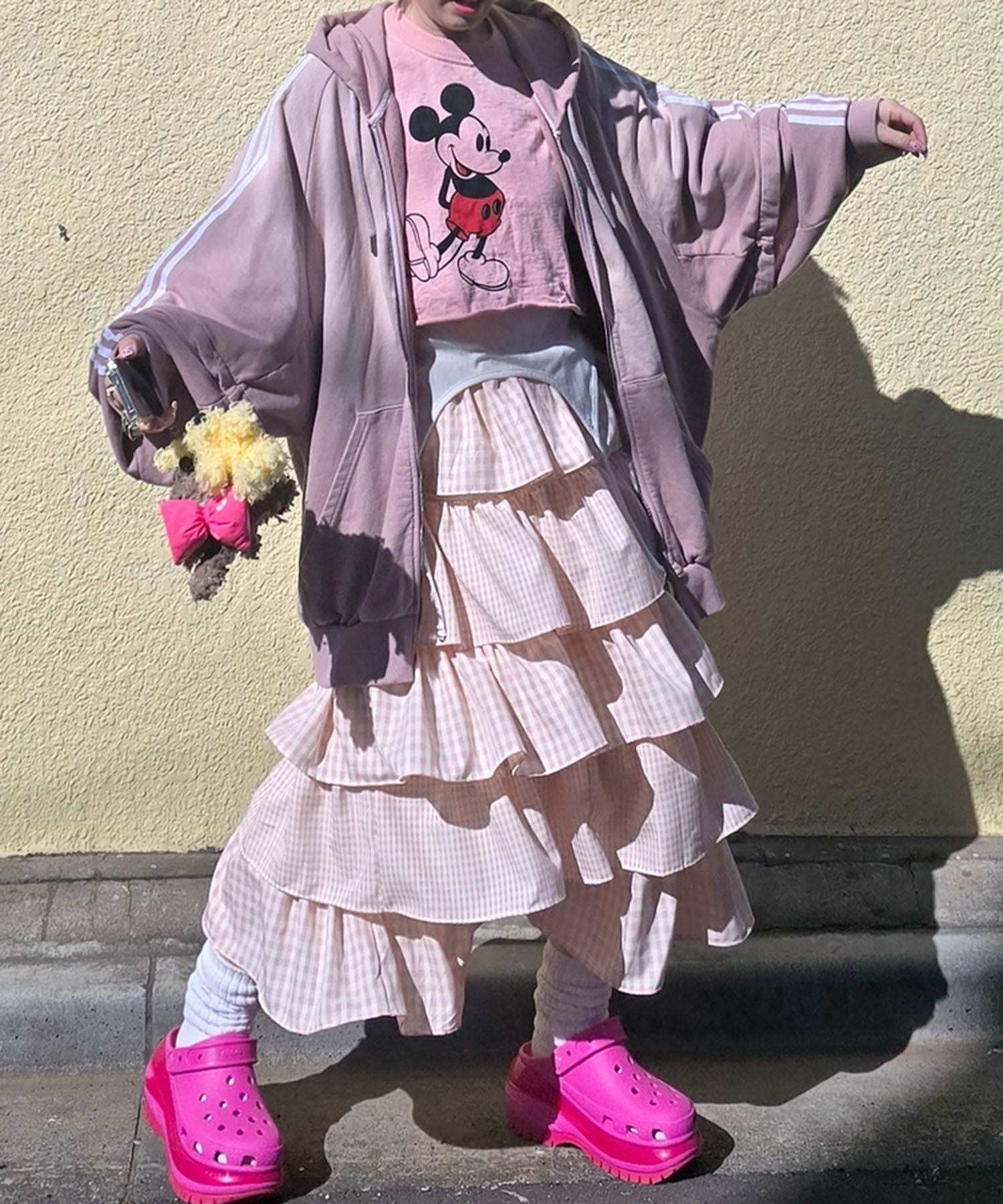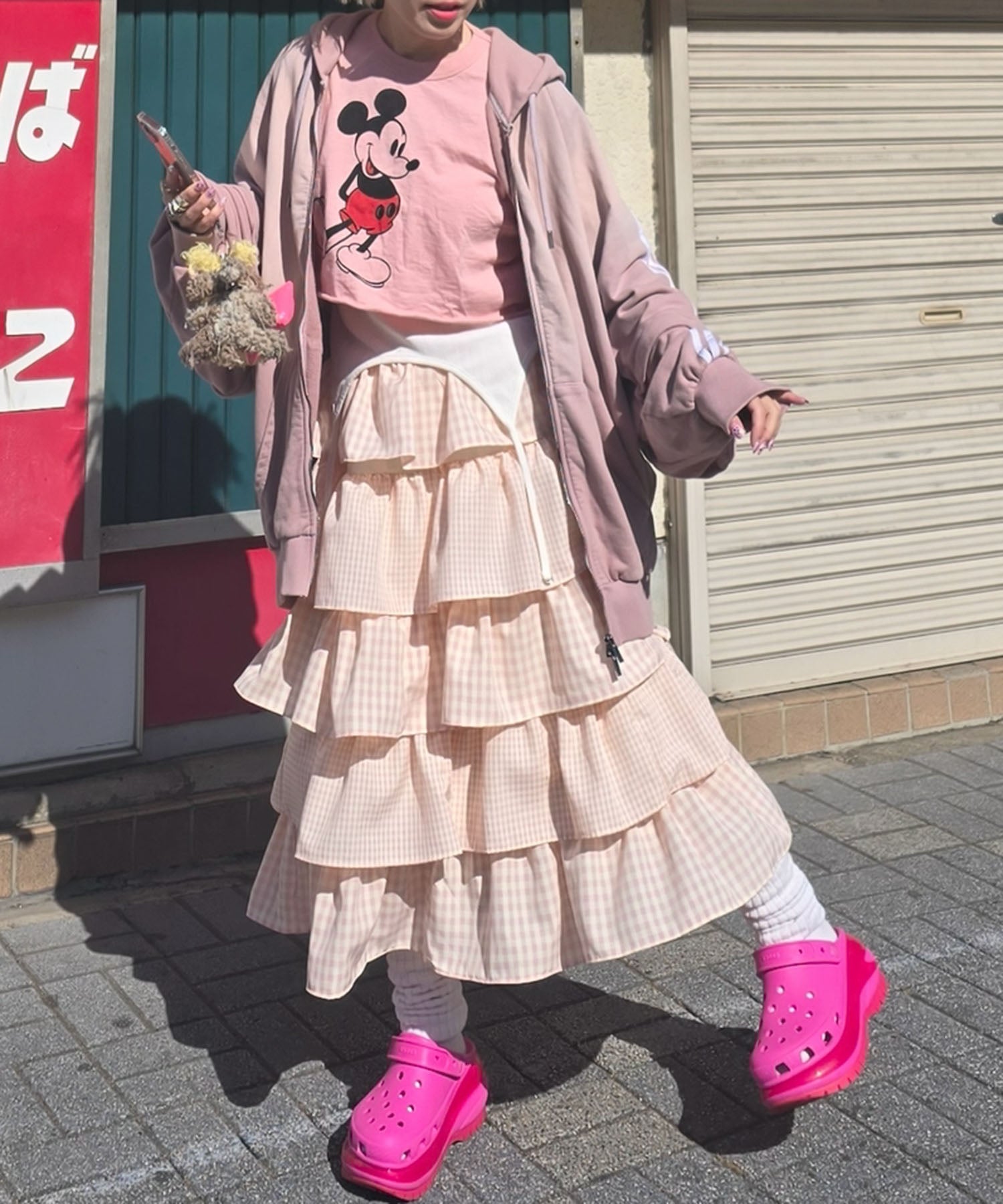 ティアードギンガムボリュームスカート【ピンク】