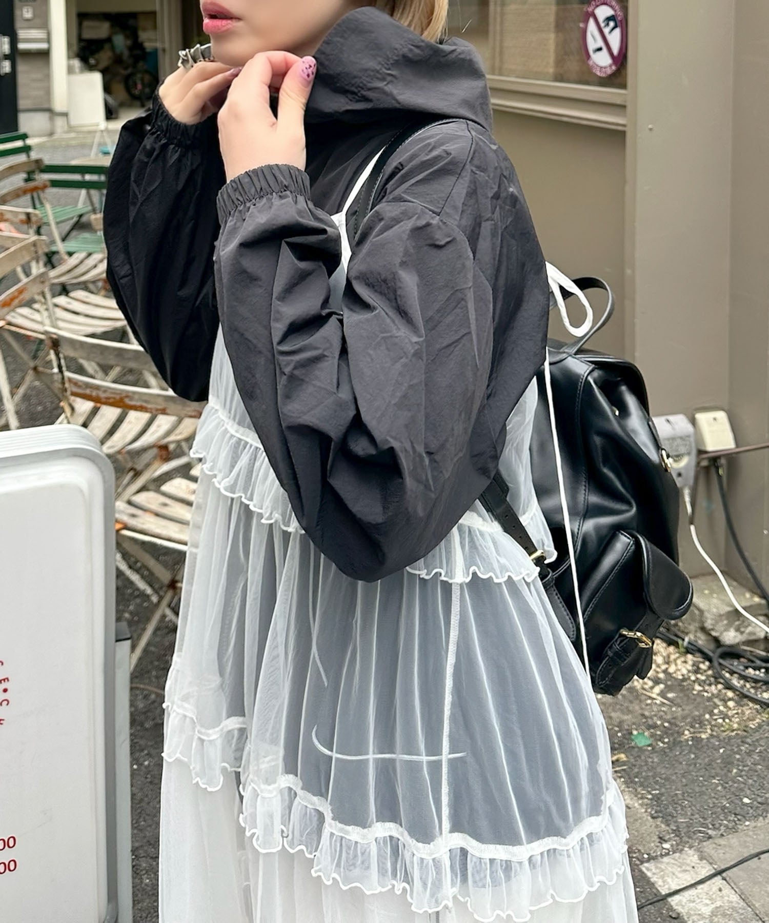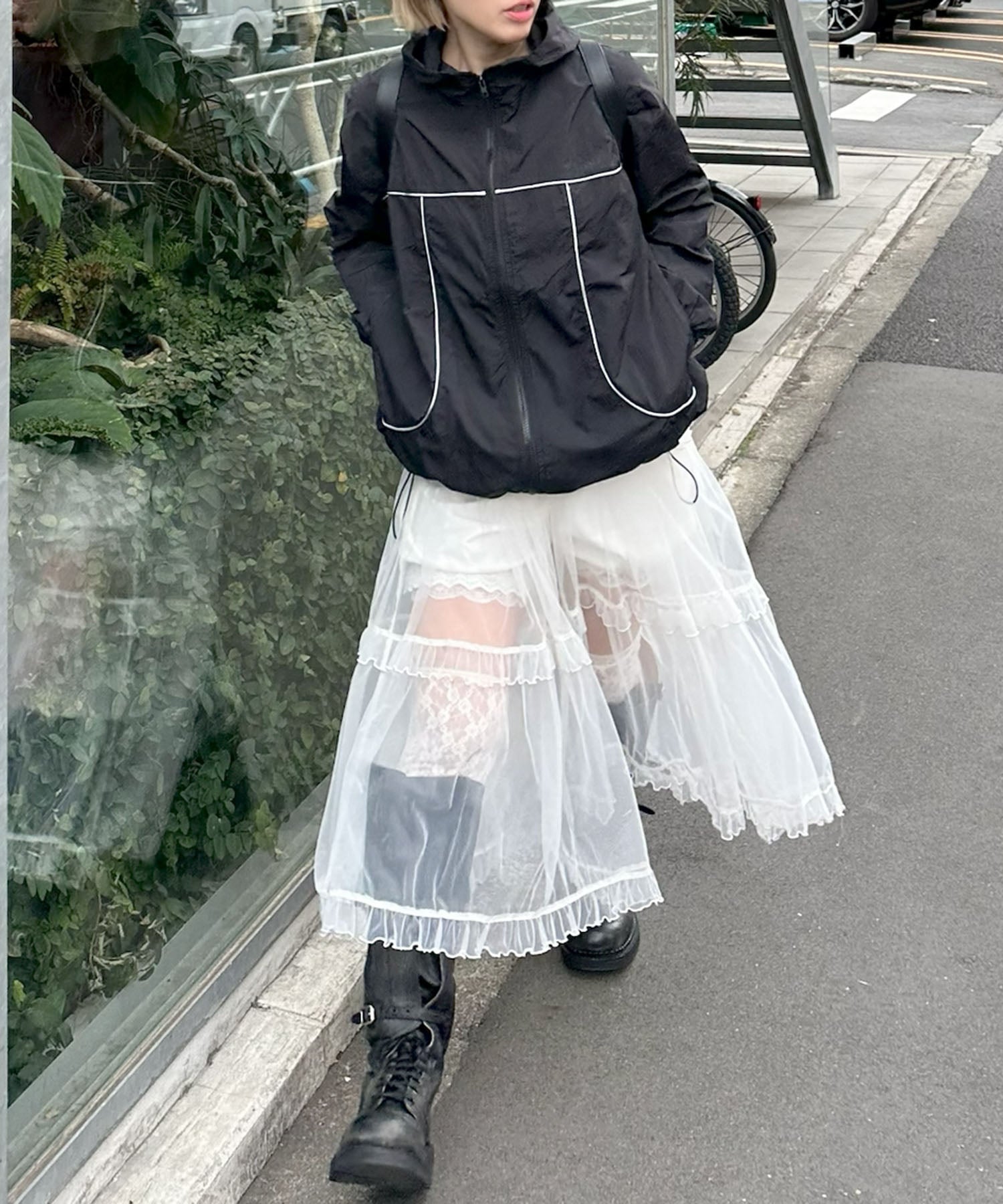 ・カジュアルなブルゾンは、ミニボトムや女子っぽアイテムとの合わせがかわいい
