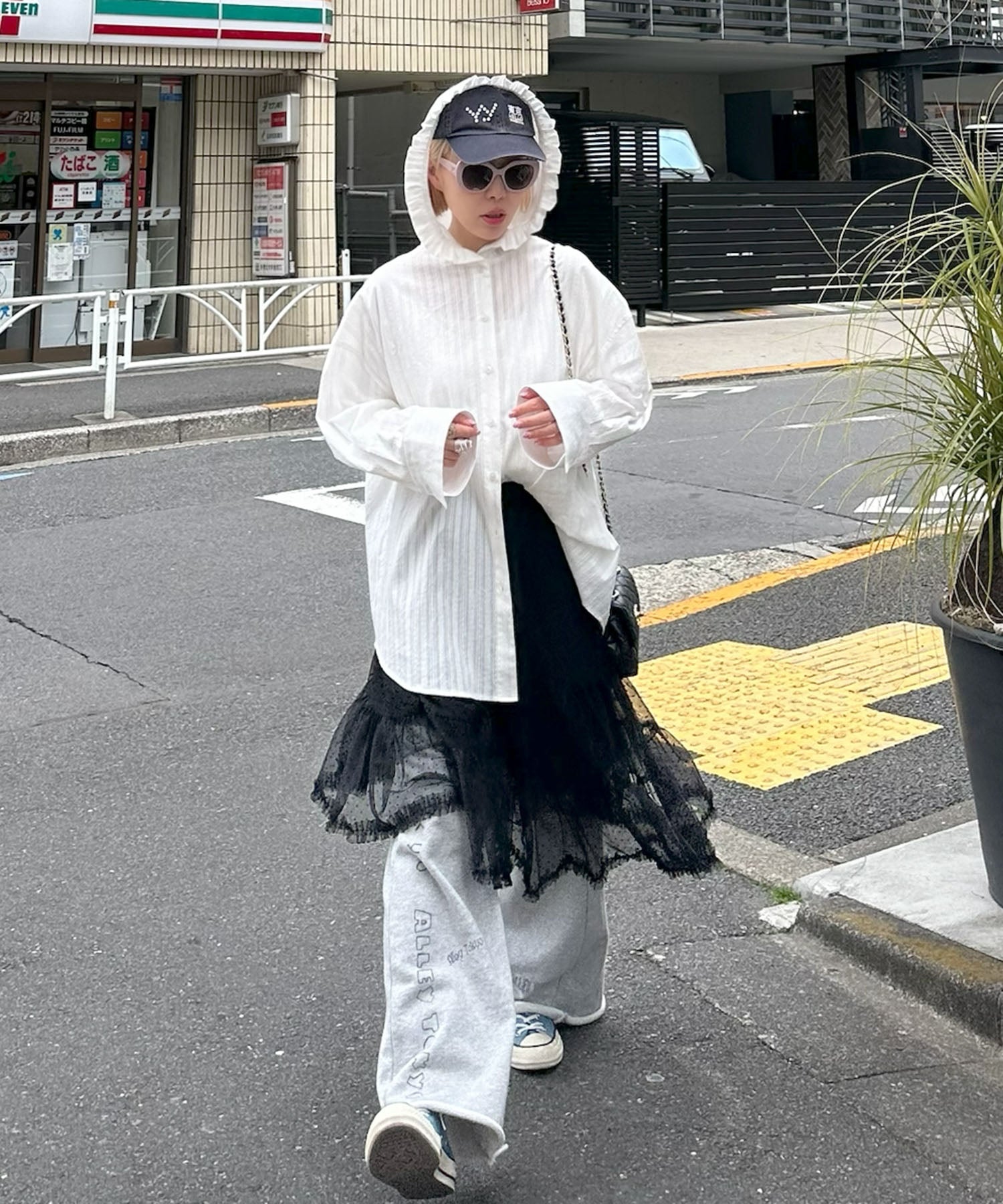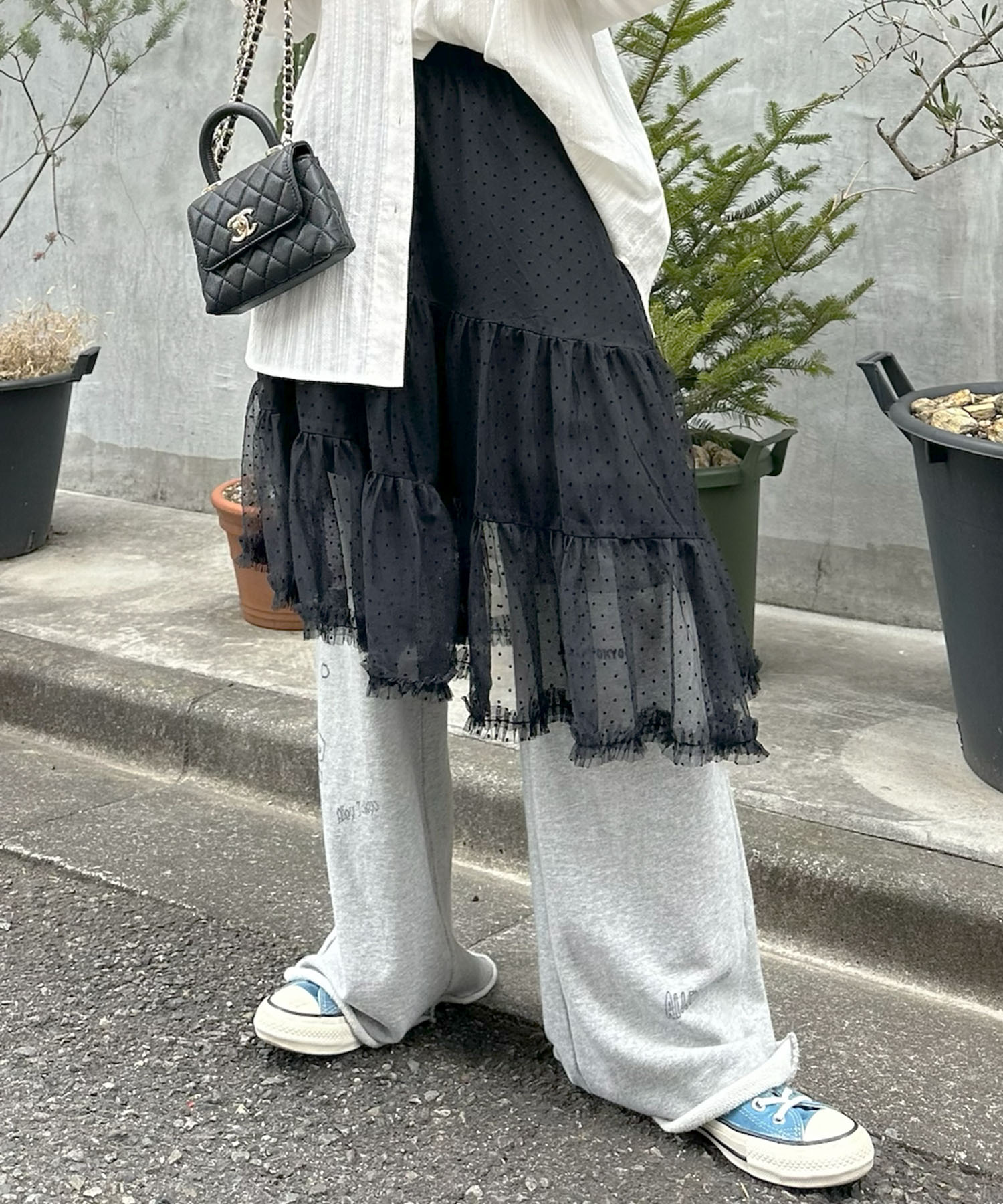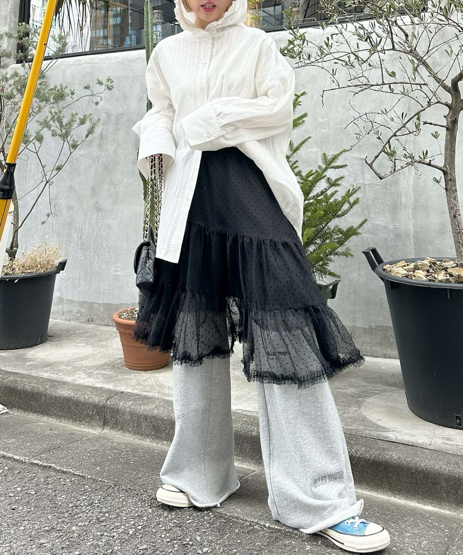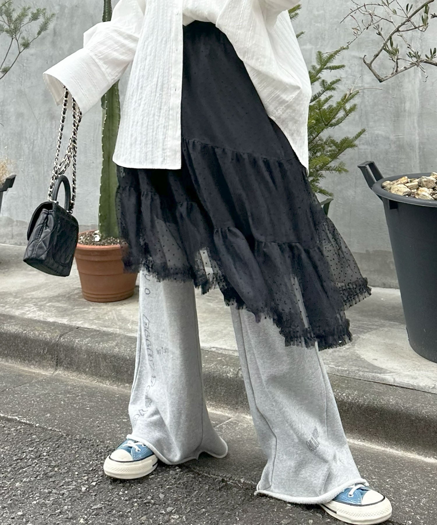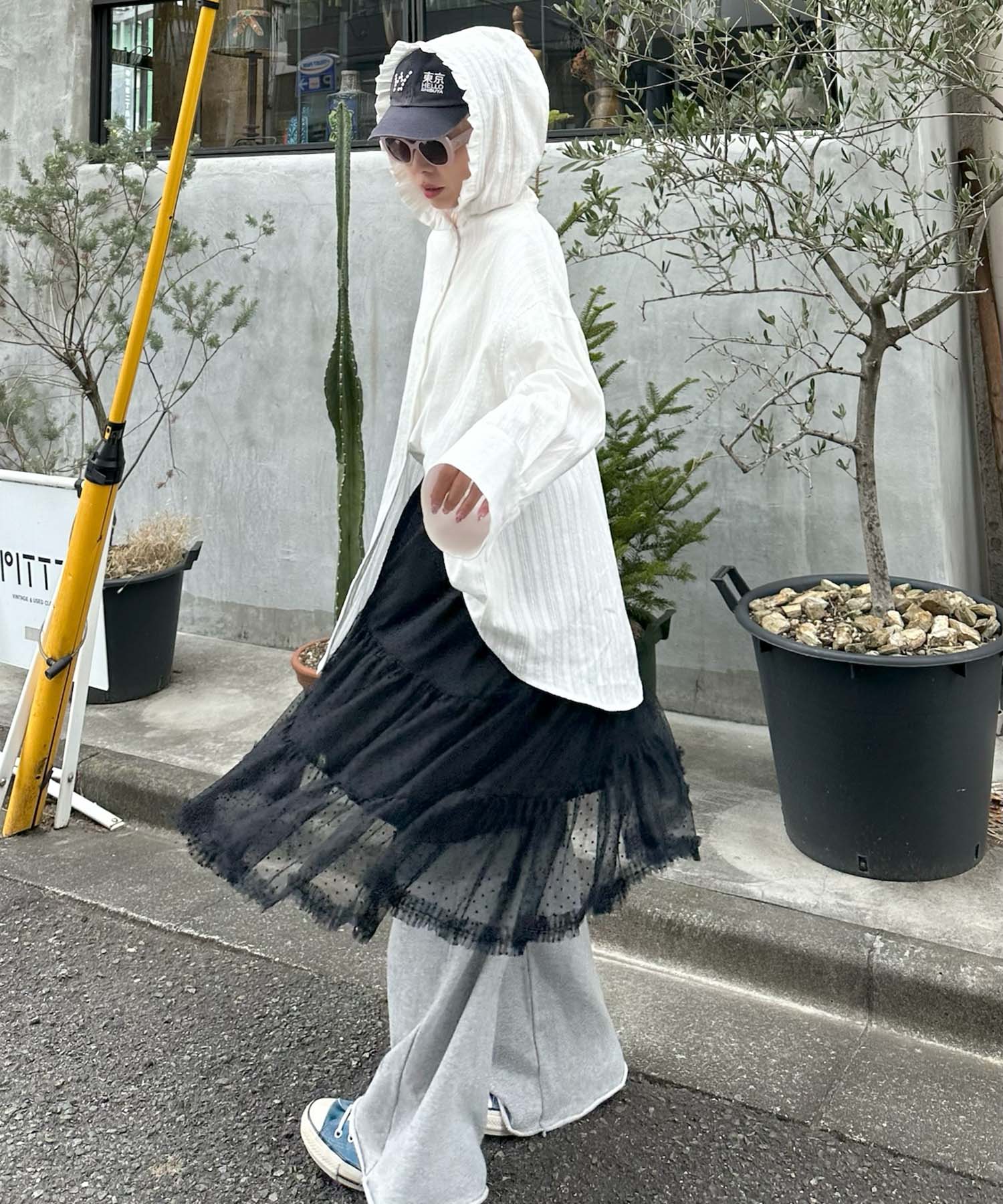 ・アシメになった裾が歩くたびにふんわり揺れるチュールスカート