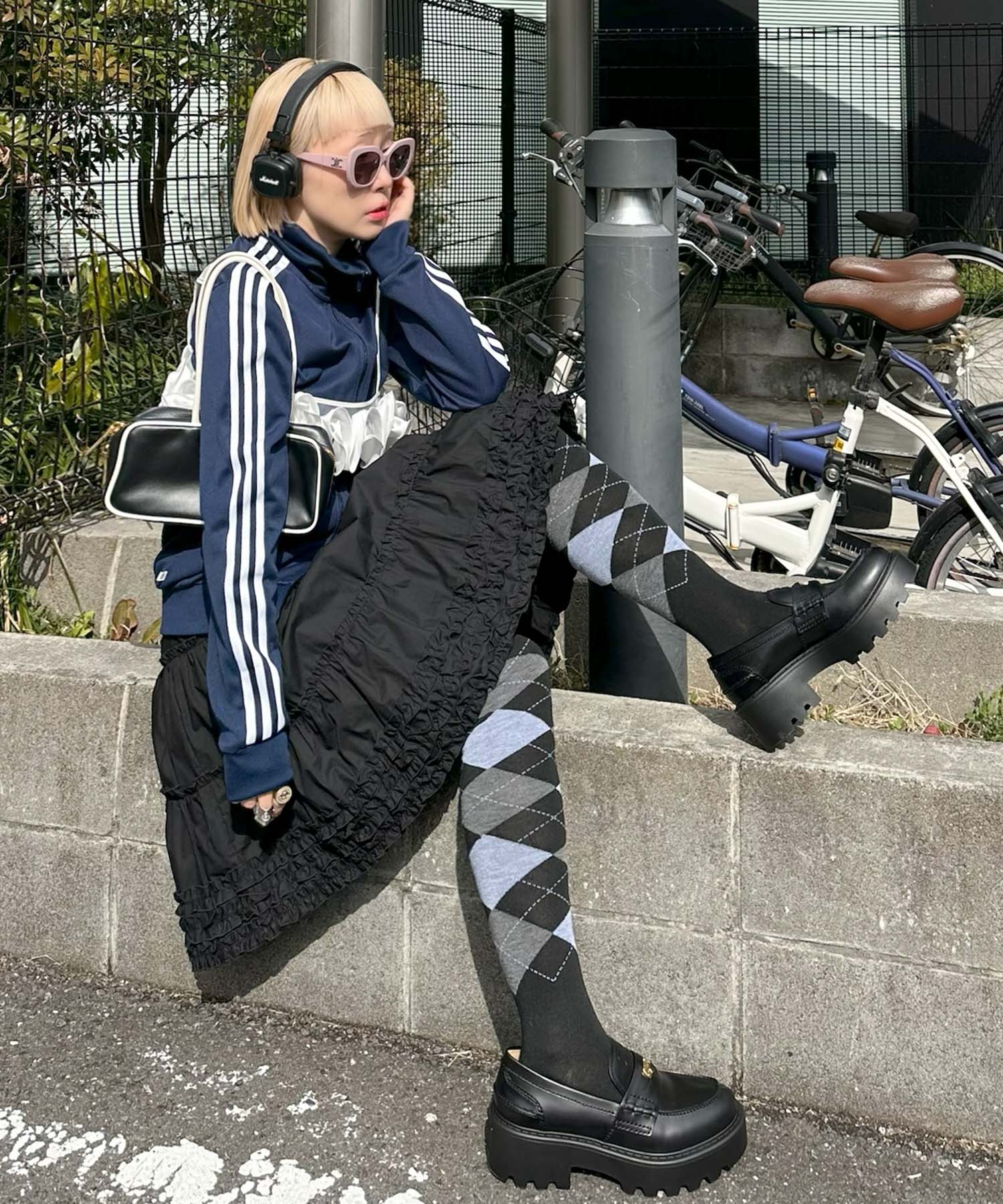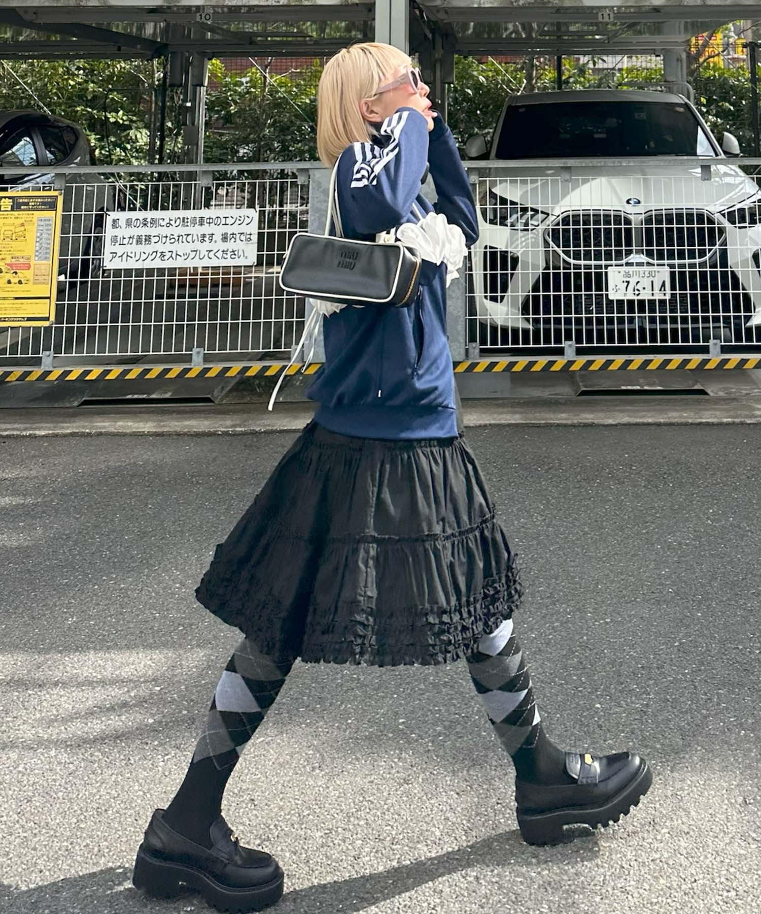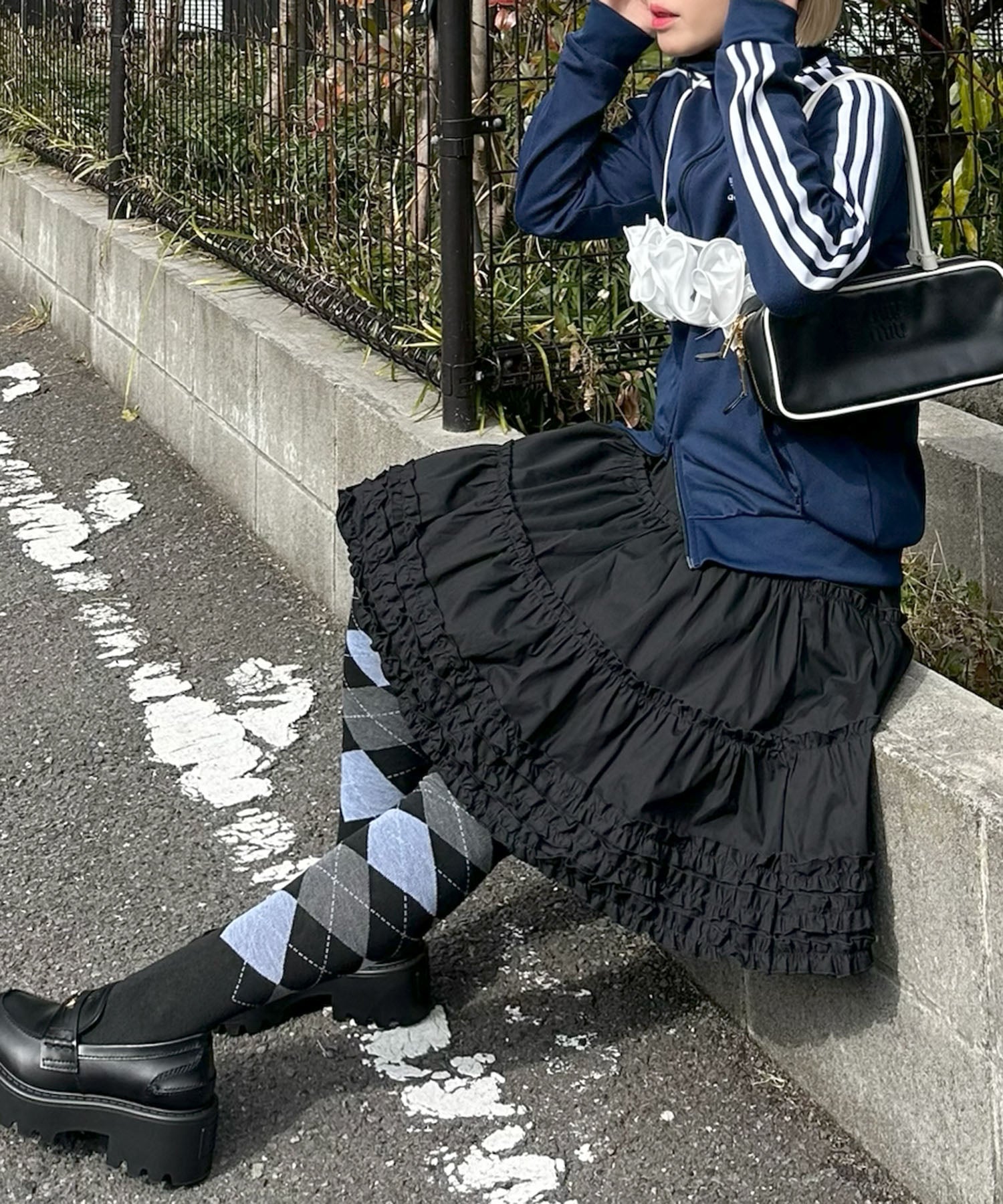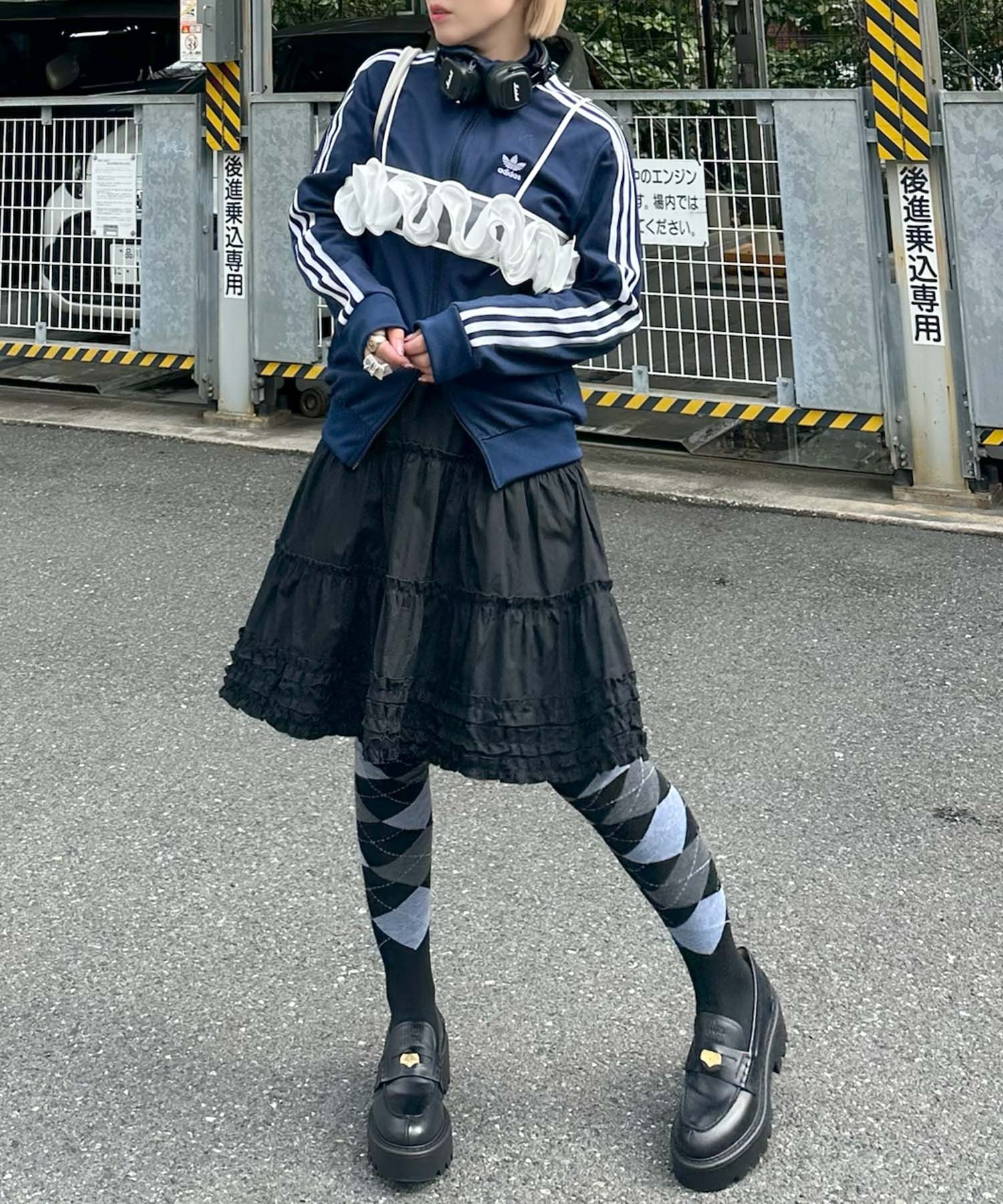 ・女子っぽいコットンスカートは、ジャージなどカジュアルなアイテムと合わせるのが鉄板
