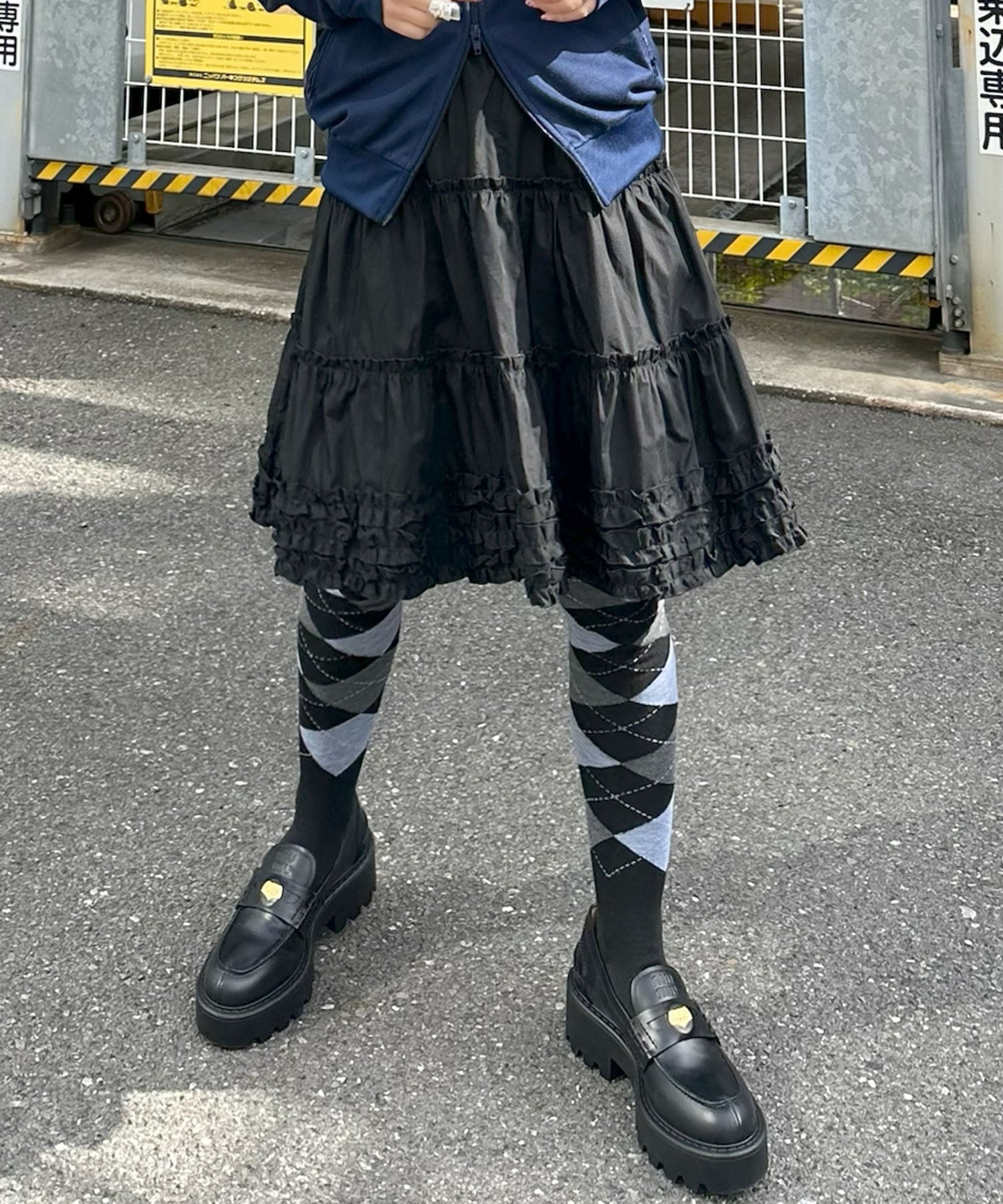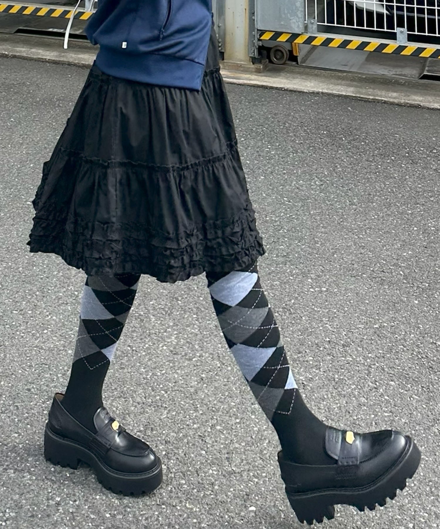 ・ひざ丈なので、ハイソックスとの相性も抜群♩一気にトレンド感がUP