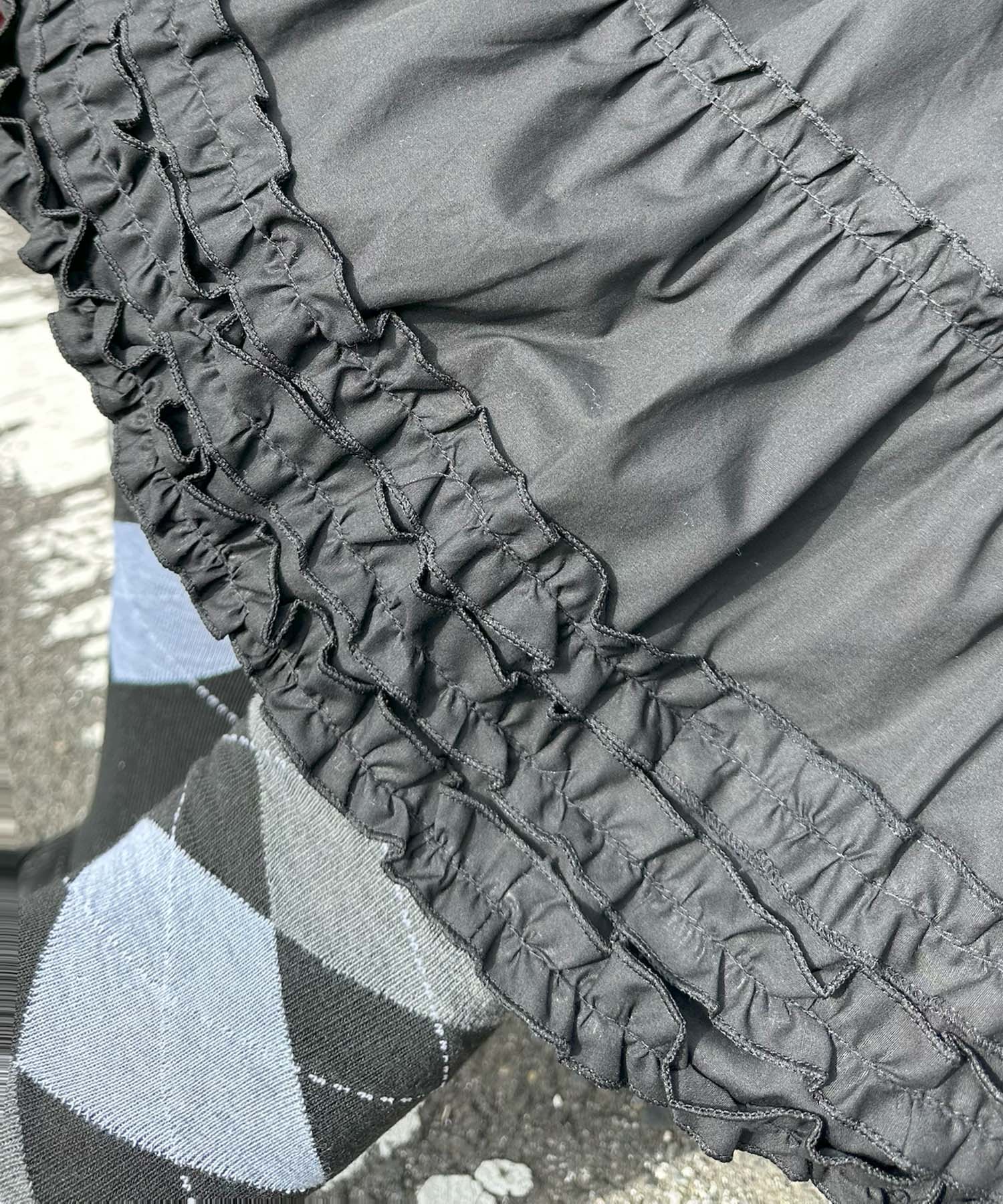 ・ゆったりめのニットと合わせて裾からフリルをチラ見せするのもおすすめです