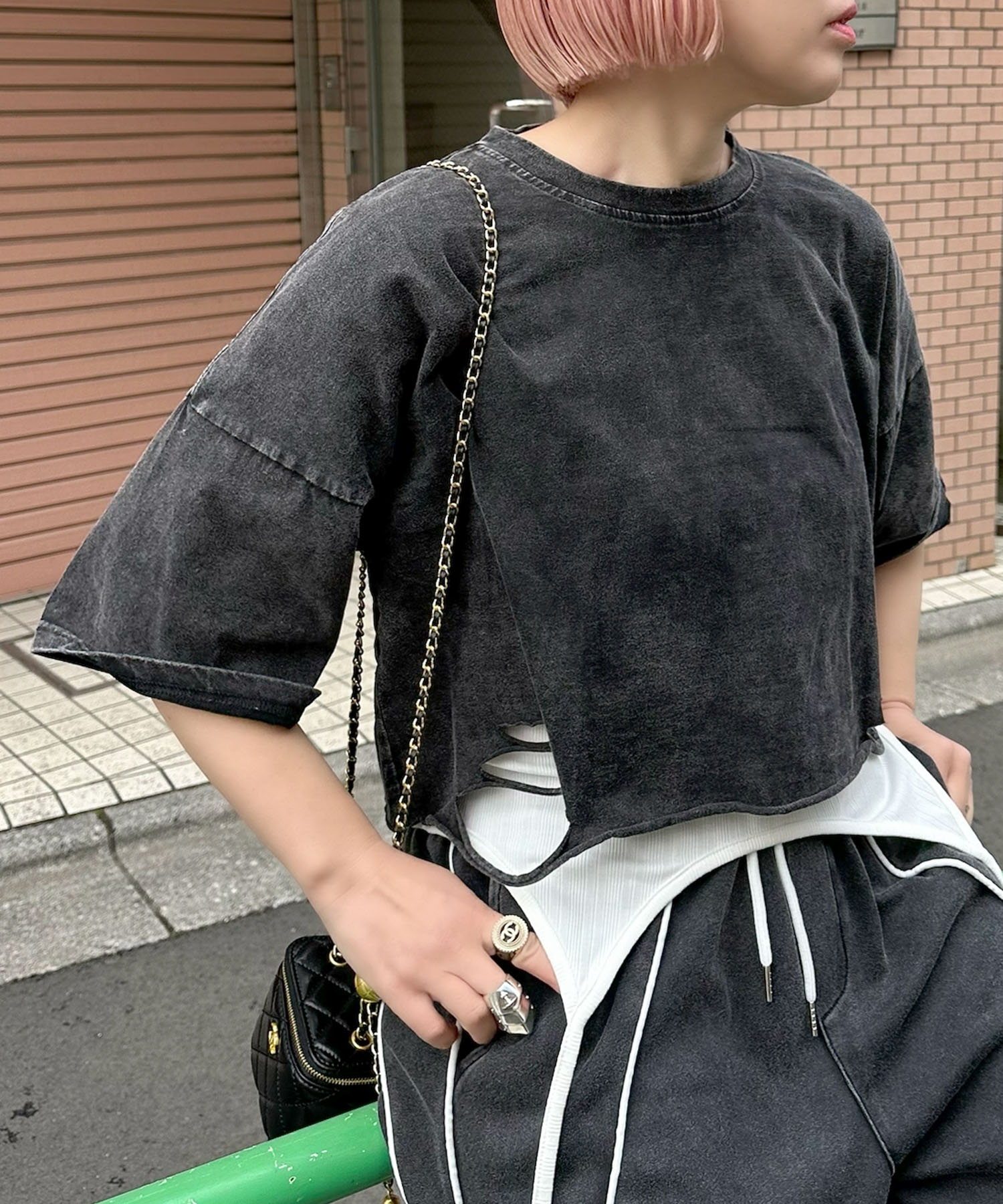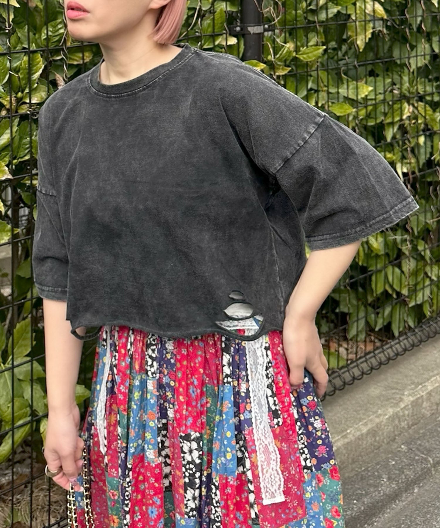 ウォッシュ加工のTシャツに施されたダメージとキラキラが可愛すぎる!