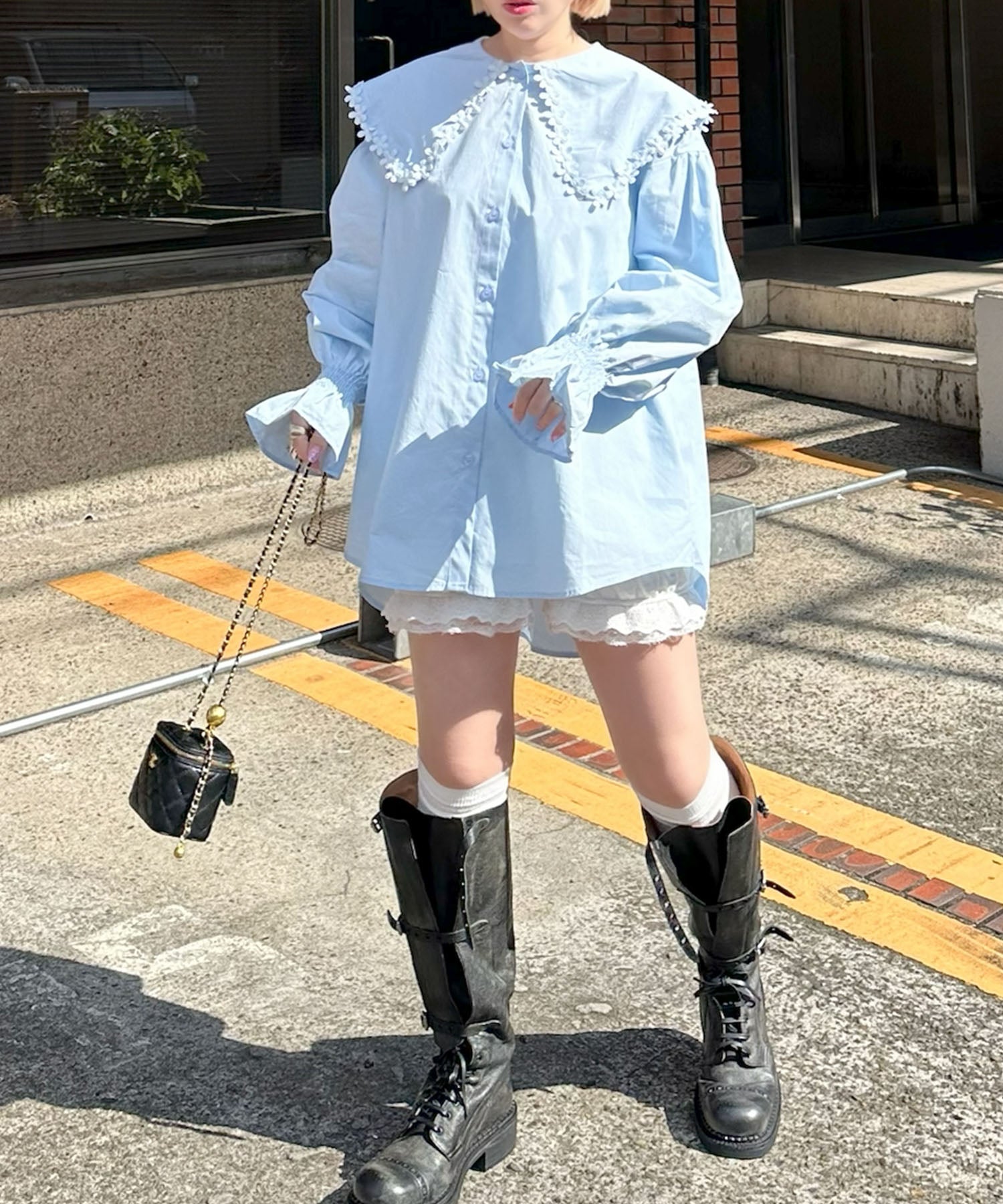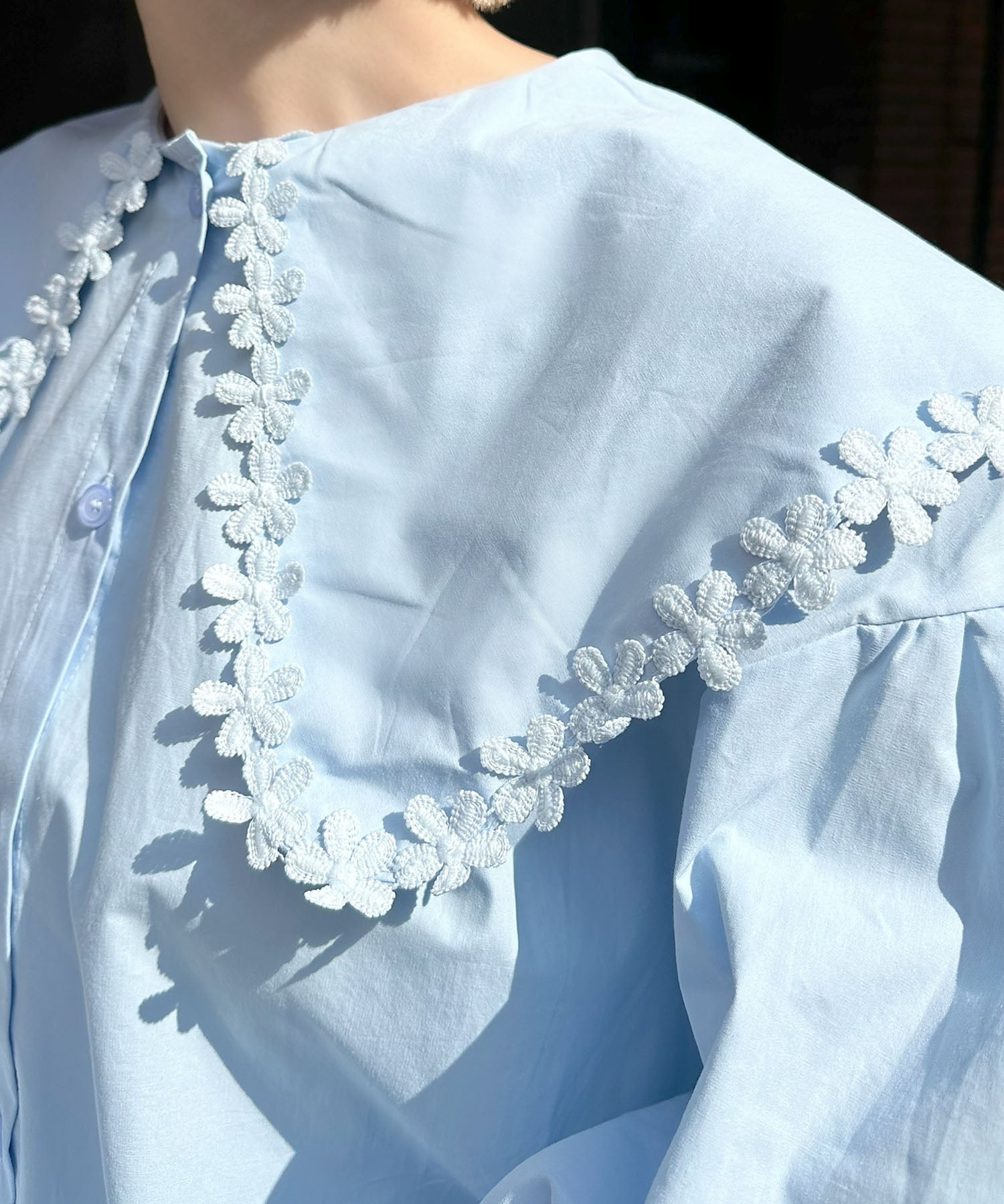 お花モチーフBig衿ブラウス【サックスブルー】