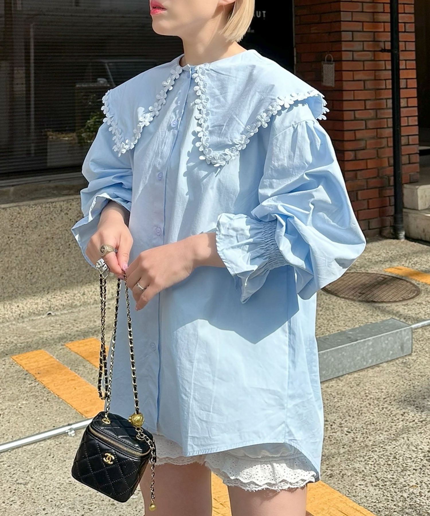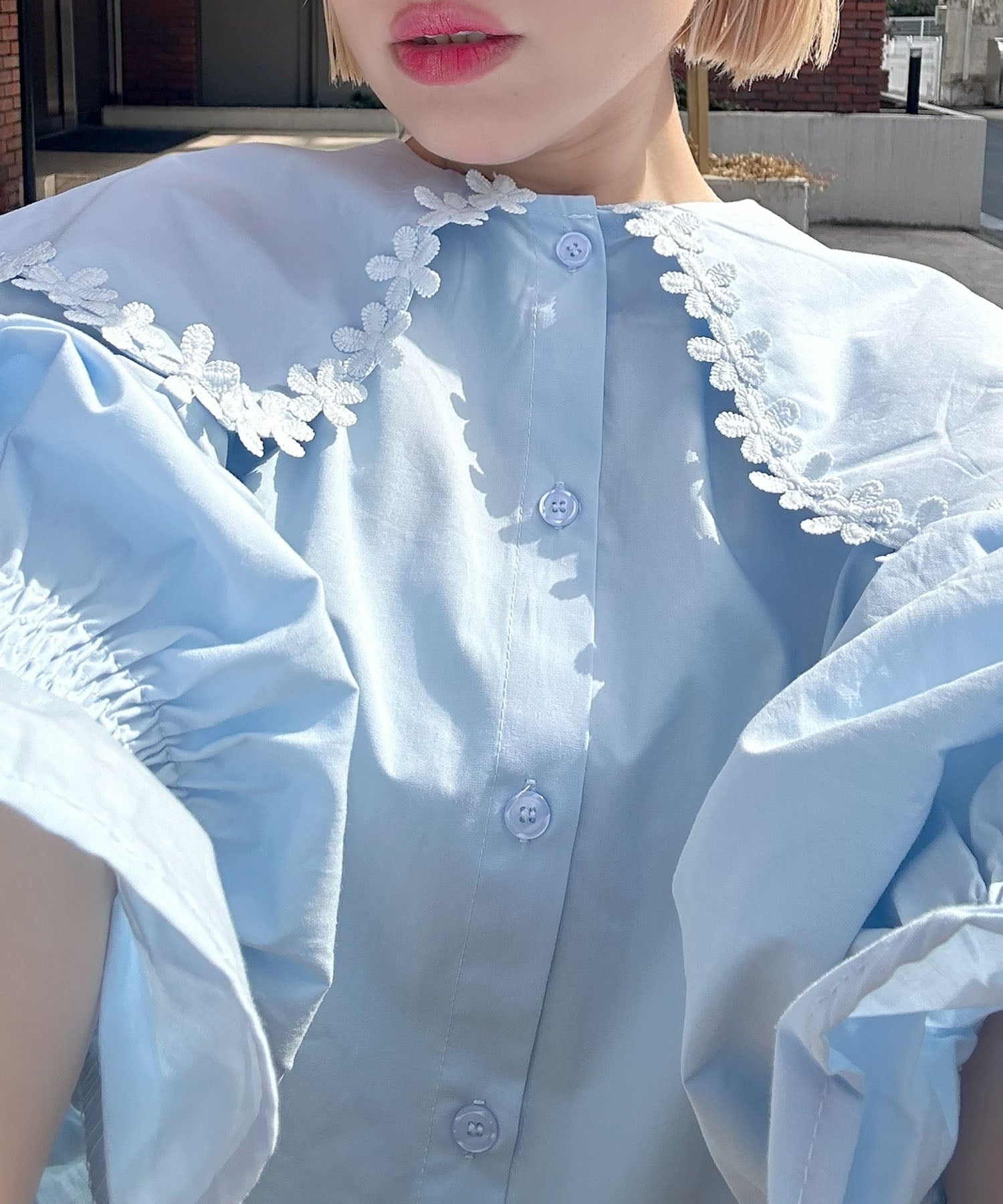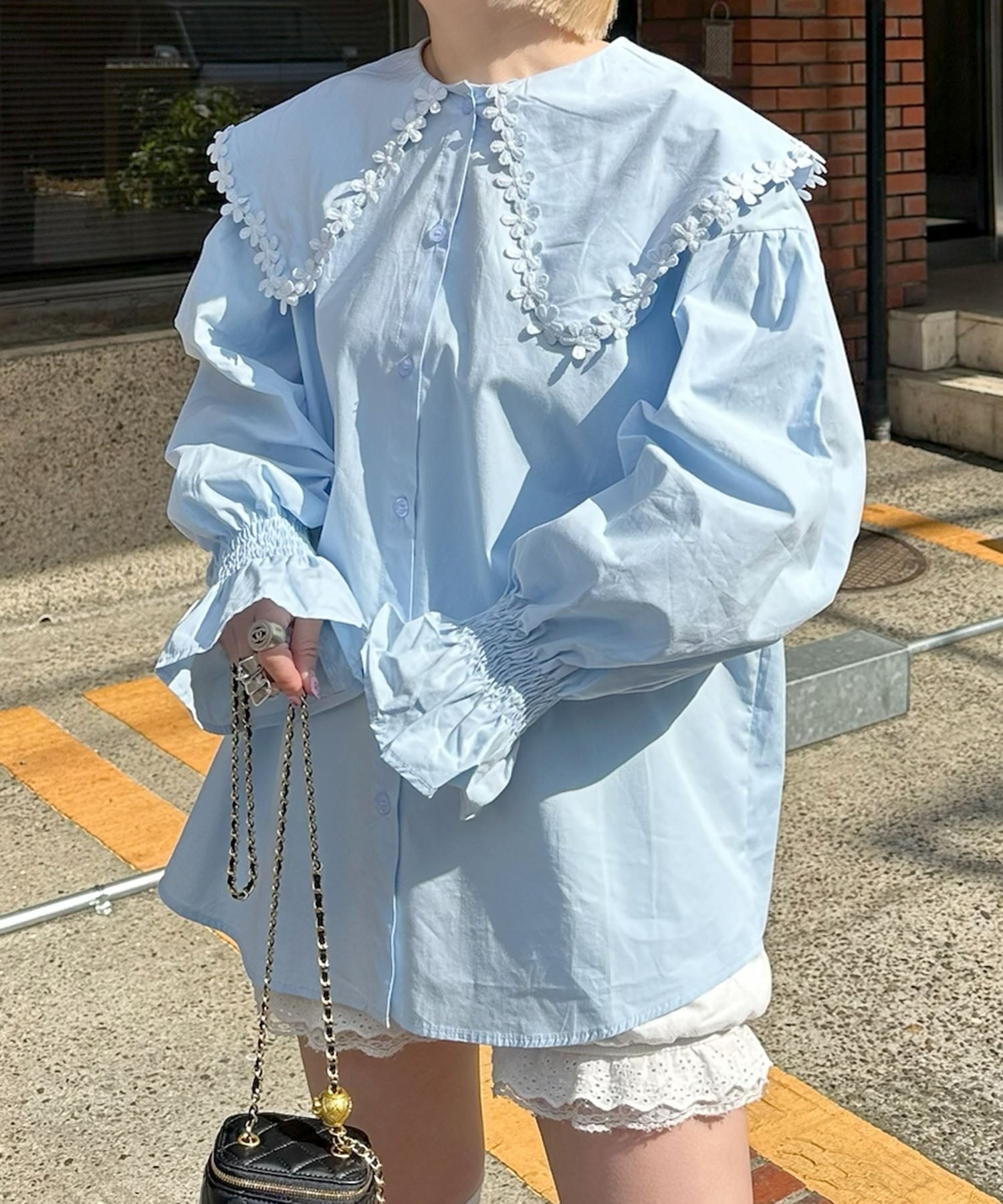 ・大きな衿で小顔効果抜群♩お花モチーフが目を惹く“ひとクセ”ブラウス