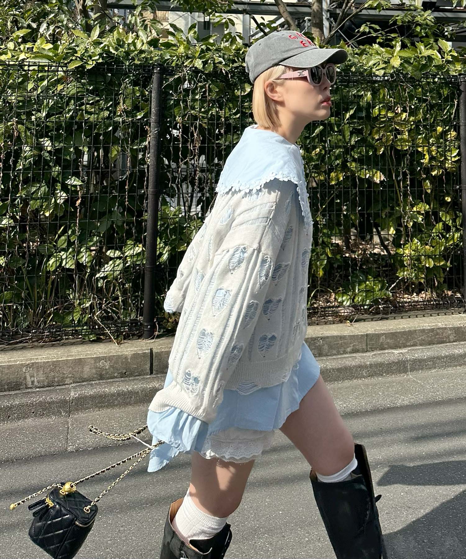 ・足元はブーツで抜け感をプラスして