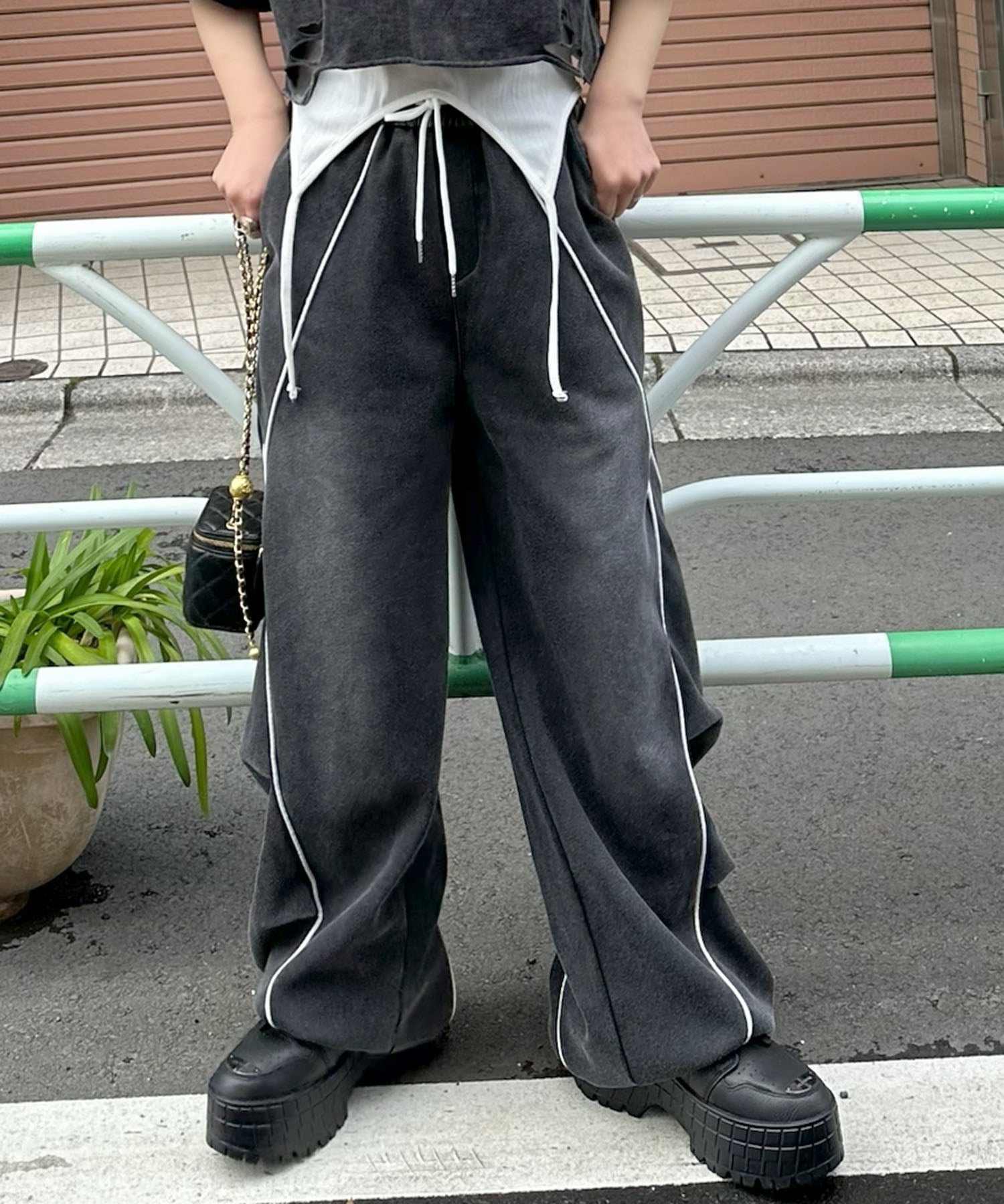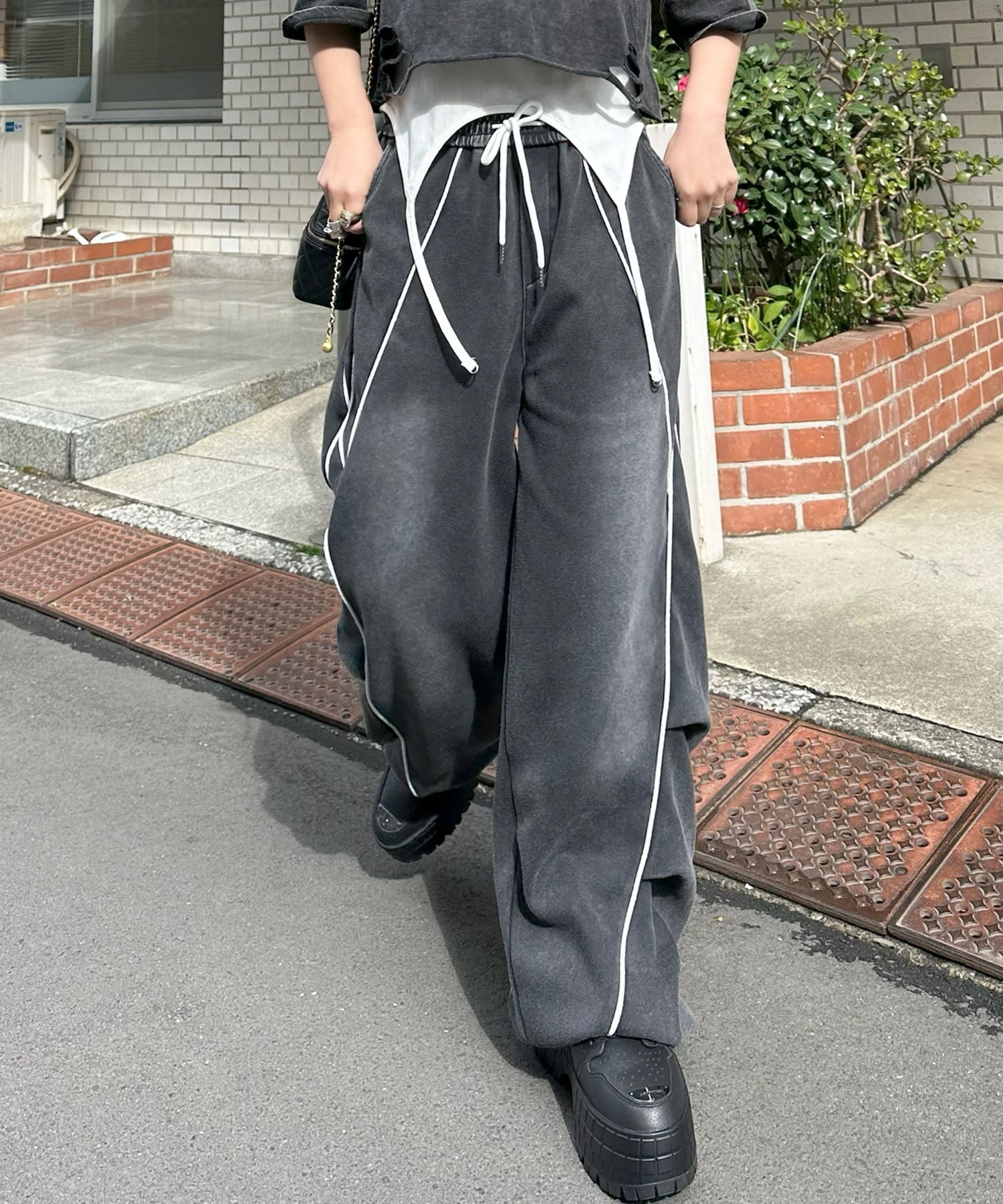 パイピングウォッシュ加工イージーパンツ【ブラック】